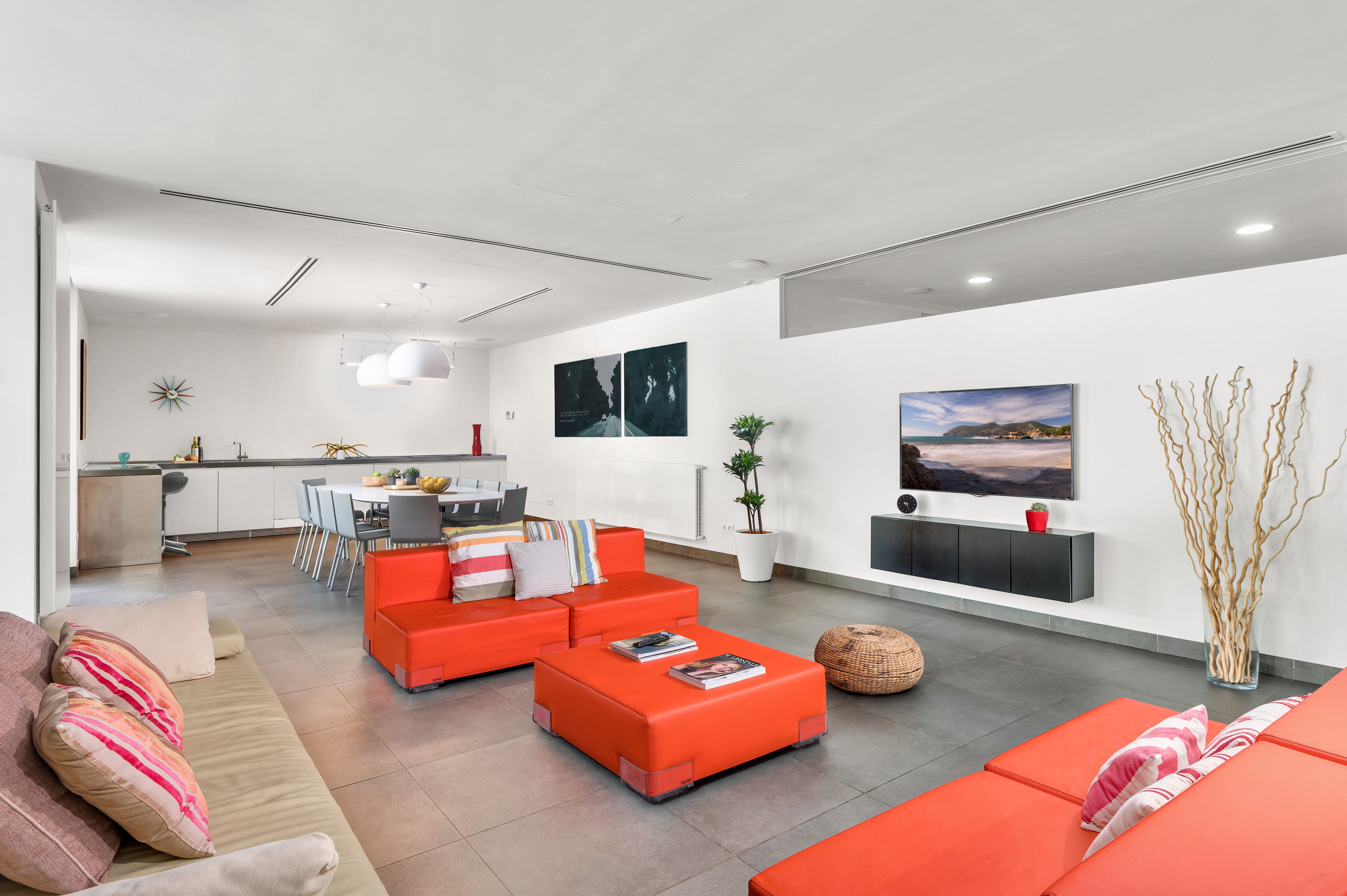 Lounge with sofas and a large TV