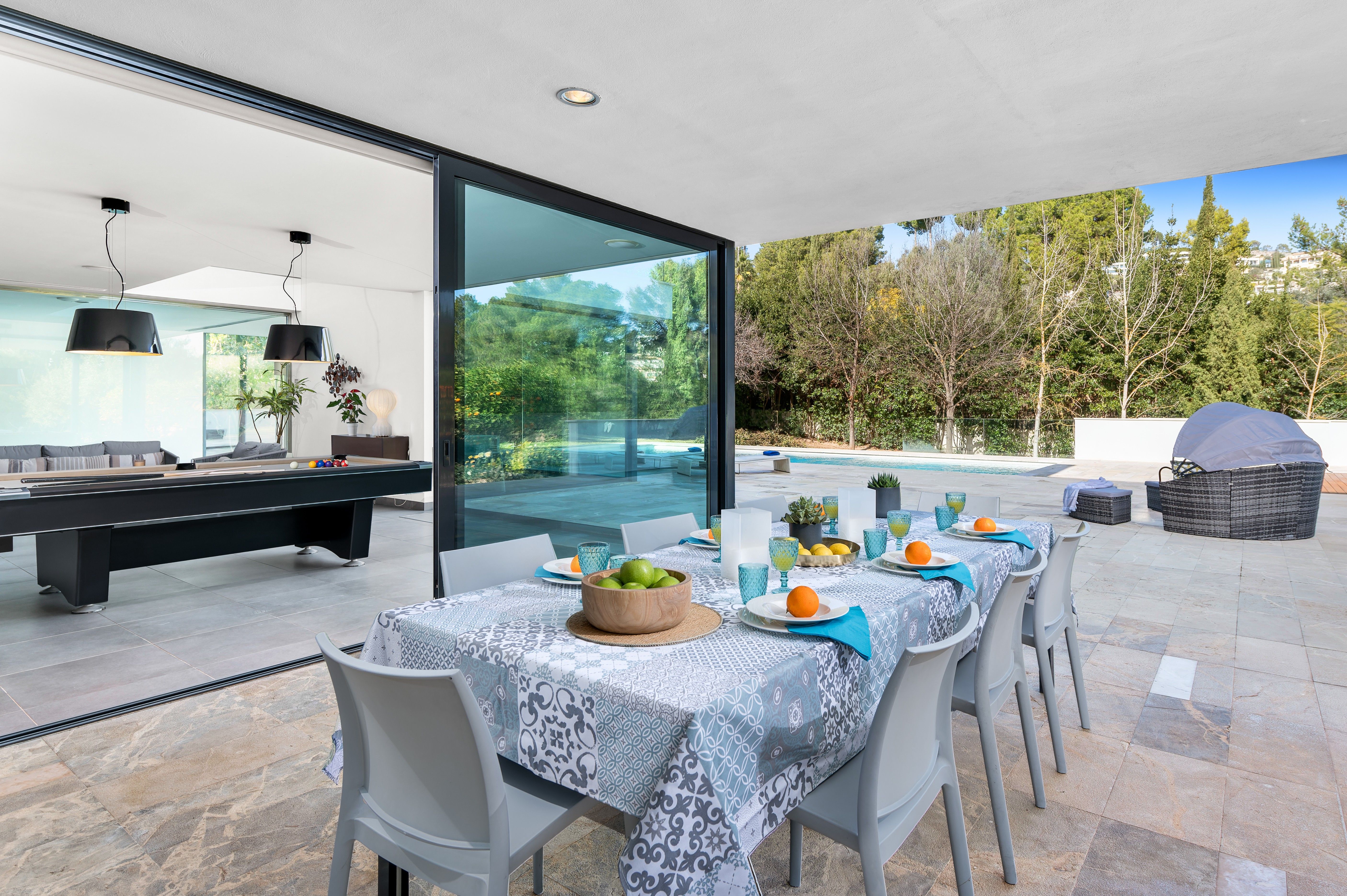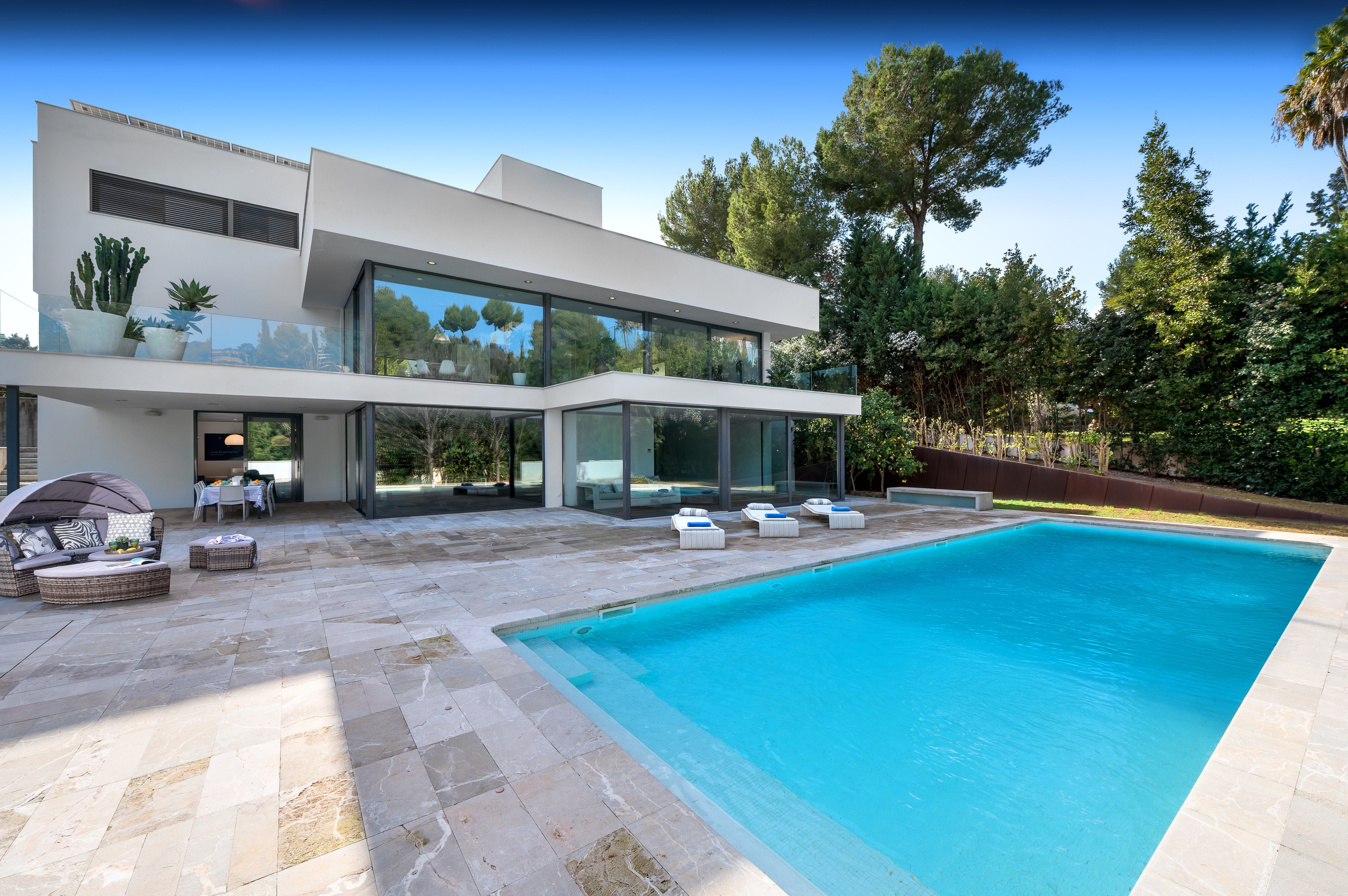 Welcome to this stunning 900 sqm holiday villa located in the exclusive neighborhood of Son Vida, one of the most prestigious residential areas in the proximity to Palma, the capital of Mallorca. Available for monthly or weekly rental during July, August, and September (subject to availability), this exceptional property offers the perfect setting for a relaxing summer escape surrounded by nature, comfort, and style. Set on a beautifully landscaped 2,600 sqm plot, the villa has been designed for both relaxation and entertainment, featuring generous indoor and outdoor living spaces ideal for families or groups.