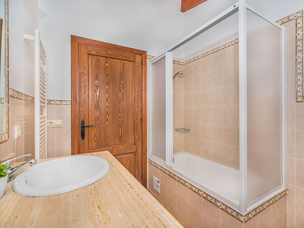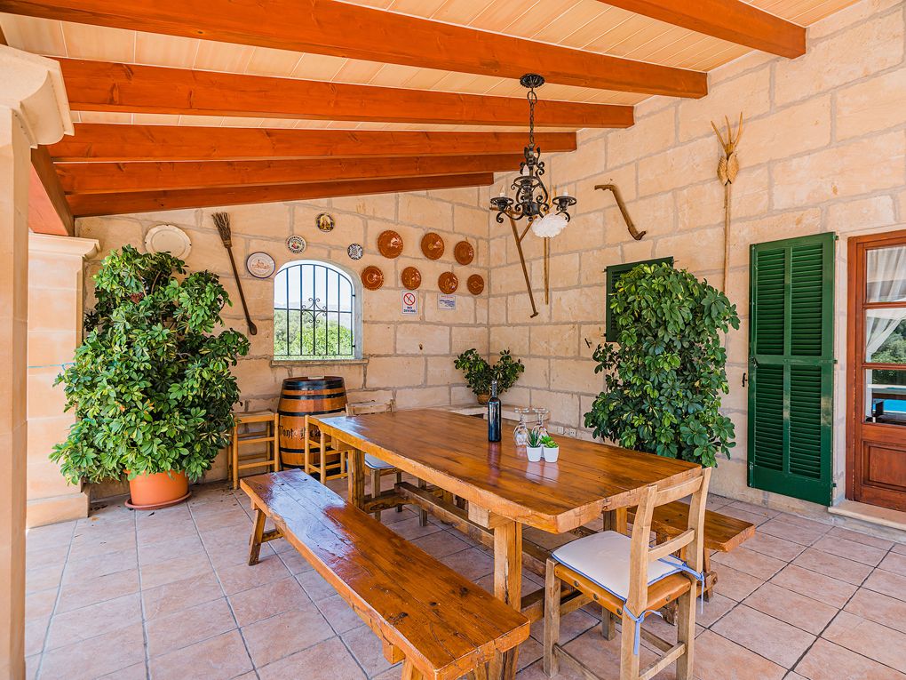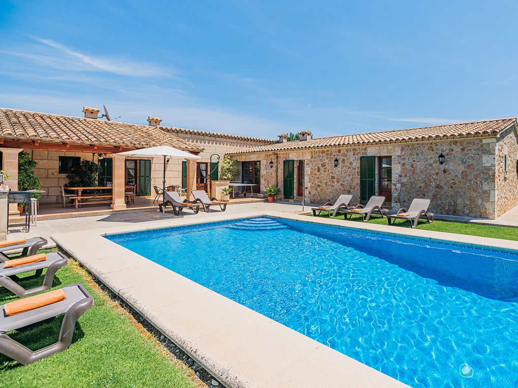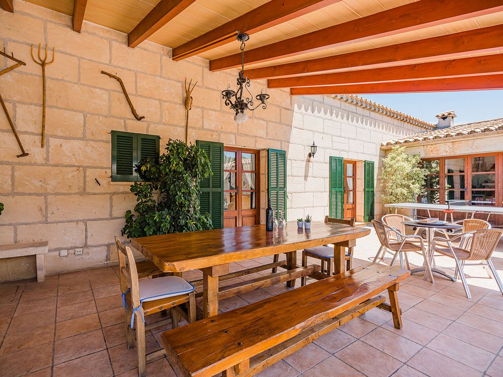 Guests are welcomed by a generous parking area leading to the villa, whose natural stone façades and refined Mallorcan décor confer a sense of elegance and tradition. Several terraces embrace the pool, creating intimate spots for sunbathing, relaxing amid nature or enjoying unforgettable outdoor moments.