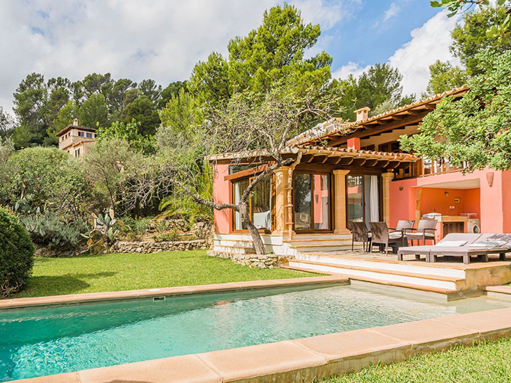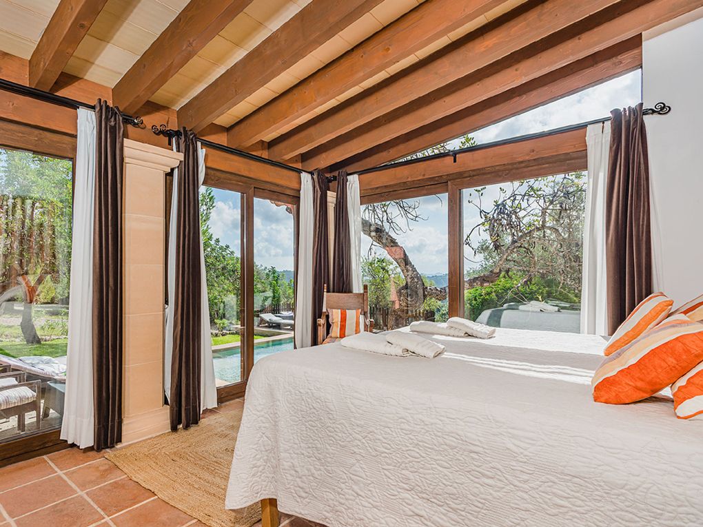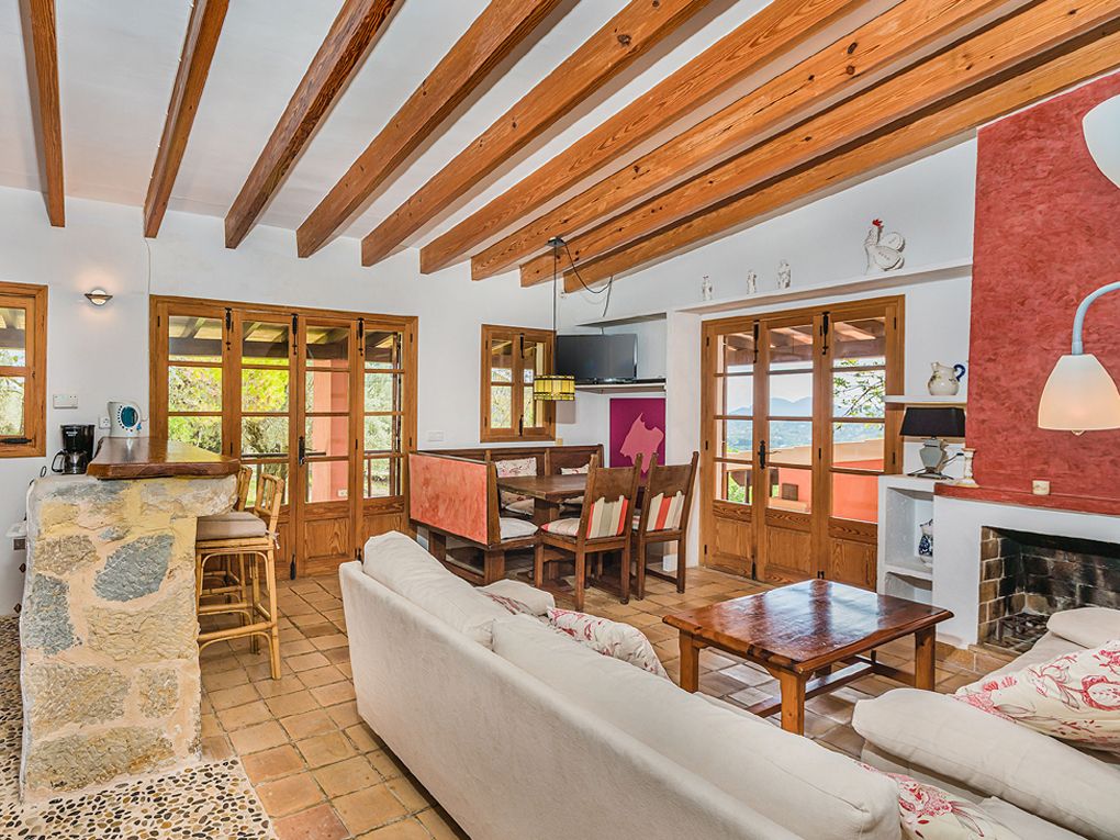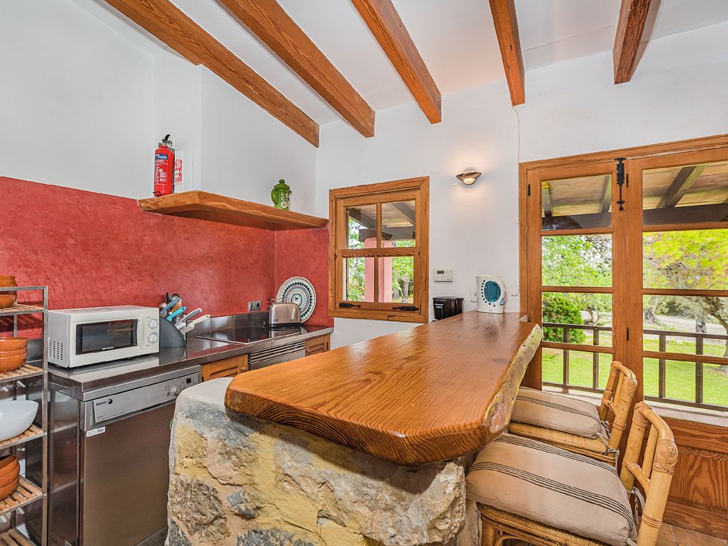 The estate comprises a main house and a delightful independent annex. A spacious covered terrace wraps around the main residence, providing privileged views of the swimming pool, landscaped gardens, and the iconic Puig de Maria. This is the perfect spot to savour an al fresco breakfast or memorable outdoor dinners.
