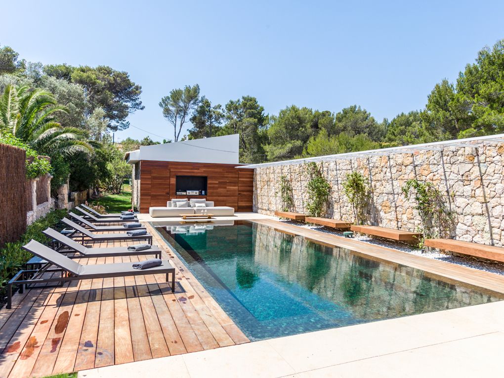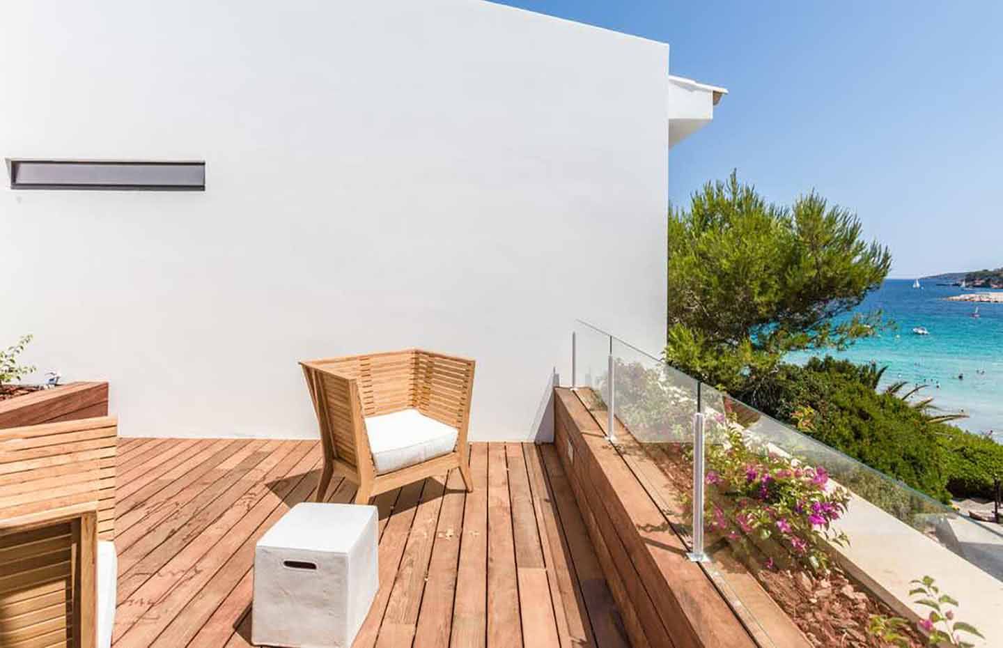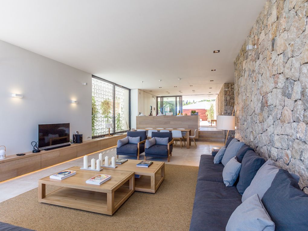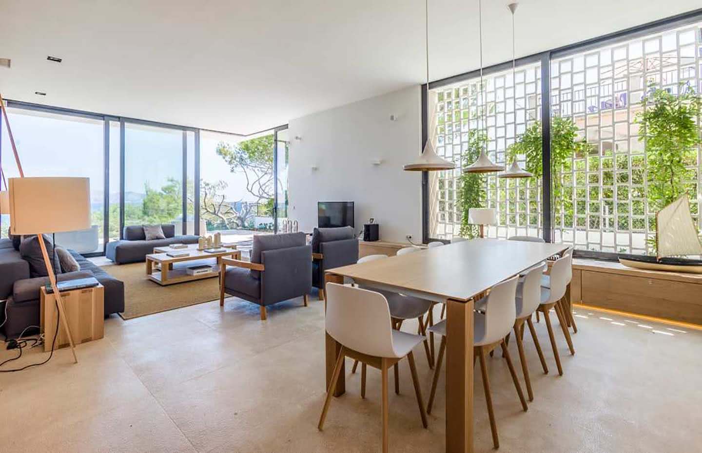 This contemporary villa boasts a privileged frontline position, just a short walk from the beautiful beaches of San Juan and Sant Pere.