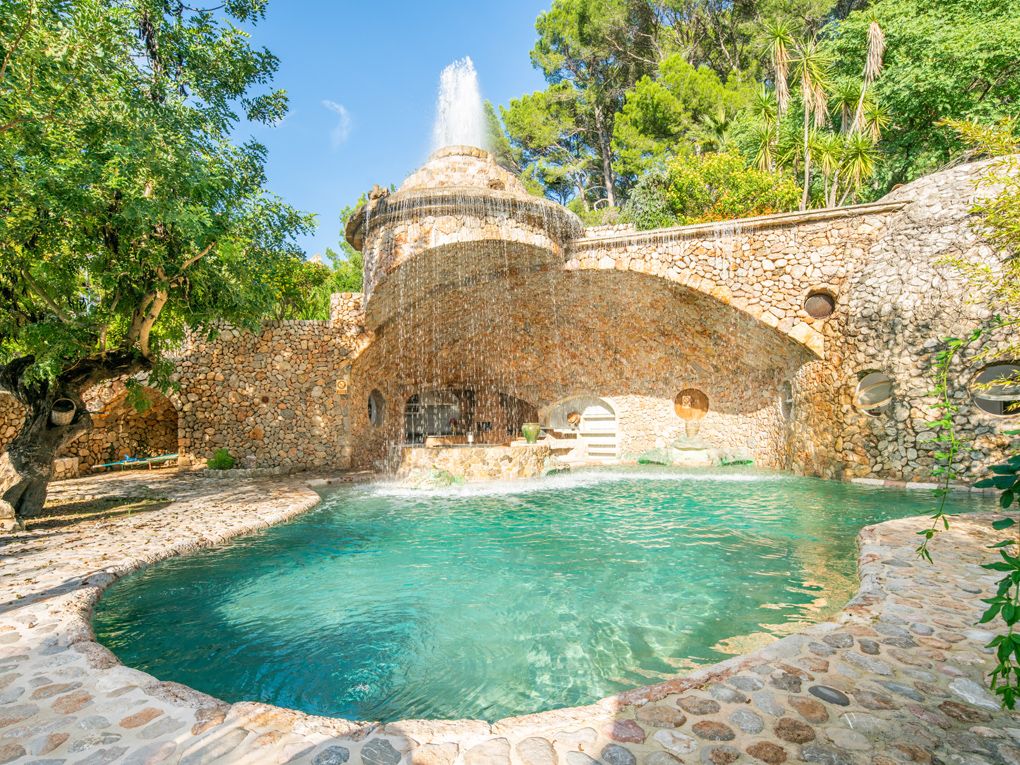This is a splendid property with a grand character, featuring a variety of terraces, fabulous stonework, ponds and springs, tucked away in absolute privacy and tranquility in Alcudia.
