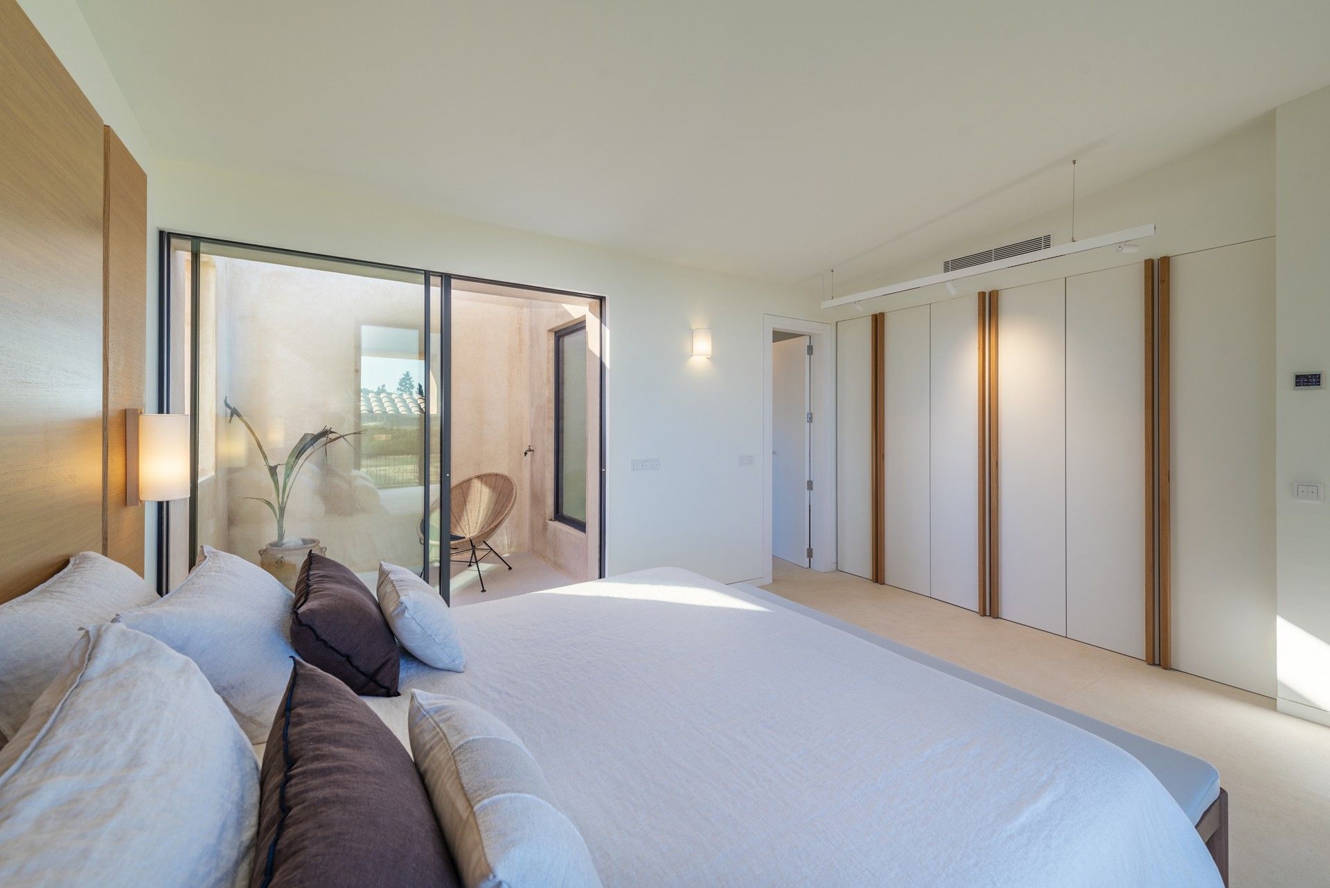 This is a wonderful and very cool, brand new country house in Muro that is an innovative fusion of modern and traditional Mallorcan architecture, the result is a highly comfortable, energy efficient home that is very easy on the eye. Characterized by dry stone walls, exposed wooden elements, tall ceilings, lots of glass, light and outdoor spaces, and featuring state-of-the-art technology, underfloor heating and integrated air conditioning, operated by an air-to-water heat pump plus solar collectors. Luxury elements also include a 26 m² indoor pool and spa in the basement for year round fitness and fun.
