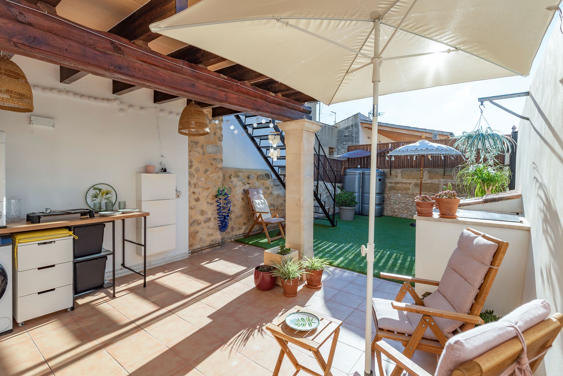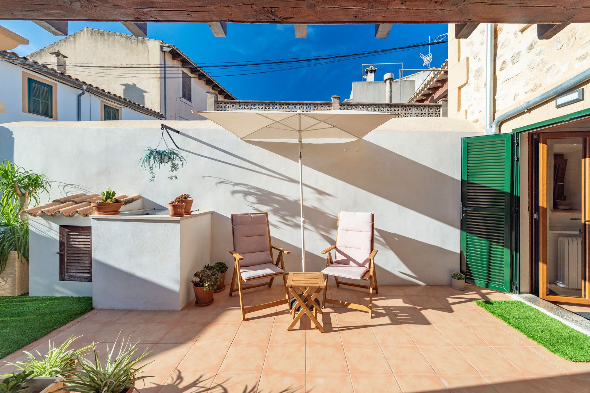 In the heart of Campanet, this corner townhouse blends traditional Mallorcan character with modern comfort. Built in 1900 and fully renovated just ten years ago, it retains its historic soul while offering excellent functionality. The façade was renewed only last year with a special permit, underscoring its rare status as a protected and catalogued property.