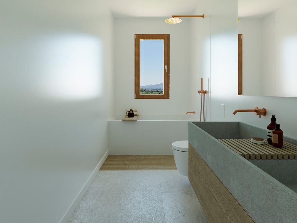 The house will be equipped with underfloor heating, air conditioning ducts, heat pump and cold (aerothermal).