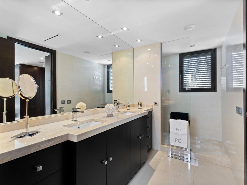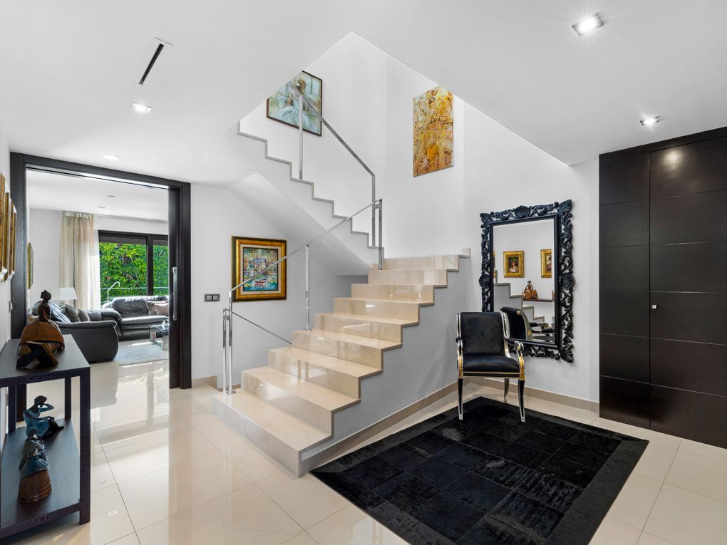 This stylish and sunny property with a completely refurbished swimming pool is located in the privileged and quiet area of Ciudad Jardín, only a few metres away from the beach and its lively promenade. The modern villa has a constructed area of approx. 424 sqm and approx. 271 sqm living area divided on 3 floors. On the ground floor, there is a spacious entrance hall, a bright and elegant living-dining room, a modern fully equipped kitchen, a practical laundry area, a double bedroom with built-in wardrobes and a complete bathroom. The exit to the beautiful outdoor area is through the kitchen and the living-dining room. On the upper floor, there are 3 double bedrooms with built-in wardrobes, an elegant and spacious dressing room, two complete bathrooms (one of them en suite) and two large sunny terraces (one of them covered). The basement has ample storage areas and storerooms, a charming wine cellar, a complete bathroom, a shower room next to a modern sauna, and a large garage with a capacity for 3/4 cars. This magnificent interior is completed with a dreamlike exterior, where a large roof terrace and well-kept terraces with access to a swimming pool and garden areas allow you to enjoy the good weather with all the comforts. This villa, built with high quality materials, has air conditioning h/c in all rooms, double glazed windows, electric shutters, marble floors, designer ceramics and tiles, cosy natural stone walls, video intercom, alarm, automatic entrance door to the garage, among other extras. The property is located only a few minutes' drive from the centre of Palma, the airport and shopping, leisure and restaurant areas.