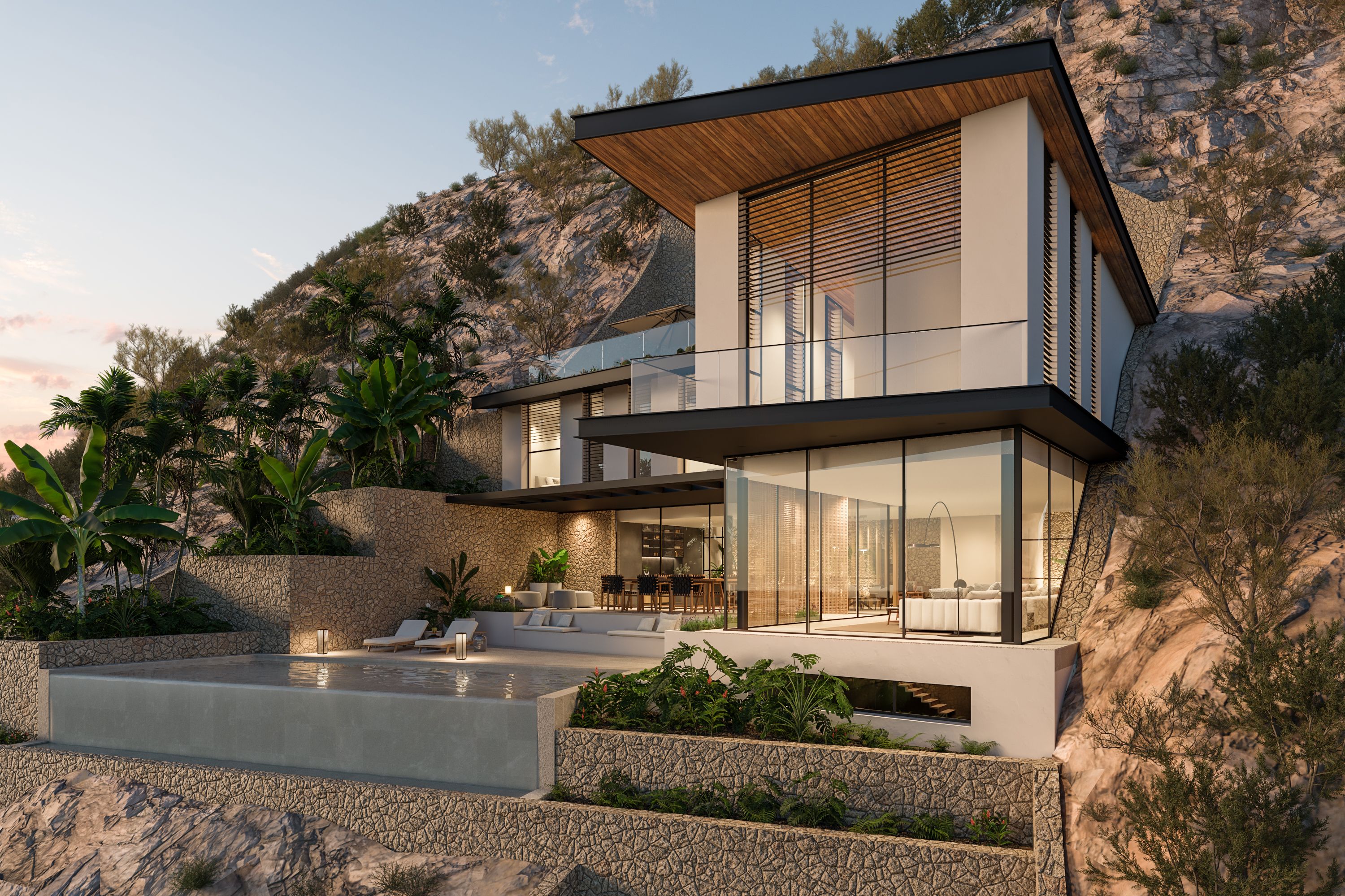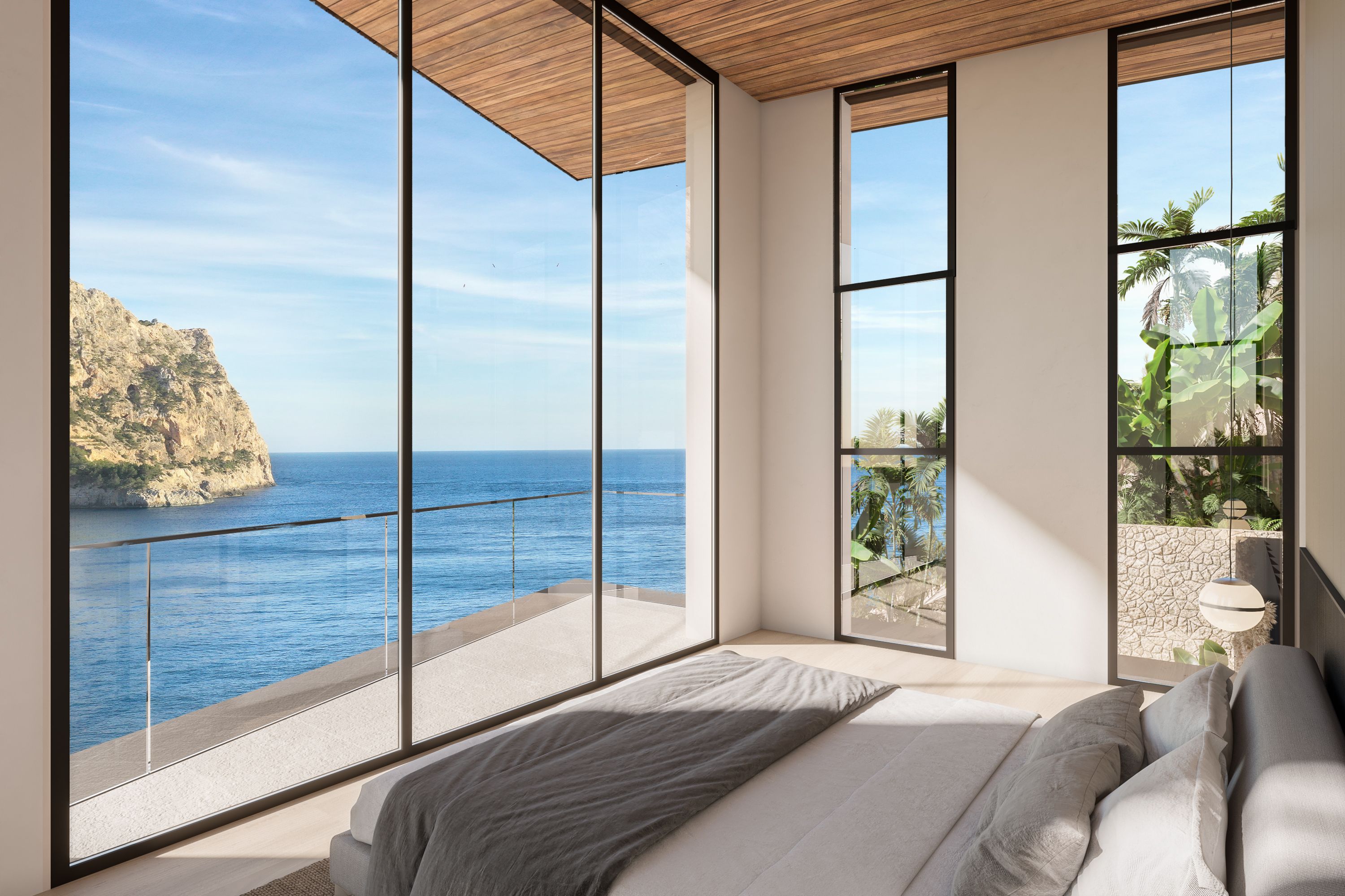 This exceptional plot is located in one of the most sought-after areas of Port Andratx, the renowned fishing village and yacht harbour in the exclusive southwest of Mallorca. Nestled within the privileged surroundings of Cala Llamp, the property enjoys impressive sea views and a perfect southwest orientation, guaranteeing sunshine throughout the day. A planning application submitted in 2021 is already in place for the construction of a luxurious single-family villa. The project, expected to be approved shortly, stands out for its generous proportions, contemporary architecture and a well-conceived layout designed to meet the highest standards. The planned villa offers a total built area of approximately 1,076 m², including around 858 m² of living and usable space, complemented by expansive terrace areas of approximately 238 m², allowing for a seamless connection between indoor and outdoor living. The layout comprises 5 bedrooms, 6 bathrooms and an additional guest WC, making it ideal for families and discerning guests alike. A particular highlight is the impressive infinity pool of approximately 42 m², offering spectacular views over the Mediterranean Sea and perfectly capturing the essence of the Mediterranean lifestyle. A garage with space for up to 4 vehicles ensures maximum comfort. Further exclusive features such as a lift, fitness room, fireplace and a sheltered patio complete this outstanding project and underline its unmistakable luxury character. The property’s walking-distance proximity to the popular Gran Folies Beach Club, combined with the excellent infrastructure of Port Andratx, makes this plot a rare opportunity for buyers seeking a prime location with a clearly defined and approved construction concept. An ideal investment for owner-occupiers or investors wishing to realise an architecturally sophisticated new-build project in one of Mallorca’s most desirable locations.