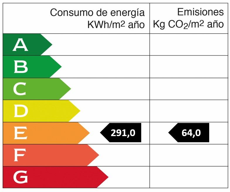 Year of construction: 1980 • Energy consumption value: 291.0 kWh/(m2*a) • CO2 emission: 64.0 kg/m2 • CO2 Emission Rating: E • Heating type: Gas • Energy efficiency rating: E