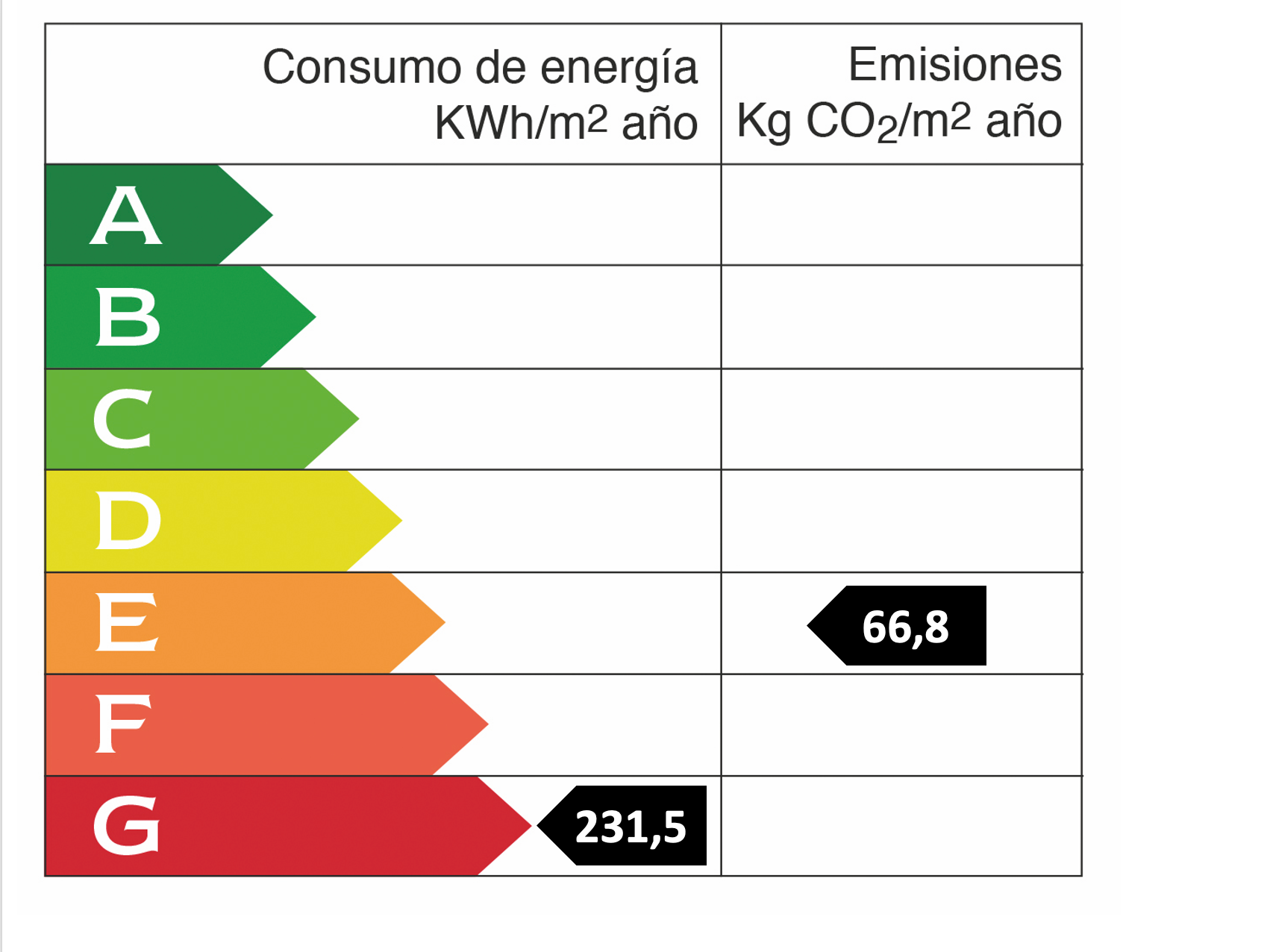 • Energy consumption value: 231.5 kWh/(m2*a) • CO2 emission: 66.8 kg/m2 • CO2 Emission Rating: E • Heating type: Electric • Energy efficiency rating: G