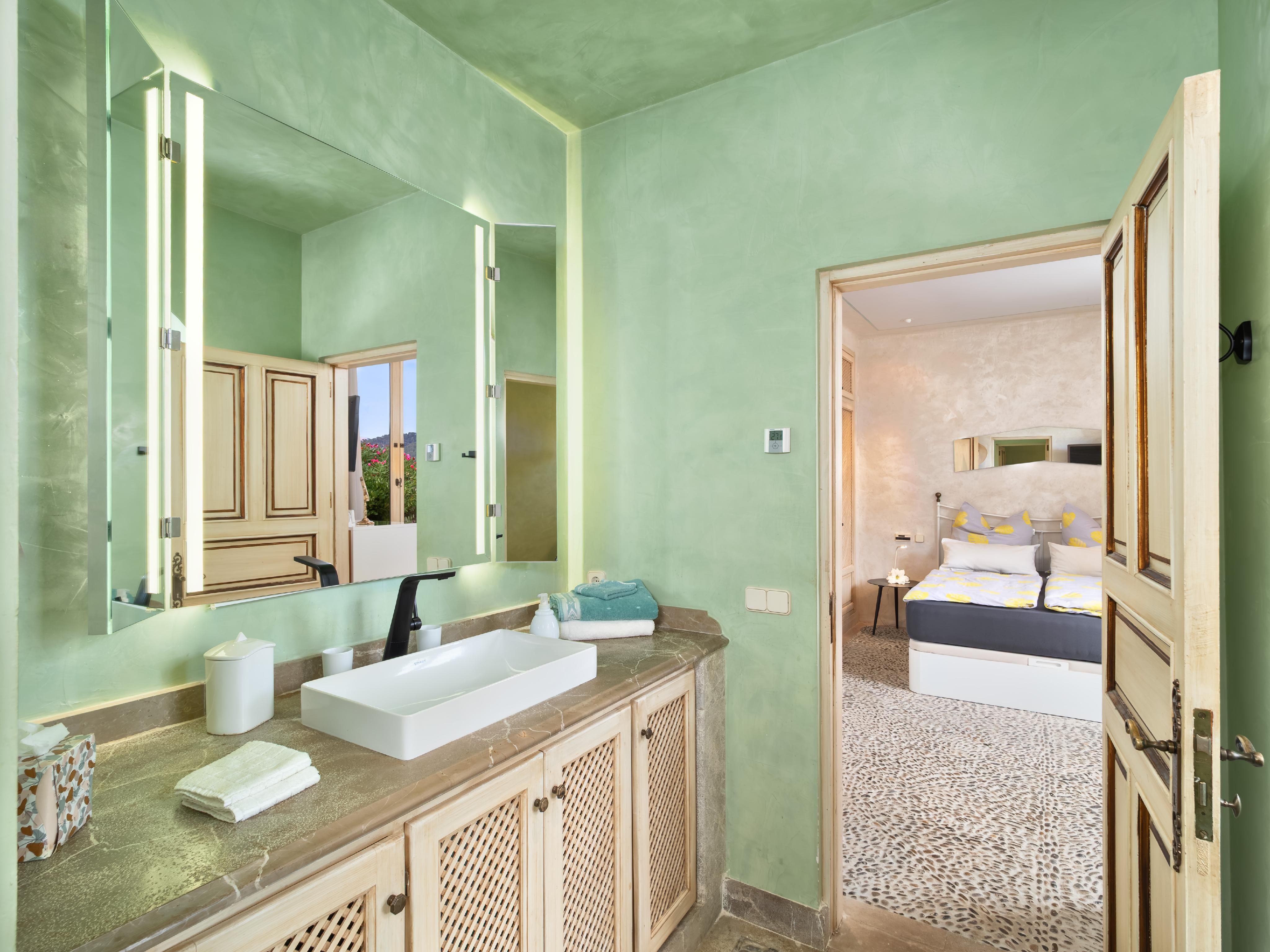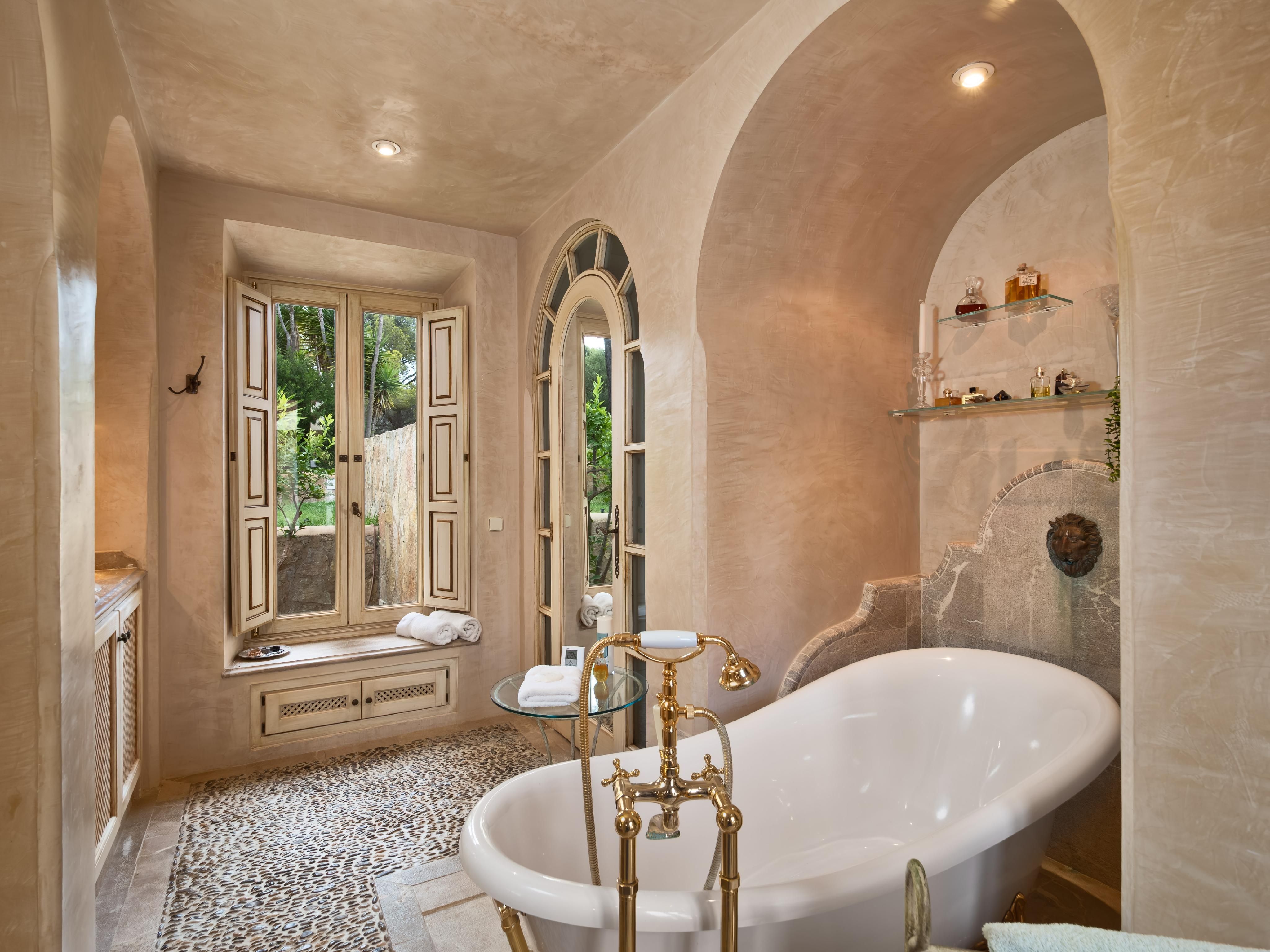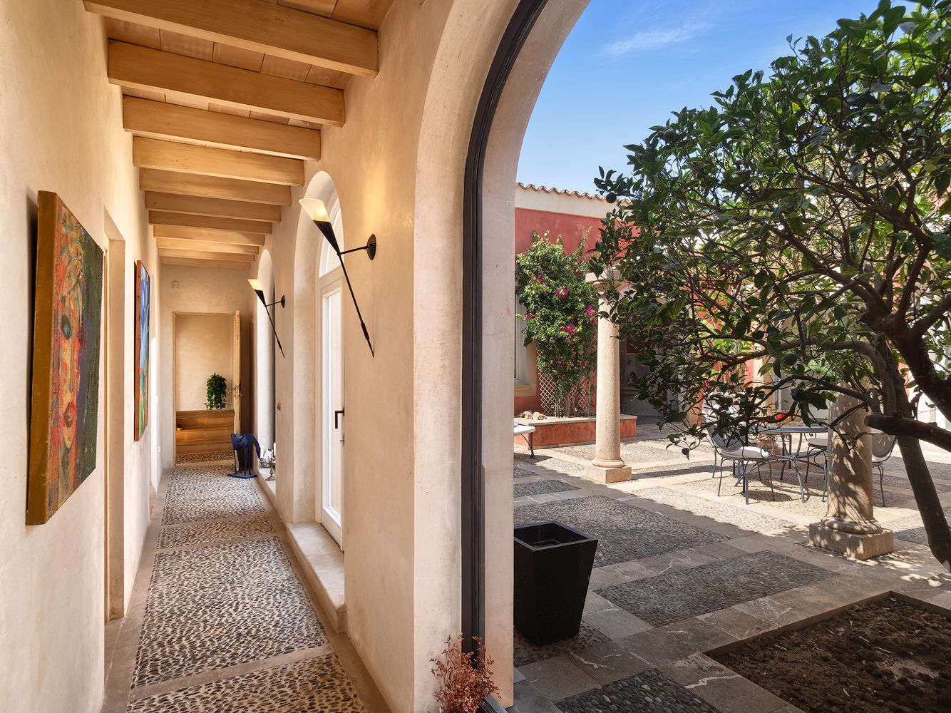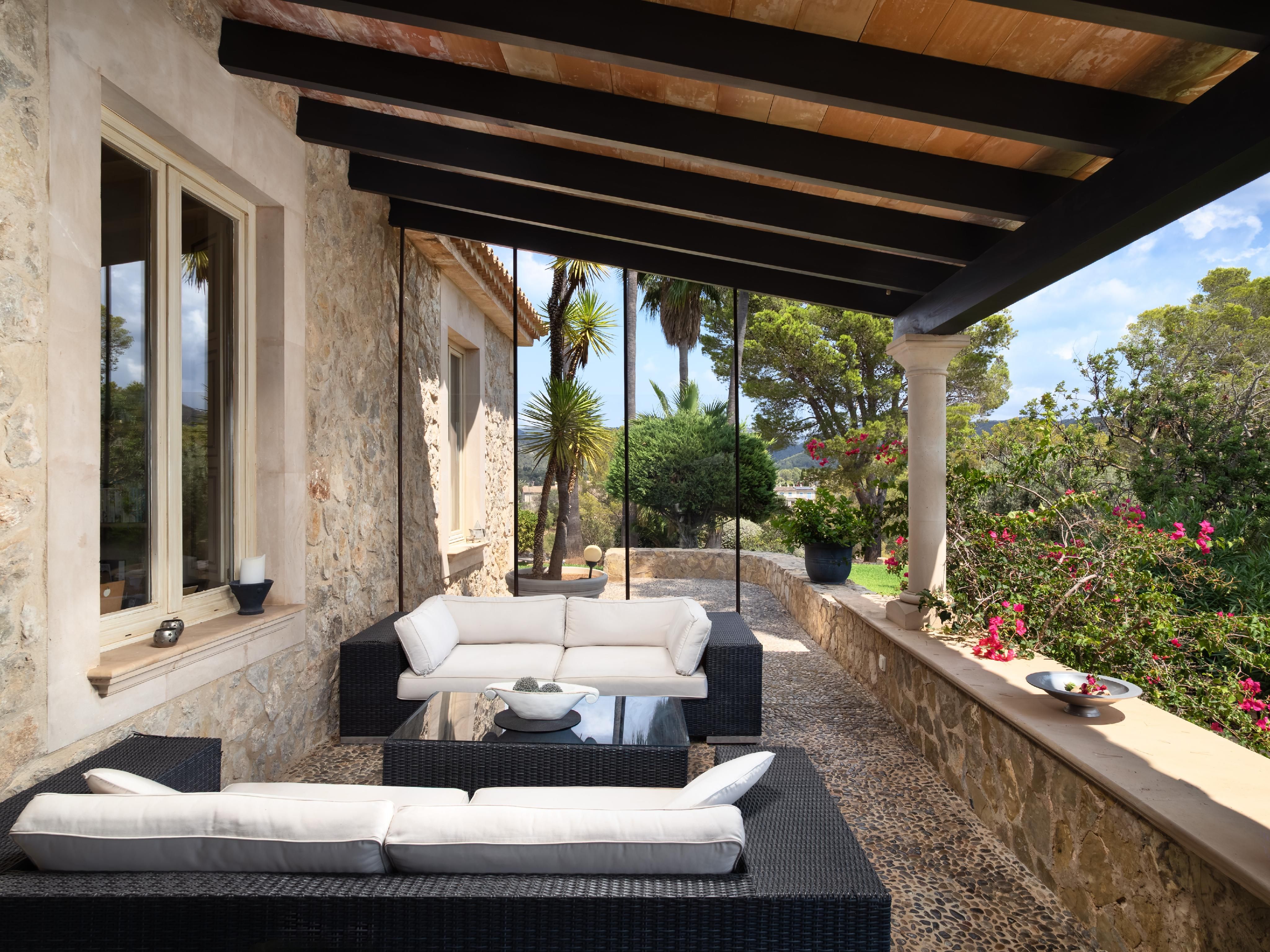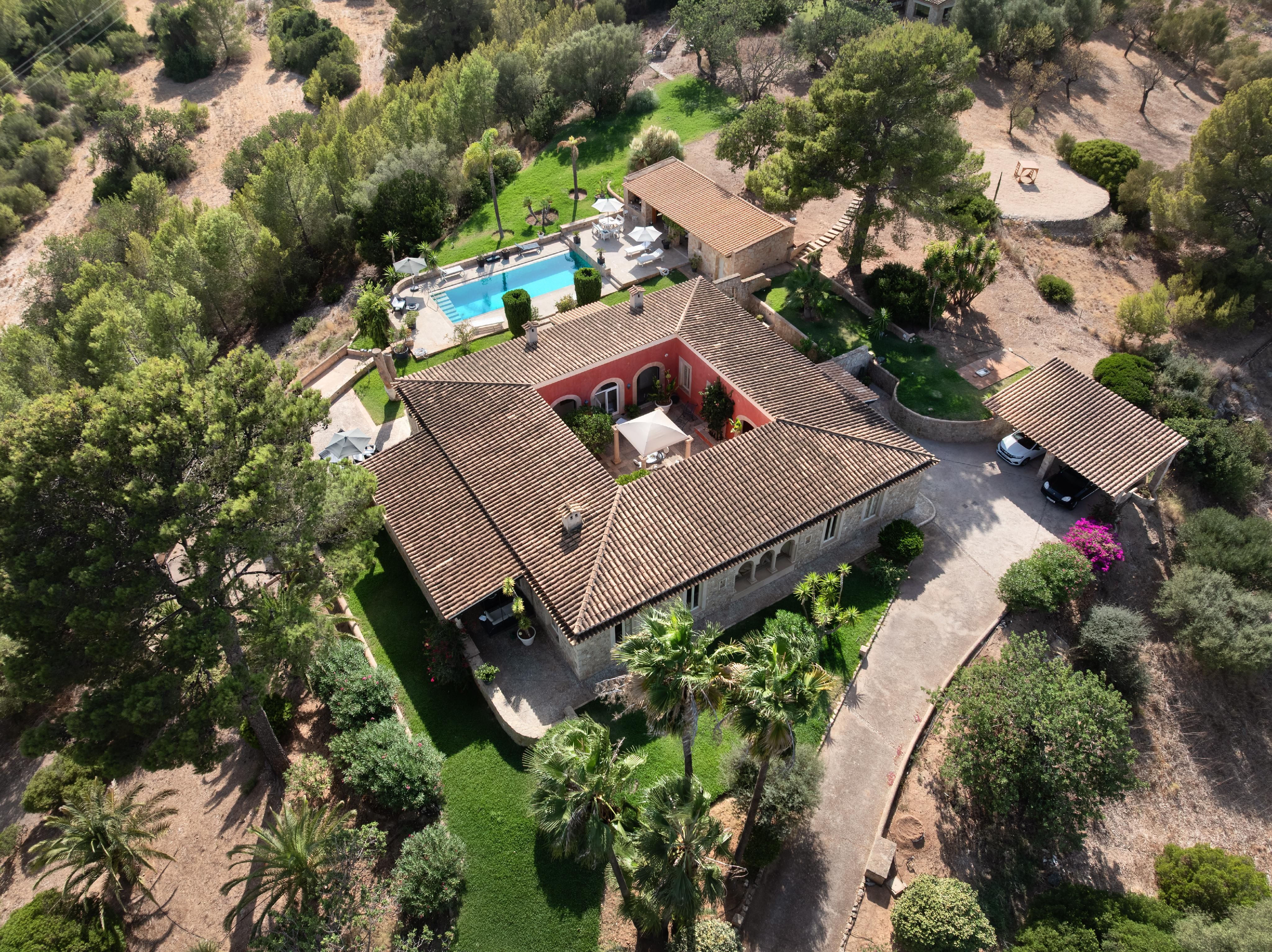 This charming finca is a haven for lovers of Mediterranean living – nestled in the gentle hills surrounding Es Capdellà, yet just a short distance from Calvià. Set on a plot of approximately 16,000 m², this characterful home unfolds over around 360 m² of built living space. It offers three bedroom suites, each with its own bathroom, as well as a separate home office that can easily be converted into a fourth bedroom – providing space for both retreat and togetherness. The traditional Cortijo-style architecture with its central courtyard evokes the feeling of a private, protected retreat. Hand-laid river stone floors, an antique wooden gate, and lovingly crafted details such as the groin vault ceiling in the dining room reflect the artisanal craftsmanship that defines this property. Those who appreciate the charm of old-world construction while valuing modern comfort will find great potential here: with a sensitive update, the finca can be effortlessly brought in line with contemporary standards of technology and design. The outdoor area, featuring a pool, spacious terraces, and Mediterranean landscaping, invites year-round enjoyment. Thanks to air conditioning in the bedrooms and underfloor heating throughout, the property is also ideal as a year-round residence. Families benefit from the proximity to international schools, while Puerto Portals and the beaches of the southwest coast are reachable in about 15 minutes. Hidden yet not isolated, this finca offers complete privacy combined with excellent infrastructure links. A special place for those seeking peace, nature, and authenticity – without sacrificing comfort or proximity to the coast.