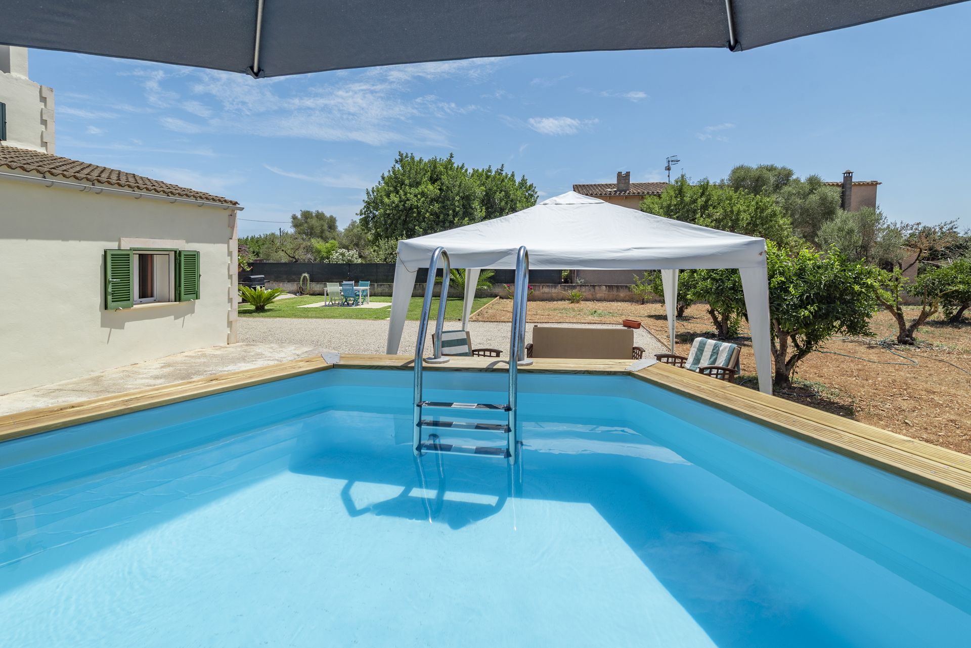 Step outside to enjoy your very own orange grove, offering a taste of authentic Mallorcan country living, and cool off during the summer months in the stand-up pool. The outdoor space is perfect for relaxing, dining al fresco, or soaking in the quiet beauty of the surroundings.