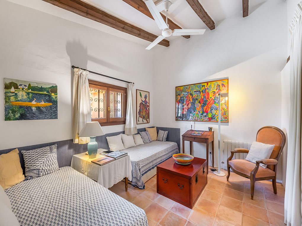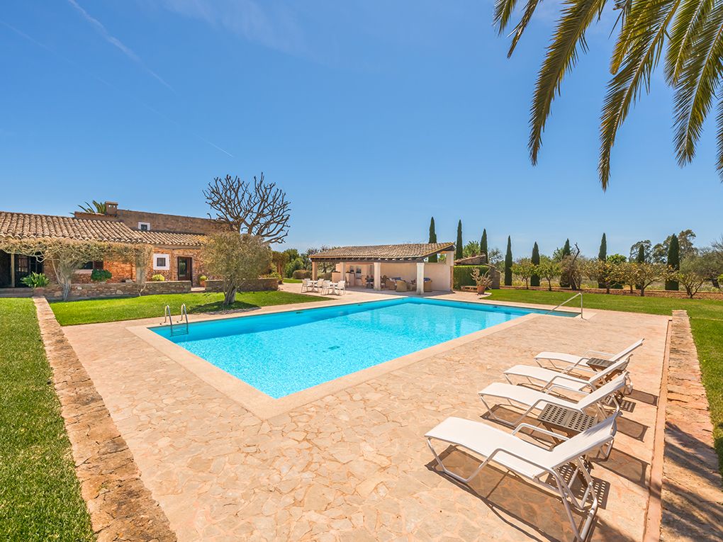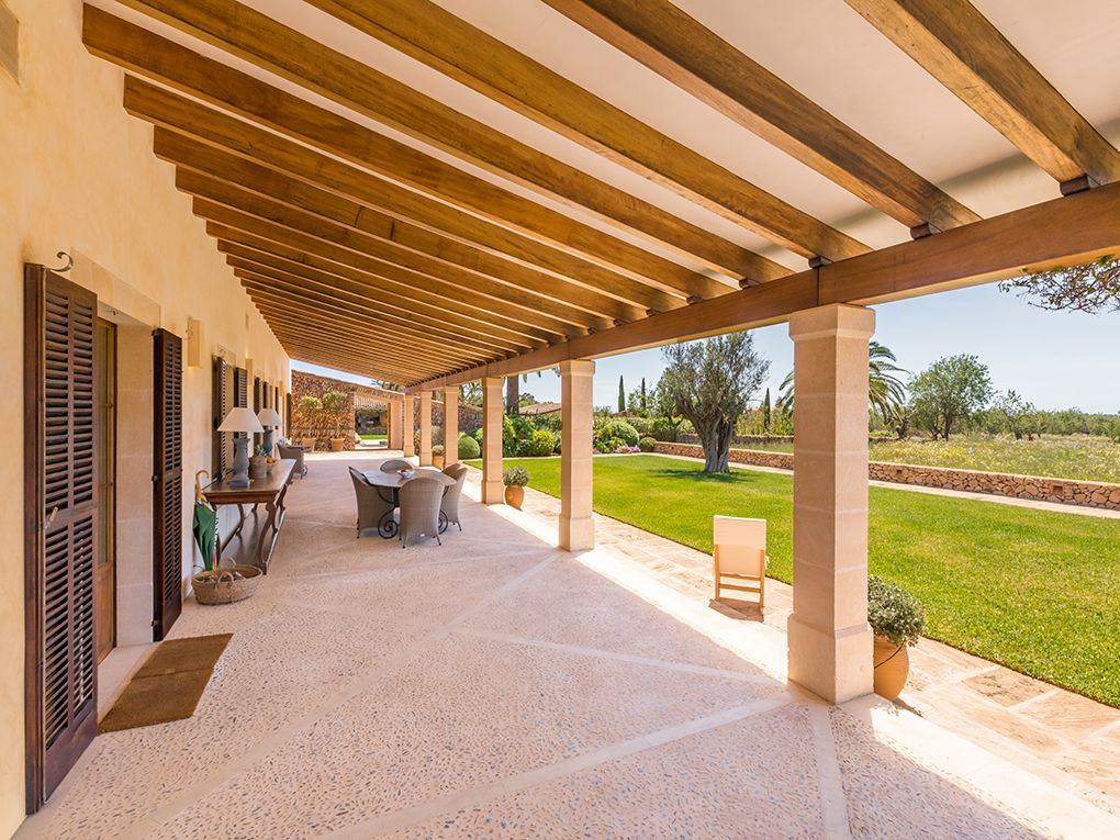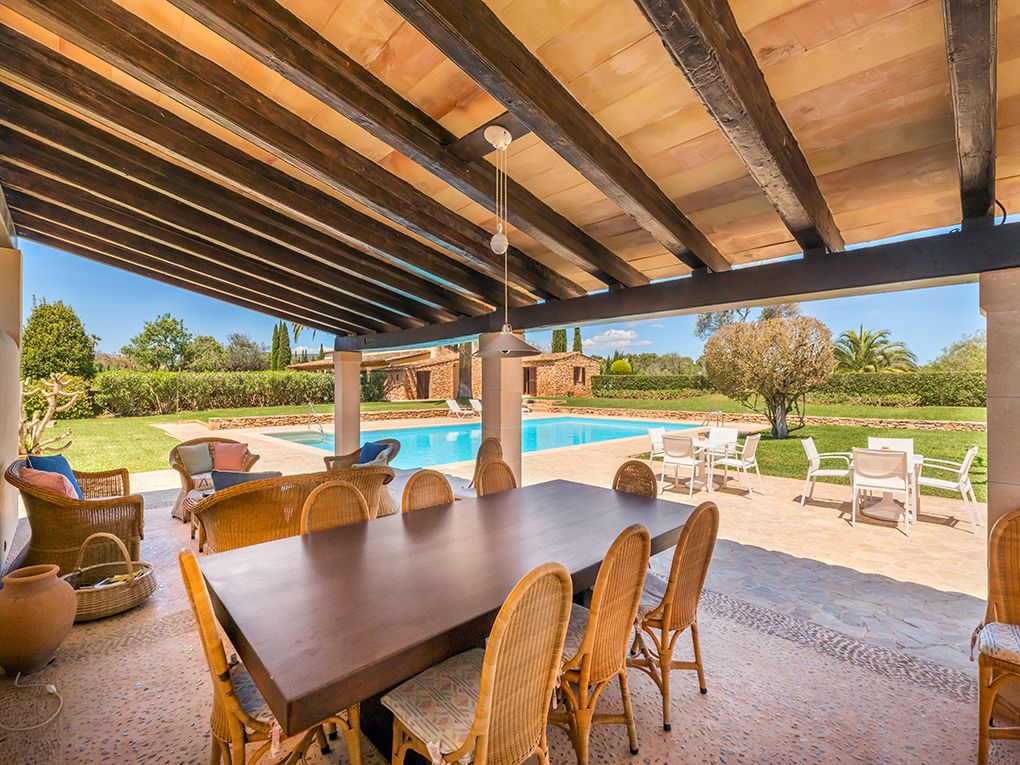 In absolute quietness and seclusion, this unique property is located not far from the natural park of Cala Mondragó. A long private driveway leads to the approx. 6.6 hectare property, which impresses with a perfectly landscaped garden. The property consists of a total of three buildings, the original main house, a ground floor guest wing and an additional elegant house. They have various living rooms, some with fireplaces, two dining rooms, a cozy library, two kitchens and a total of eight bedrooms and eight bathrooms. Due to the harmonious architecture, it is hard to distinguish which buildings are new and which have existed for centuries. An absolute highlight is the garden, which is the perfect oasis with an exceptionally large 16x8 m pool and a welcoming veranda as well as various seating areas. Surrounded by palm trees, olive and orange trees and evergreen cypresses, in a wonderful Mediterranean landscape, this finca offers an exceptional resting place with absolute privacy, without sacrificing good access to the popular village of Santanyí with numerous restaurants, stores and the weekly market. Other features include: a utility room, two wine cellars, a sauna, water purification by reverse osmosis, oil central heating in two buildings, air conditioning, various parking facilities, two cisterns for the harvestation of rainwater for garden irrigation.