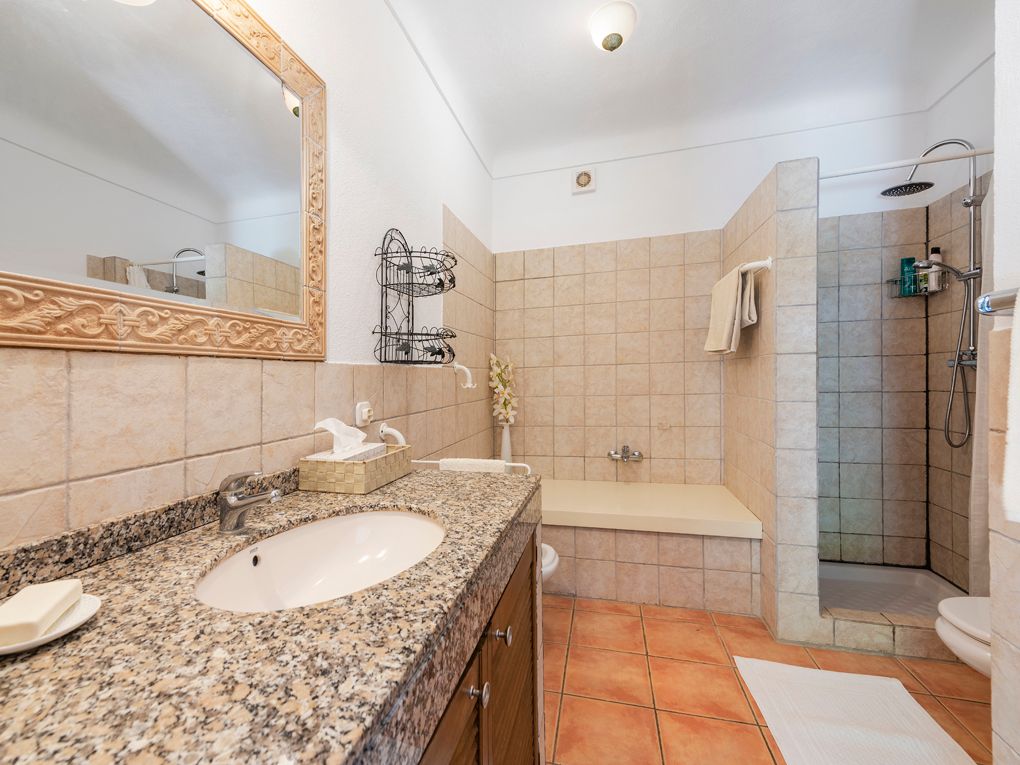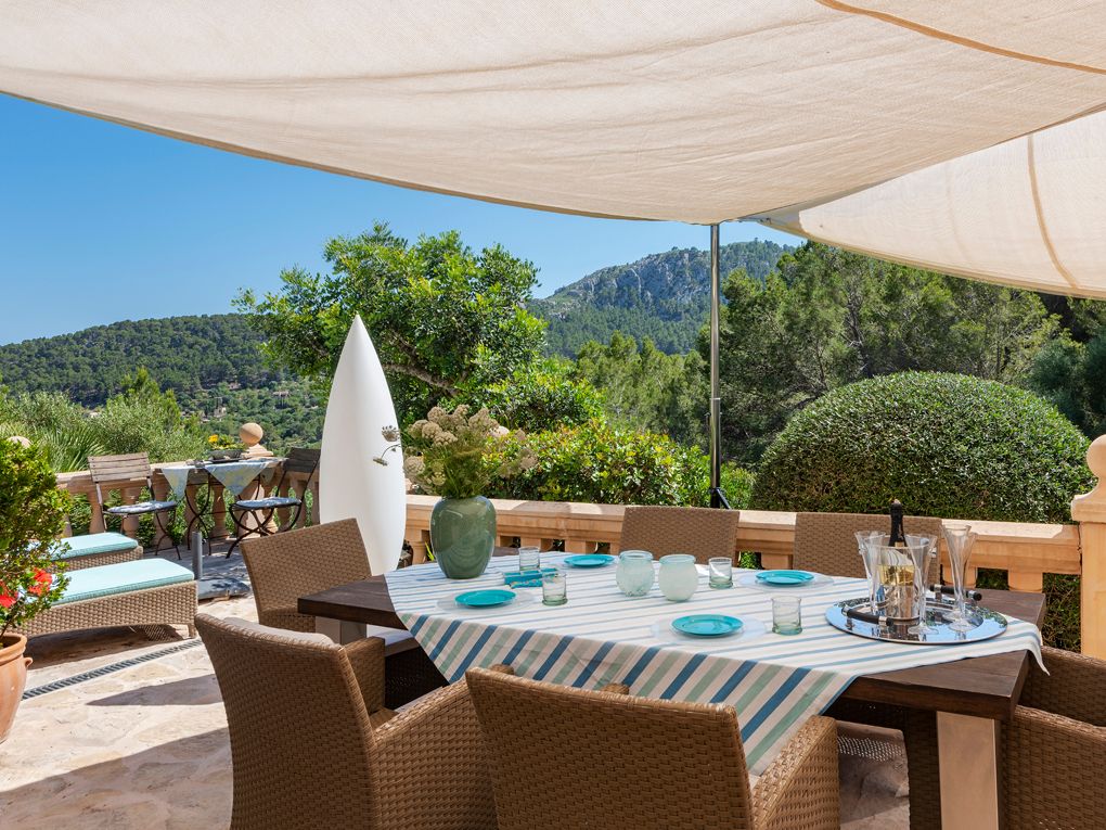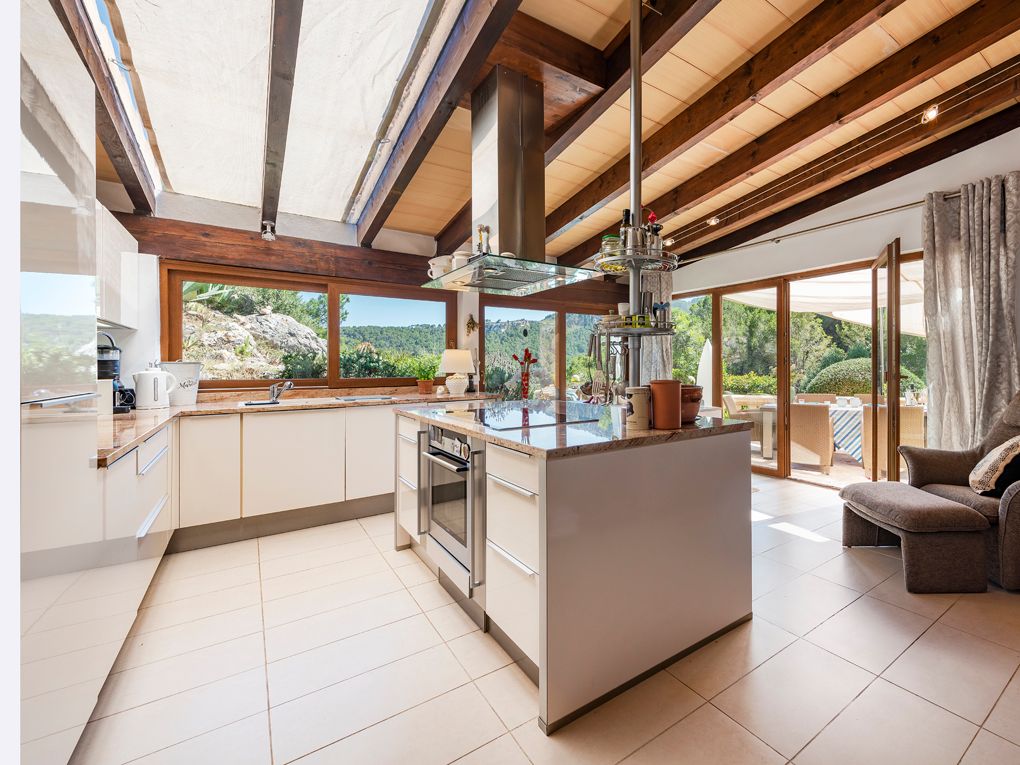 On a large flat plot, between the artists' village of S'Arraco and the seaside and fishing town of Sant Elm, is this finca built in 2000. The finca is south facing and the view is towards the valley and mountains that separate the coast from the interior. The house is built in typical Mediterranean style with stone facade, terracotta floors, wooden beams and several covered and open terraces. Upstairs is the main apartment with two bedrooms, each with an en-suite bathroom, living room with fireplace, dining room and a modern bright kitchen with fantastic views over the valley. Large terraces and a swimming pool are accessible from the living floor. On the ground floor there are two residential units with a total of three bedrooms, two bathrooms and each with a living room and kitchen-kitchenette. A well-kept garden with Mediterranean plants surrounds the house. A small log house and an additional building for animals are located on the property. The house has a water well, city electricity, internet and oil floor heating. In 10 minutes you can reach Andratx, Port Andratx or Sant Elm.