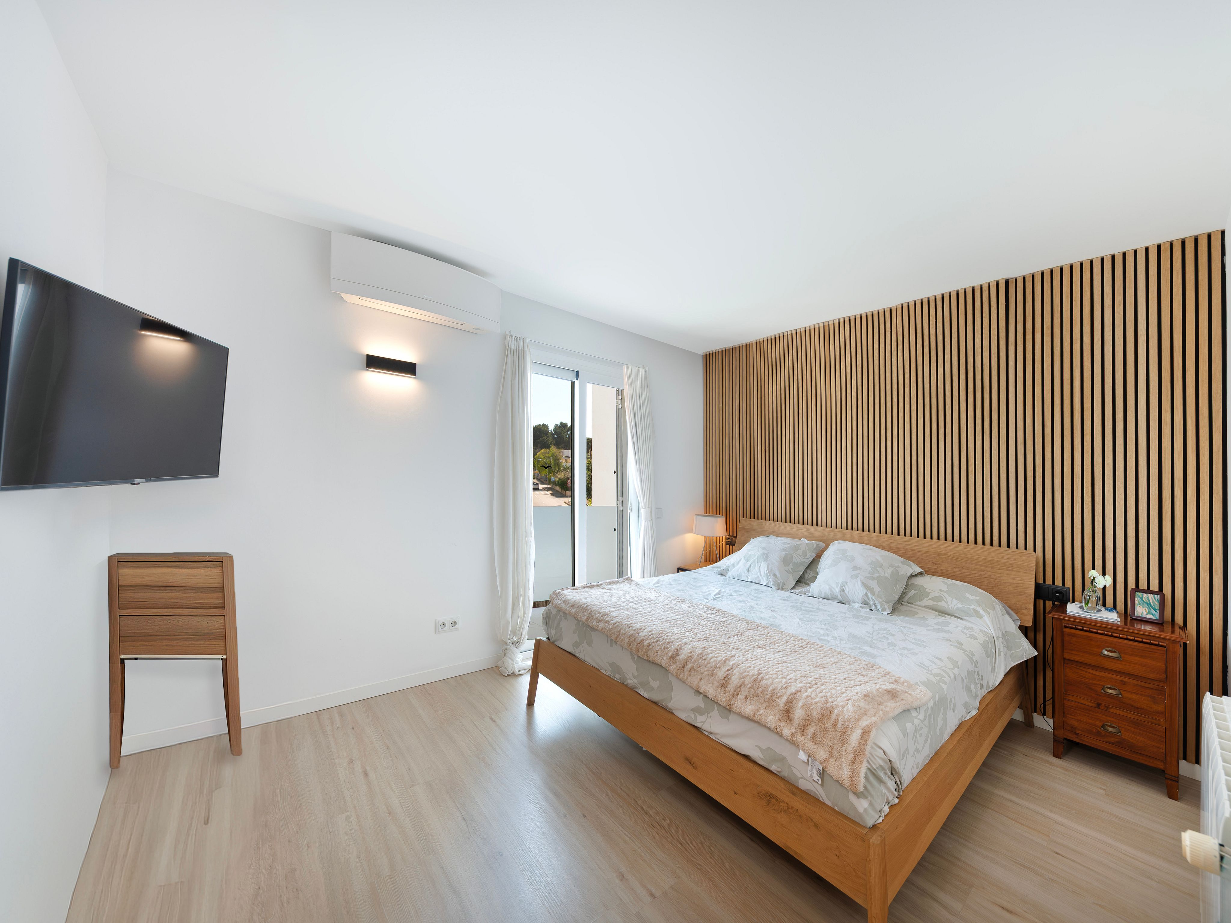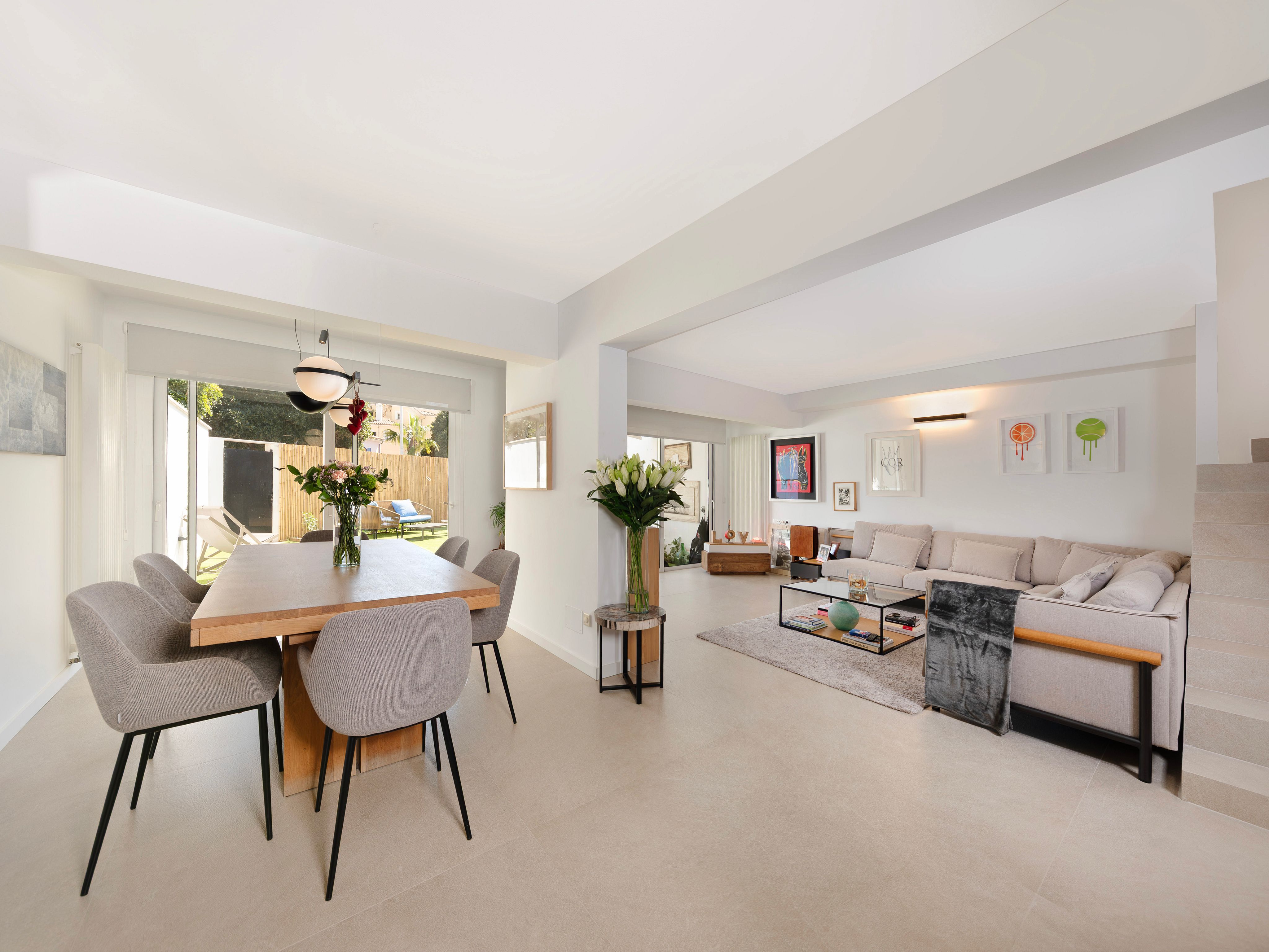 Welcome to this beautifully refurbished townhouse, nestled in the sought-after area of Bendinat. Originally renovated in the year 2025, this home blends timeless elegance with modern comfort—perfect for year-round living or as a Mediterranean retreat. Spread over two levels, the upper floor offers four spacious bedrooms and two bathrooms, including a stylish en suite. Three of the bedrooms open onto private balconies, allowing for gentle breezes and lovely views—ideal for morning coffee or a quiet evening read. The main floor features a bright, open-plan layout, seamlessly connecting the kitchen with the living and dining areas. Natural light fills the space, creating a warm and welcoming atmosphere that extends directly out to a beautiful private patio. Whether you're hosting al fresco dinners, enjoying leisurely lunches, or simply soaking up the sun, this outdoor area is a true highlight of the home. Comfort is guaranteed throughout the seasons with gas heating and air conditioning (warm/cold), ensuring a cozy ambiance all year round. Located in a prestigious and tranquil part of Bendinat, this townhouse offers the perfect combination of lifestyle and convenience—close to beaches, golf courses, and all amenities.
