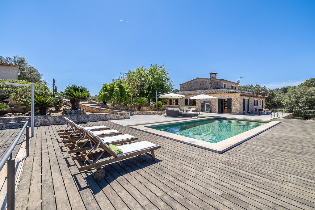 Type: Finca • Region: Central • Construction year: 2006 • Last restoration: 2011 • Total surface: 471 ㎡ • Total rooms: 9 • Bedrooms: 6 • Bathrooms: 5 • Living space: 471 ㎡ • Plot size: 2,32 ㏊ • Terrace • Kitchen • Fireplace • Swimmingpool • Guest toilet • Heating: Central heating, Underfloor heating, Split air-conditioned • Heating type: Oil • Floor type: Stone