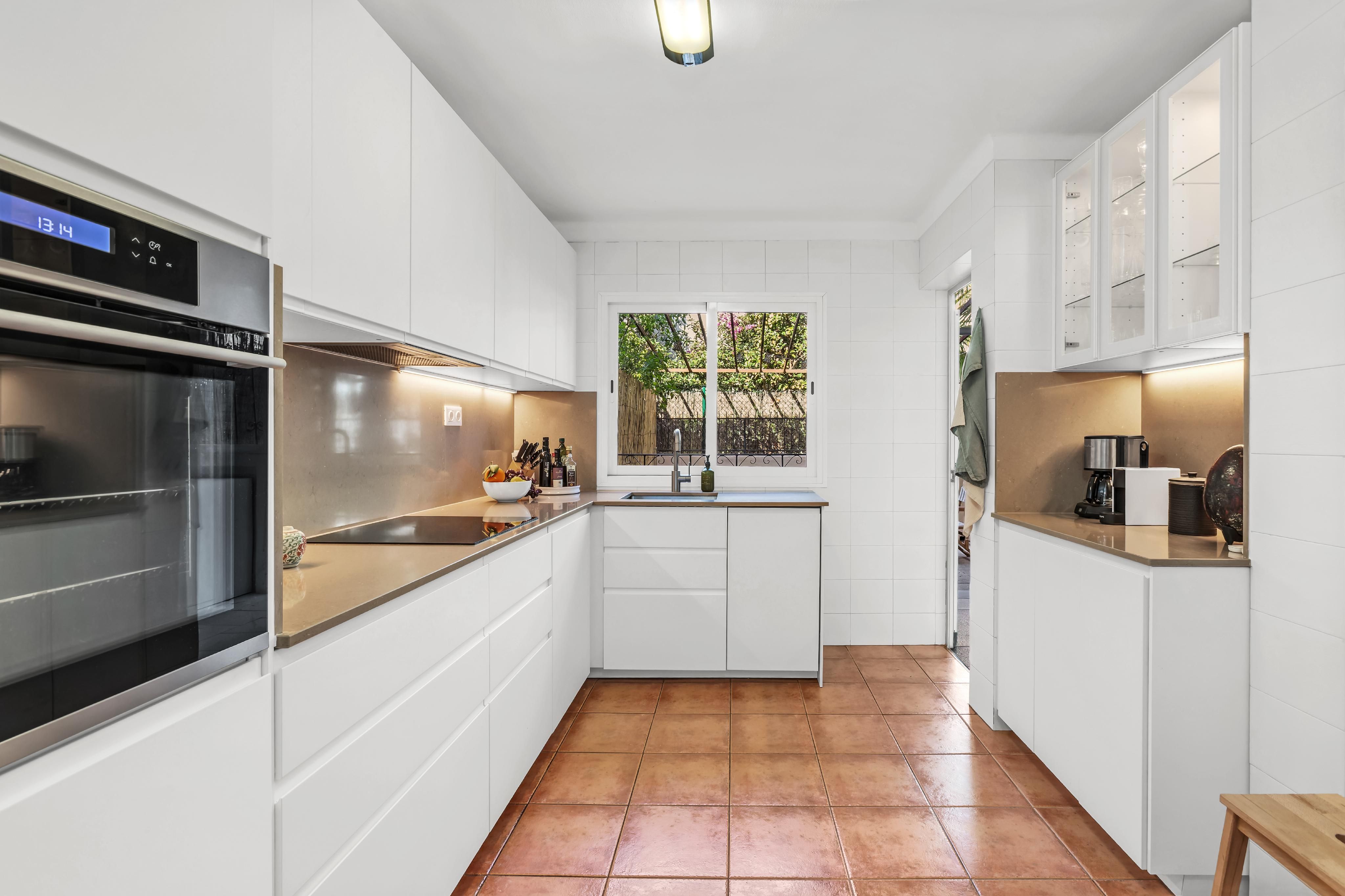 The partially refurbished townhouse (2025) is located within a well-maintained community of just 22 townhouses, in a highly sought-after central location in Portals. All amenities, restaurants, and the beautiful beaches of Portals are within walking distance. The ground floor offers a bright living area with access to a south-facing balcony, a spacious kitchen with direct access to a private rear patio featuring a BBQ area, and a full bathroom. Upstairs, the property comprises three spacious bedrooms sharing one bathroom. The property also offers ample storage space and the possibility to park a small car, with the option to accommodate two additional vehicles.