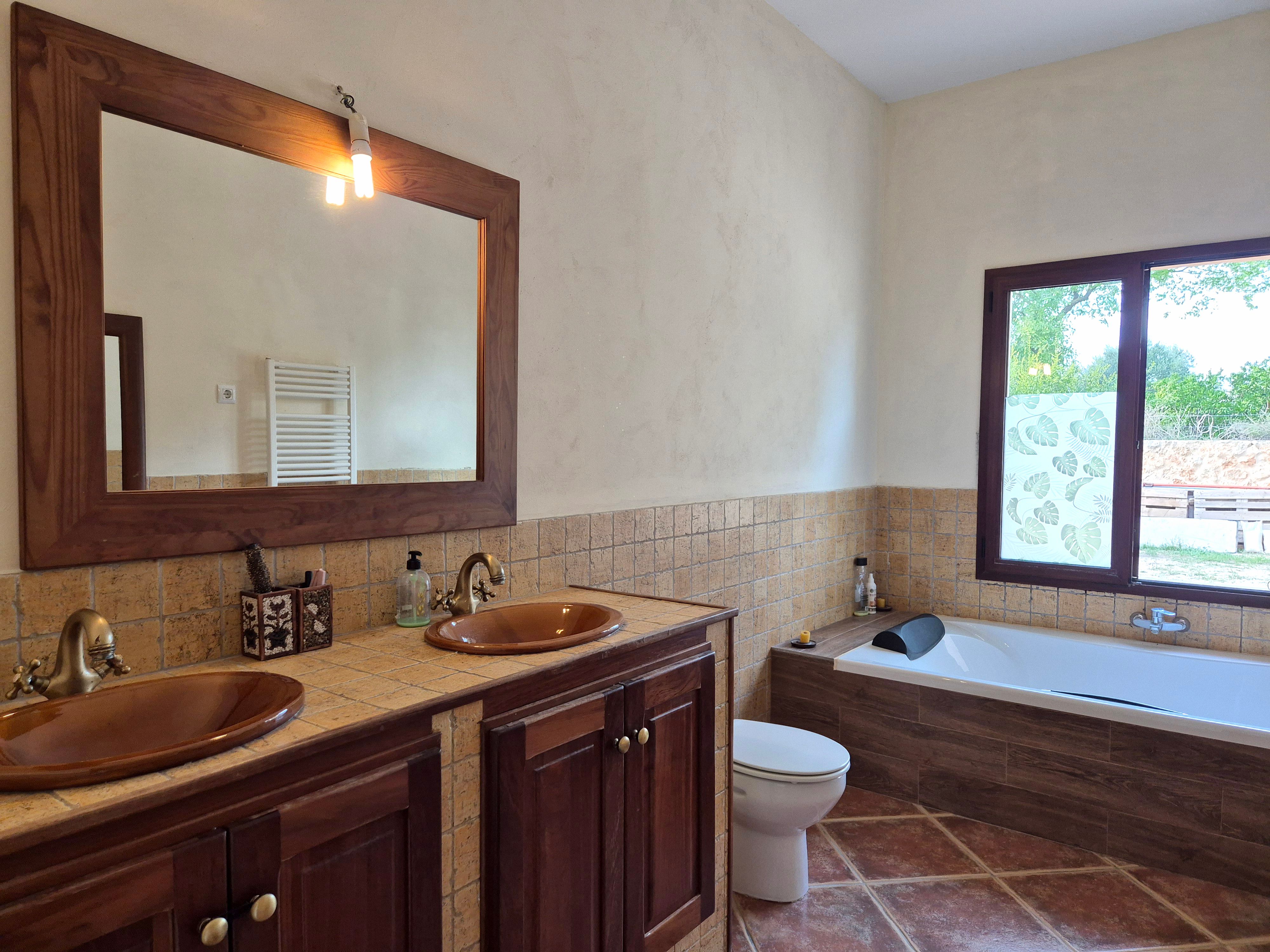 From the pool and garden area, one can enjoy partial views of the Tramuntana mountains, and on the other side, a view of the hill of Santa Eugenia.