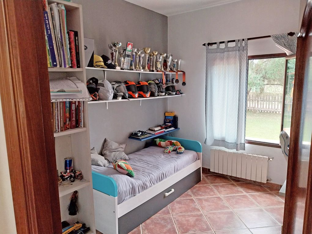 The main house is spread over only one floor and offers a light-flooded living-dining area thanks to high windows, a separate kitchen, three bedrooms, and two bathrooms, one of which is en suite.