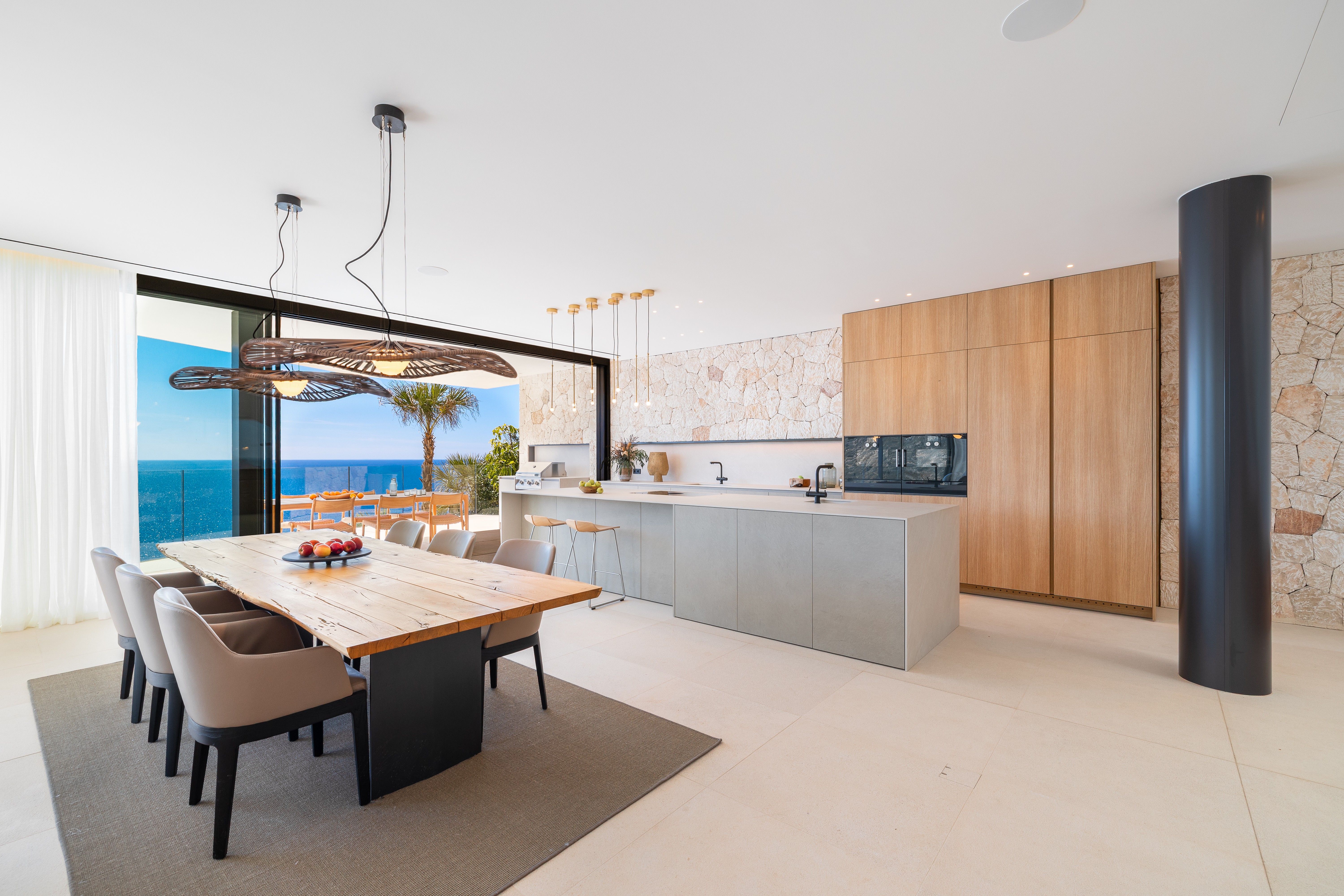 This exceptional new-build villa is situated in a fantastic location on the seafront very close to the Philippe Starck luxury marina of Port Adriano and offers spectacular views down to the azure blue sea. The property impresses with its first-class architecture and modern design with many elegant details and has a large living room with adjoining dining area and open-plan kitchen and four bedrooms, each with en suite bathroom. The bright living room is open to the sunny terraces, which visually enlarges it and connects both areas perfectly. The spacious terrace with infinity pool has been designed so that you can enjoy the wonderful sea views, countless hours of sunshine and breathtaking sunsets to the full. The terraces are the ideal place to end the day with an atmospheric al fresco dinner with family and friends. Underfloor heating, integrated air conditioning and a fireplace ensure year-round comfort. Further extras of the villa include apart from a lift, multifunctional rooms in the basement, which can be customised according to the requirements of the new owners. The optimal infrastructure and the proximity to the capital Palma and the international airport, the breathtaking landscape and the wide range of leisure activities with great golf courses, excellent restaurants and exclusive boutiques make Santa Ponsa and Port Adriano in the south-west of Mallorca a very popular location for luxury weekend residences and first homes for families.