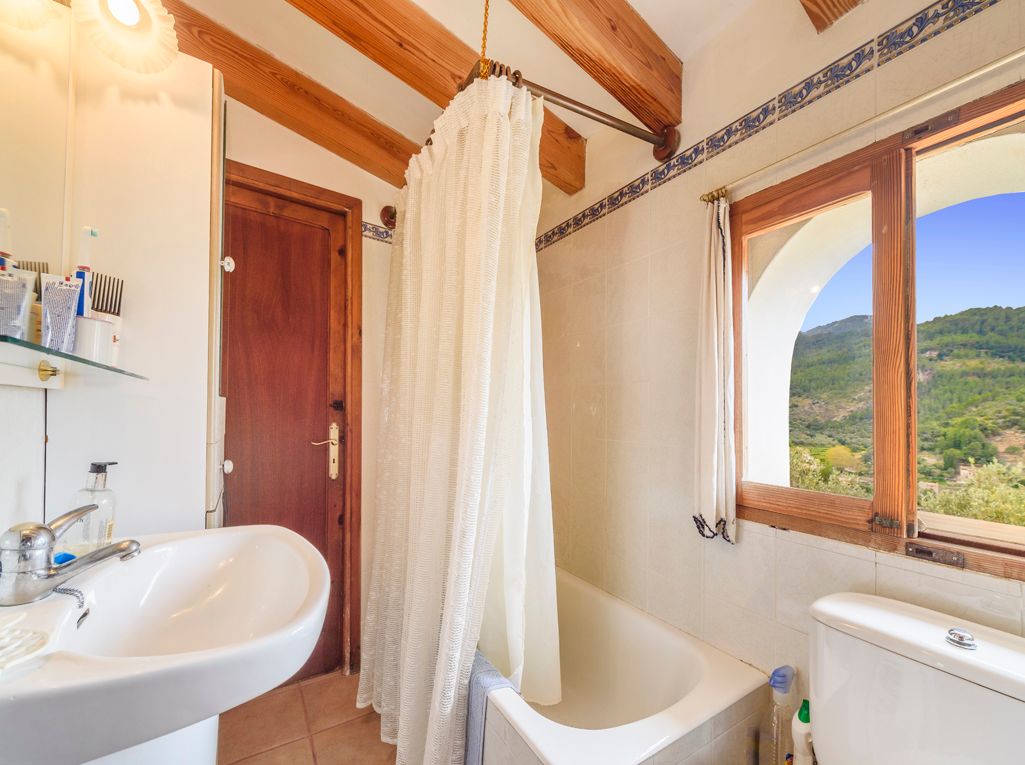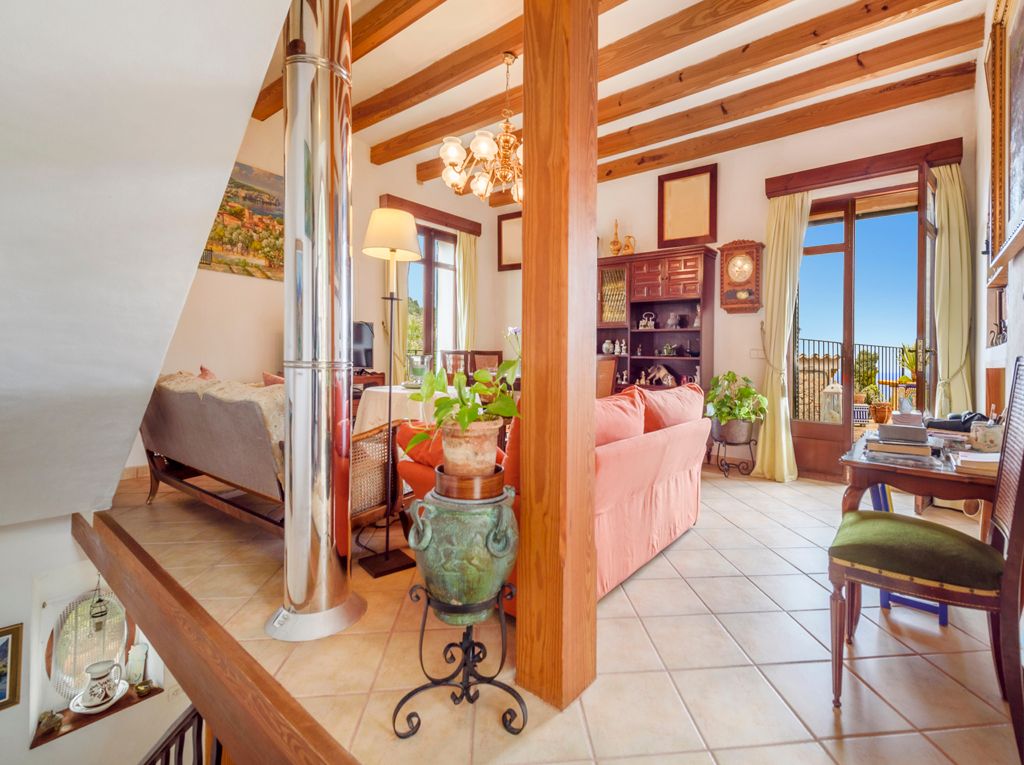 Natural stone house in idyllic Deià with wonderful views of the sea and the mountains. The house has a lot of potential. It was built around 1937 and it will need some renovation. Deià, with all its restaurants and shops, is within walking distance. The house is divided into three floors, with a large garden where a pool could be built. The house has two entrances, one through stone steps from the road and the other by car through a small unpaved road. From the entrance area there is direct access to the kitchen and living room. From the kitchen you have a beautiful view of Deià and the garden. From the living room there is access to a terrace with fantastic views of the sea and the mountains, including sunsets in the summer months. From the living room there are stairs that lead to the ground floor as well as to the first floor. On the ground floor there is a hallway with a Norwegian fireplace that heats the entire floor, 2 bedrooms and 1 bathroom. There is also access to the large garden with a terrace. On the upper floor there are 2 more bedrooms and a bathroom. There is the possibility of building a pool upon obtaining the appropriate building approval.