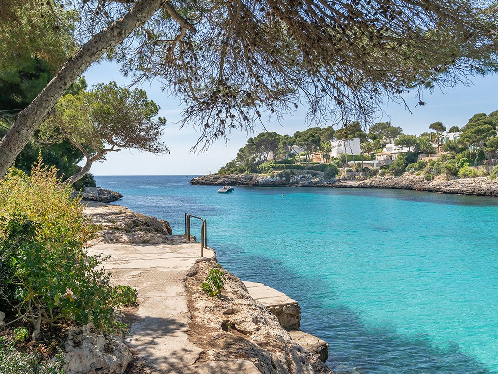 Cala d'Or, the "golden bay", is a community of about 4,000 inhabitants in the Migjorn region, located just 60 kilometers south of Palma. The nearest major city Santanyí is around 15 kilometers away. From the airport in Palma to Cala d‘Or takes about an hour drive to Cala d'Or. The rugged cliff coast around Cala d'Or is broken by numerous small fine sandy bays – there is something for every taste. If you stroll through Cala d'Or, you will notice a clear difference to the usual resorts of Mallorca: the buildings usually have only two floors, everywhere the white washed façade captivates and pine trees line the streets. The cubic architecture or the entire style of Cala d'Or reminds of Ibiza. The cubic architecture or the entire style of Cala d'Or reminds of Ibiza. There is always lively entertainment in the summer months; in the off season Cala d'Or is much quieter. In addition to a large pedestrian area with numerous shops and restaurants, which runs through the city, there is also a so-called "old district". This is close to the pedestrian area - but still wonderfully quiet and is dominated by Ibizan houses. The exclusive marina, with almost 600 moorings, is one of the larger and more luxurious marinas and offers a wide range of bars and restaurants. Here you should spend your time especially in the evening and enjoy the beautiful sunset.