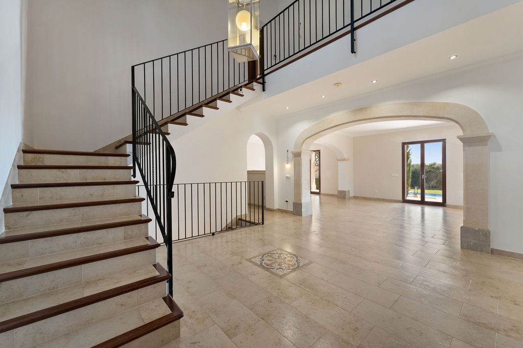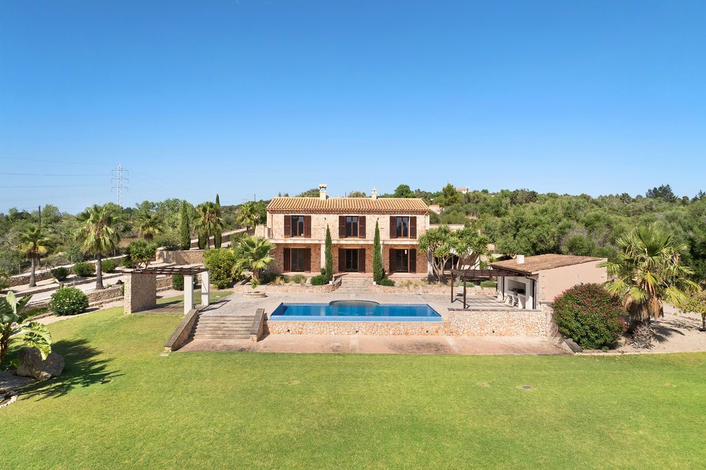 This natural stone finca combines timeless design with high-quality amenities and typical Mallorcan building materials/styles. The luxurious house was completed in 2010, fully renovated in 2025, and consists of 3 floors in the classic Mallorcan country house style. Situated on a stunning approximately 22,800 m² hillside plot, it offers a spectacular distant view of the town of Porreres and Mount Randa. The house and all of the property terraces on various levels are completely enclosed by typical local natural stone walls. Part of the property has been separated with an olive wood gate, thus offering the possibility for keeping animals or growing vines. The other part of the estate has been designed as a well-maintained park-like garden. Further features: Own deep well with drinking water, thermal solar system, alarm system, telephone/internet, high-quality double-glazed windows, the shutters, interior doors, and built-in wardrobes are made of tropical wood/Iroko, marble and slate floors, video intercom system with entrance gate control and worldwide app control, underfloor heating and air conditioning in all rooms and bathrooms, as well as fully automatic garden irrigation. At a glance: 7 bedrooms, 7 bathrooms, large underground garage for up to 6 vehicles, cinema/party room, air conditioning, storage rooms, underfloor heating, landline telephone connection, connection to the public power grid, own drinking water deep well, saltwater pool, guest house, BBQ and stone oven. A property that combines privacy and the highest living comfort – ideal for those who want to experience authentic Mallorca in an exclusive setting.