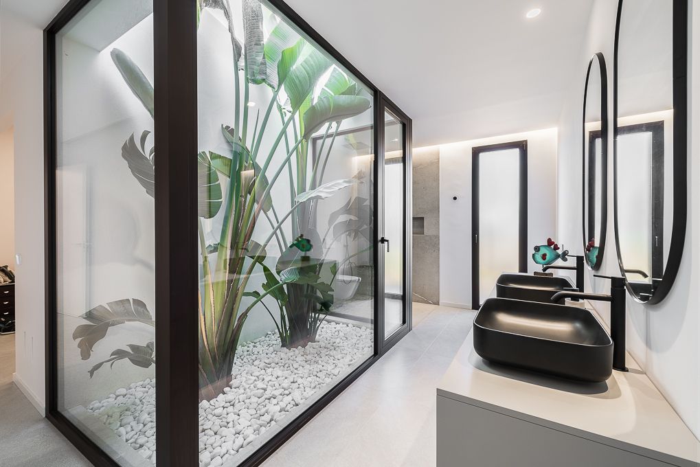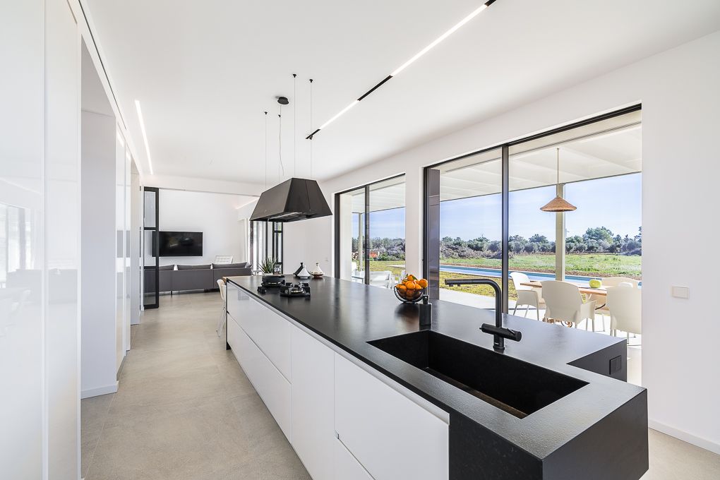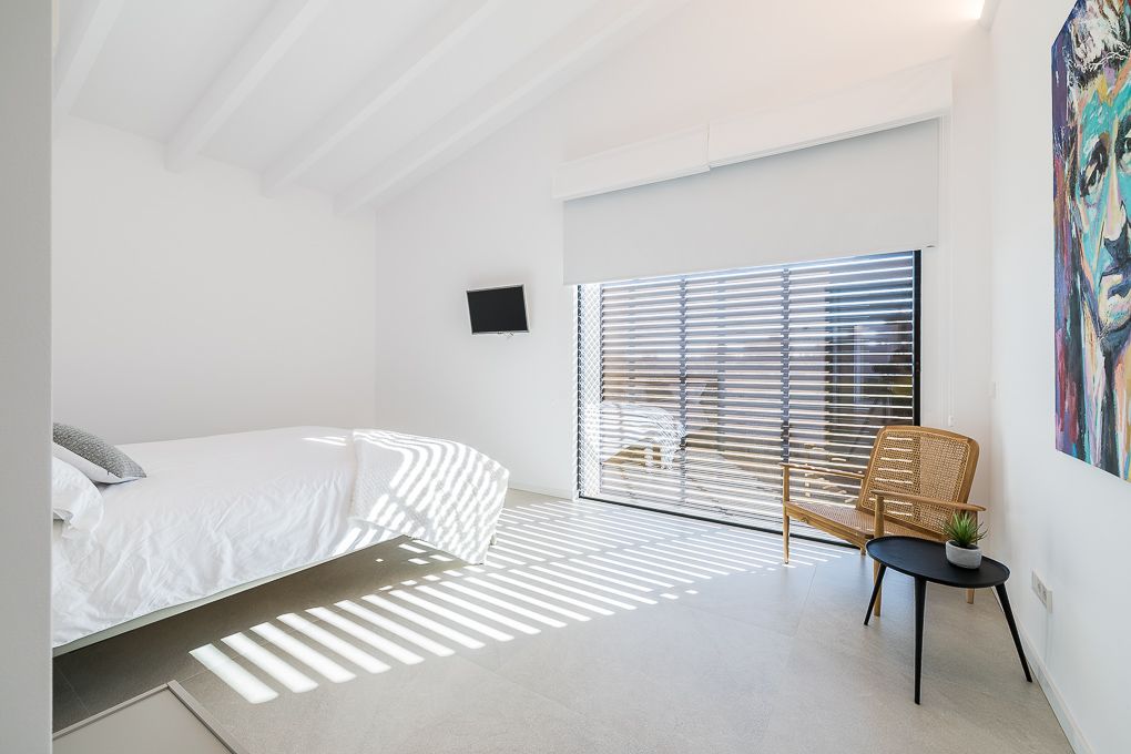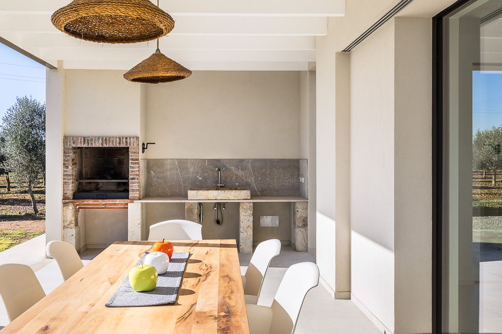 This wonderful and lovingly decorated house leaves nothing to be desired! Spend a summer close to the village of Binissalem with views of the Tramuntana mountains and all the amenities you need for daily life. The large plot with olive trees offers plenty of privacy. All rooms are on one level and a garage offers space for 2 cars. The house is equipped, furnished and decorated to a high standard - come with a suitcase and move in. 3 spacious bedrooms, all with en-suite bathrooms and large windows offer plenty of space. A large living room with open-plan kitchen and access to the terrace is the centrepiece of the house. There is also a large dining room and a guest-toilet. The terrace is covered, has a BBQ area and an outdoor bathroom. Of course, there is also a beautiful pool that is looked after. The entire house is equipped with underfloor heating (heat pump) and air conditioning, individually adjustable in each room. There is a private water supply from a well, internet (cable-based), mains electricity and solar panels.