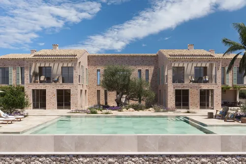 The finca “Sa Bassa” sits on a plot of approximately 14,030 m² and offers a total built area of around 567 m². It is a high-quality new build, scheduled for completion by the end of 2026. Even at the planning stage, the property stands out for its spacious layout and clean, harmonious design. Particular attention has been given to construction quality: the finca is being built using traditional natural stone, elegantly blending modern architecture with classic Mallorcan character. High-end materials such as microcement flooring combined with antique stone tiles create a refined yet warm atmosphere. You enter the home through a central hallway that serves as a calm and practical distribution area. From here, you access the open-plan living and dining area, as well as the thoughtfully integrated kitchen. Large windows flood the interior with natural light and offer sweeping views of the surrounding landscape, even reaching the sea, which adds a truly special touch to the property. Indoor and outdoor spaces flow seamlessly into one another, creating a strong connection to nature. This level also includes a guest WC and two covered terraces, perfect for everyday living and relaxing outdoors. The private area features four spacious bedrooms, each with its own en-suite bathroom and walk-in wardrobe, ensuring maximum comfort. The basement provides additional space, including utility and technical rooms, as well as a flexible area that can be used as a gym, hobby room, or private retreat. A stylishly designed wine cellar completes this level. There are also practical spaces beneath the pool area that can be used as changing rooms or storage. One of the standout features is the outdoor area, designed as the true heart of the home. The impressive pool, measuring around 230 m², forms the centerpiece and highlights the property’s exclusive character. It is surrounded by a beautifully landscaped Mediterranean garden with olive trees, creating a peaceful oasis. Various terrace areas offer different spots to relax depending on the time of day and mood. A covered parking area completes this exceptional property.