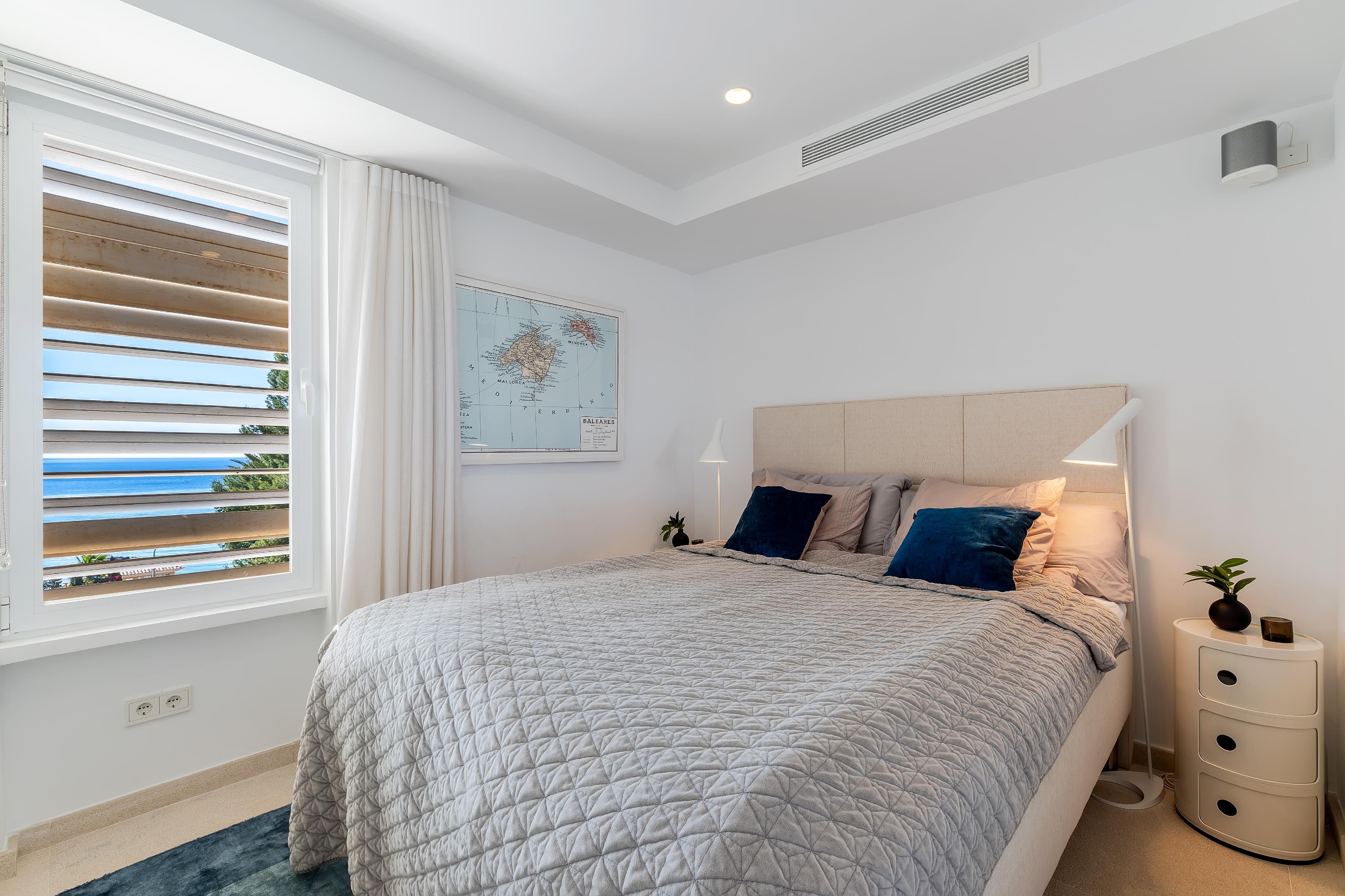 This beautifully renovated penthouse offers a harmonious blend of modern luxury and coastal charm. The open-plan living and dining area is bathed in natural light, creating a welcoming ambiance that seamlessly flows into a fully equipped kitchen. Every corner of this space is designed to frame the mesmerizing sea views, ensuring that the horizon is always within sight. The true gem of this residence is its expansive 71m² private rooftop terrace. Designed for both relaxation and entertainment, the terrace features a comfortable lounge area, a BBQ setup, a fully equipped summer kitchen and a dedicated sunbathing area. Whether hosting gatherings or enjoying serene sunsets, this terrace serves as an idyllic retreat. Inside, the penthouse boasts three elegantly appointed bedrooms and two bathrooms. Natural stone flooring with underfloor heating extends throughout the home, complemented by air conditioning hot/cold and a Sonos sound system, ensuring comfort and convenience. Built-in wardrobes provide ample storage, maintaining the home's sleek aesthetic. Additional amenities include an exterior parking space and access to a nice community pool. Situated in a prime location, this penthouse offers the perfect balance of accessibility with numerous restaurants, beach clubs and beautiful sandy beach of Illetas, shopping facilities and the vibrant city center of Palma are just a short drive away. Viewings are not to be missed.