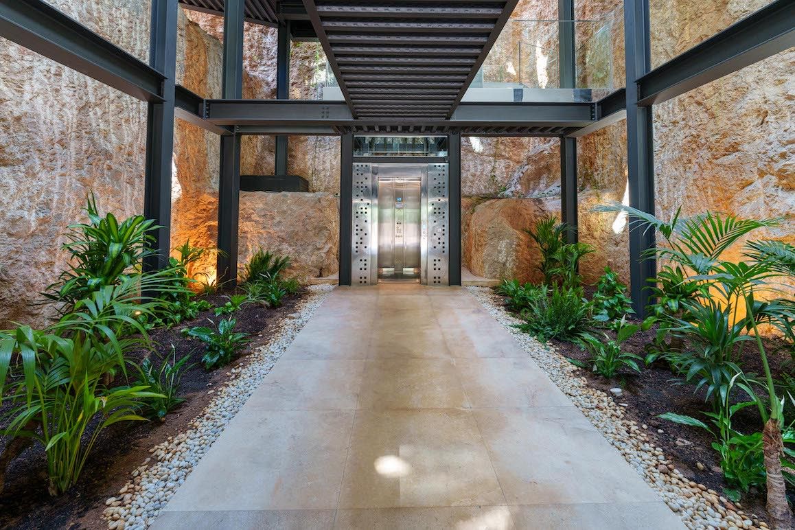 On the privileged sunny side of the coastal and holiday resort of Canyamel near Capdepera in the northeast of Mallorca lies this impressive villa. The house, with a total area of 902 square meters and a living area of 544 square meters, is located on an 887 square meter sloping plot. The extraordinary property, with a spacious living and dining area with an open kitchen and five luxurious bedrooms as well as six bathrooms, offers a perfect symbiosis of elegance and generosity. Access to the house is via the impressive entrance area at street level. Here, natural rock and a daring steel construction merge into an architectural masterpiece. A glass elevator leads up to the three living levels and the roof terrace with an outdoor kitchen, BBQ, and lounge area. The living spaces are equipped with elegant stone tile floors and offer a harmonious interplay of light and space. The open floor plan and large sliding windows allow for a seamless transition between the interior spaces and the outdoor area with breathtaking panoramas of mountains and sea. A particular highlight of this property is the magnificent 50 square meter infinity swimming pool, which invites relaxation while offering an unforgettable view of the surrounding coastal landscape. Modern smart home technology controls the property's climate, lighting, and security systems. An exquisite property that combines modern living with natural beauty while ensuring the highest living comfort.