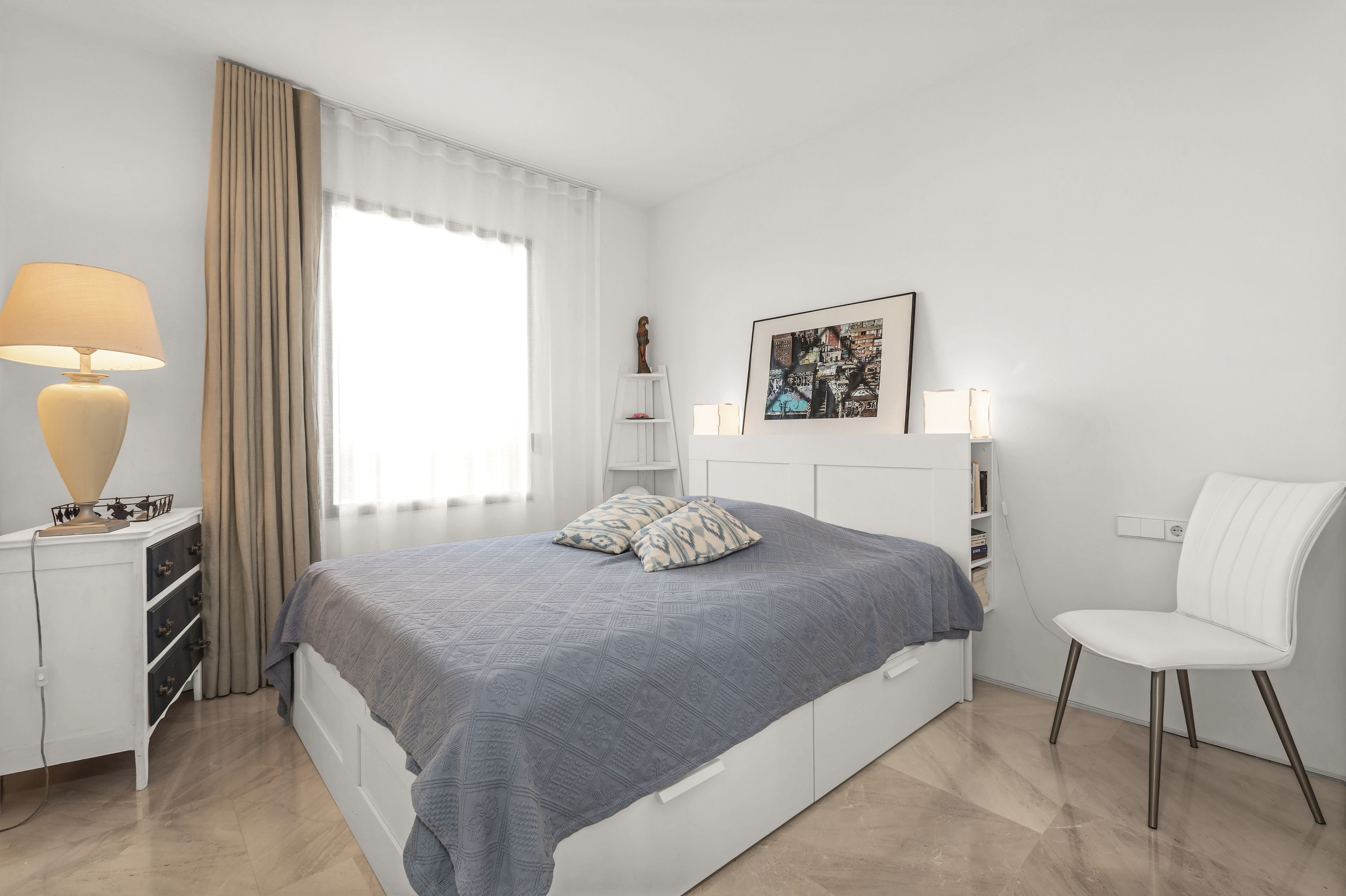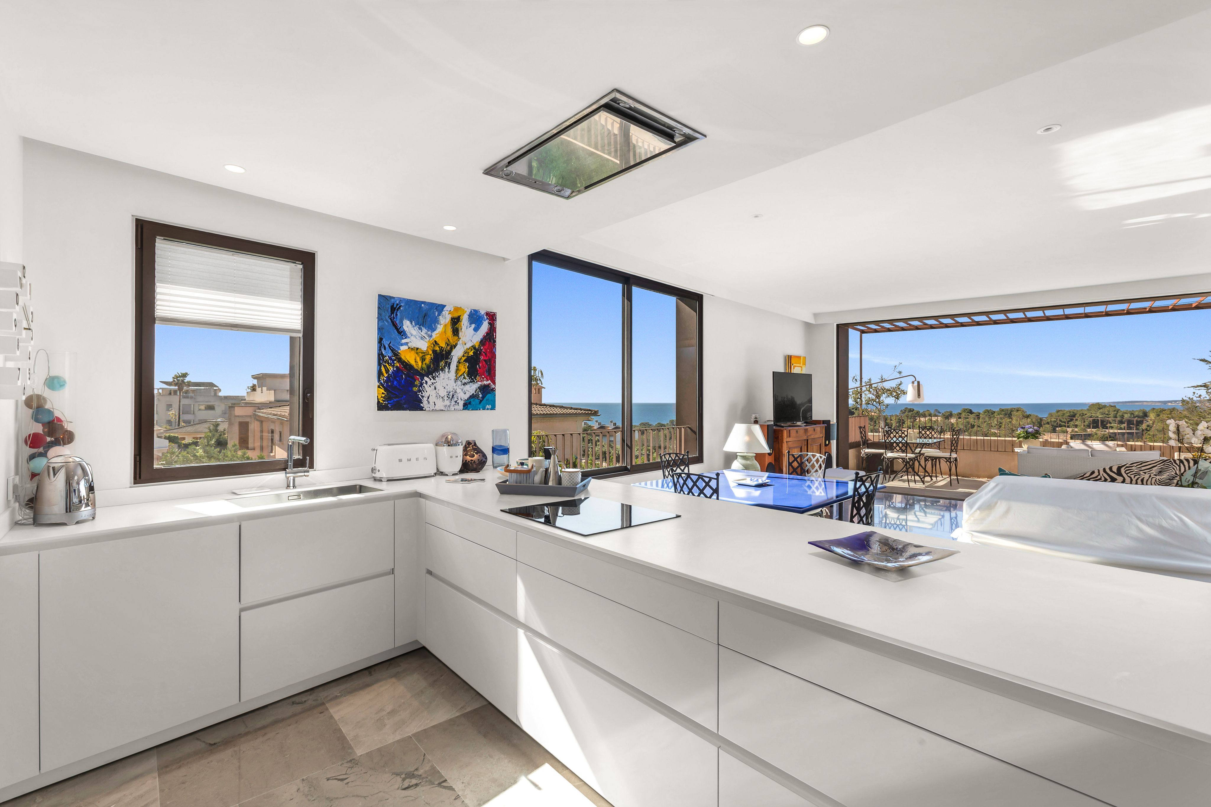 The apartment offers three spacious bedrooms, including an exclusive master suite with its own en-suite bathroom. A special highlight: the spectacular sea view directly from the bed—waking up that makes every day something special.