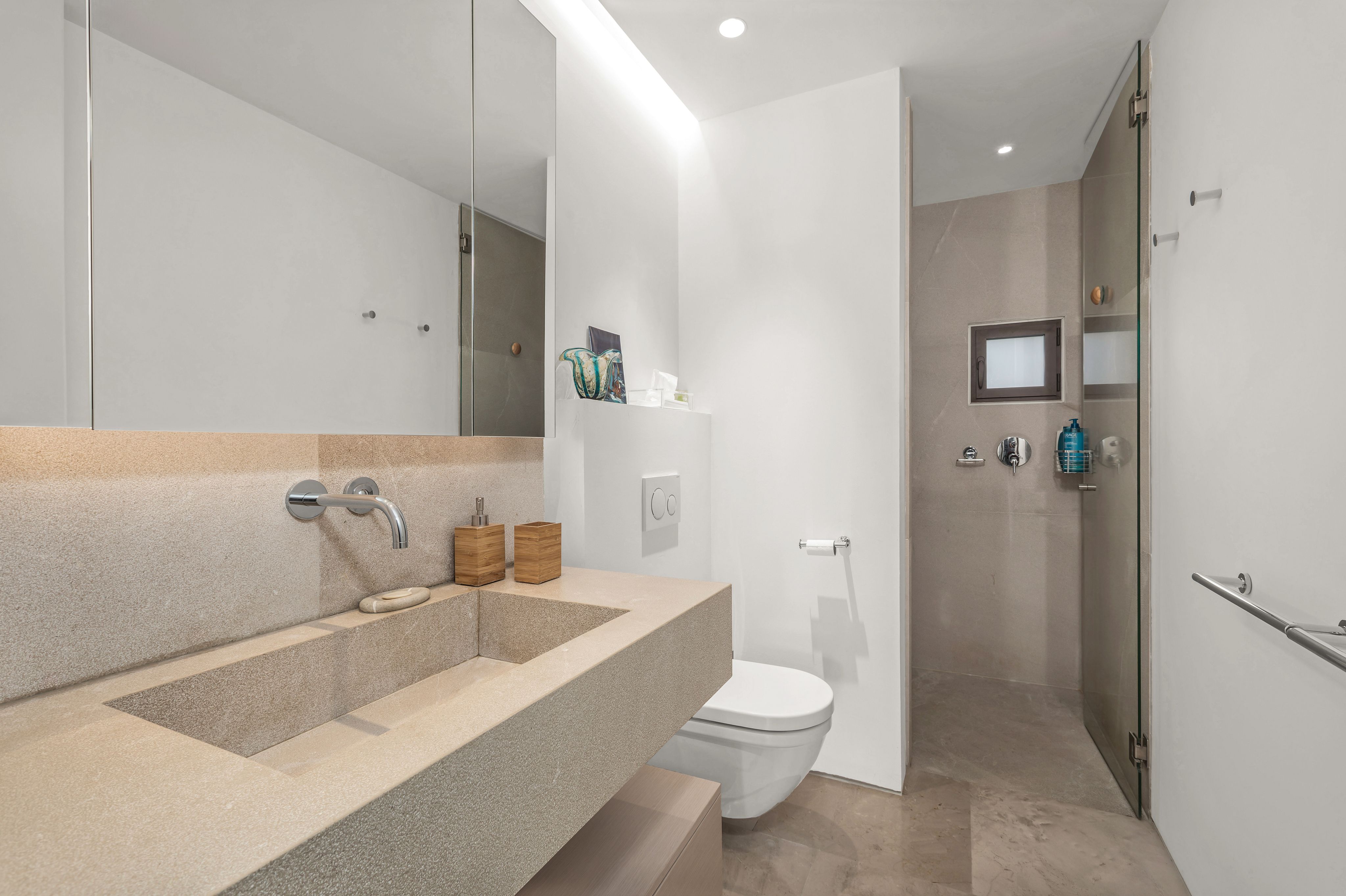 Type: Apartment • Region: Palma • Construction year: 2018 • Last restoration: 2018 • Total surface: 172 ㎡ • Total rooms: 4 • Bedrooms: 3 • Bathrooms: 3 • Living space: 155 ㎡ • Parking: 4 • Terrace • Kitchen • Barrier-free access • Swimmingpool • Guest toilet • Senior oriented • Heating: Underfloor heating, Ducted air-conditioned • Heating type: Gas • Floor type: Stone