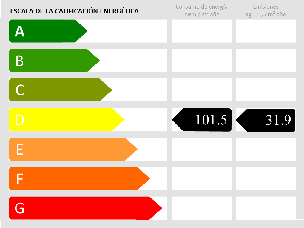 Year of construction: 2009 • Energy consumption value: 101.5 kWh/(m2*a) • CO2 emission: 31.9 kg/m2 • CO2 Emission Rating: D • Energy efficiency rating: D