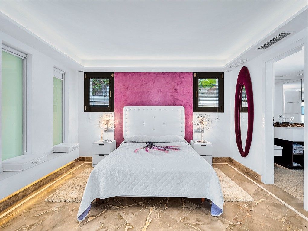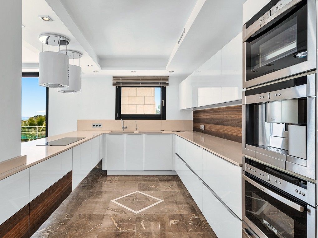Directly located in one of the most prestigious and sought-after residential areas of southwest Mallorca, Bendinat, this property of best quality and fully furnished boasts of fantastic panoramic views to the sea. The living area is distributed over two floors. The lower floor comprises the living and dining area with open-plan kitchen and offers gorgeous sea views. The beautiful patio attracts the attention with its relaxing atmosphere created by fountains, illumination and vegetation and is complemented by the warmth of the fire place. The marble dining table for 12 persons is the perfect place to enjoy wonderful moments with family and friends. The light-flooded patio leads to the bedrooms and guest apartments. The first floor is reserved completely for the master bedroom with a terrific bathroom offering also a sauna, and more entertaining & relaxation facilities. Further features are underfloor heating, fire places, electric doors and shutters, background music, camera monitoring system, lift, wine cellar, lounge, garage and a gorgeous infinity pool.