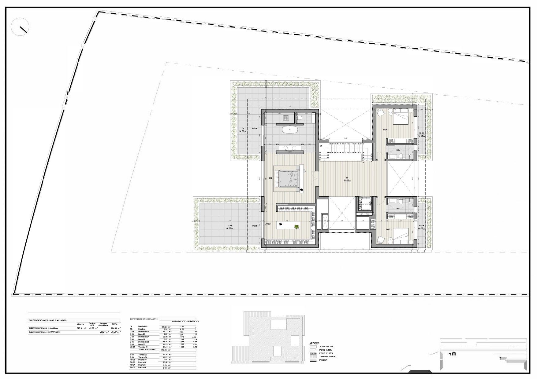 This impressive villa has been designed by the renowned architect Jaime Salva. The interior will be designed by the exclusive interior design company TERRAZA BALEAR. The plot has a building licence so that construction of a house of around 850 m² can begin immediately. The layout of the villa comprises 300 m² on the ground floor, 260 m² on the upper floor and 325 m² in the basement, where the luxurious spa area is located.
