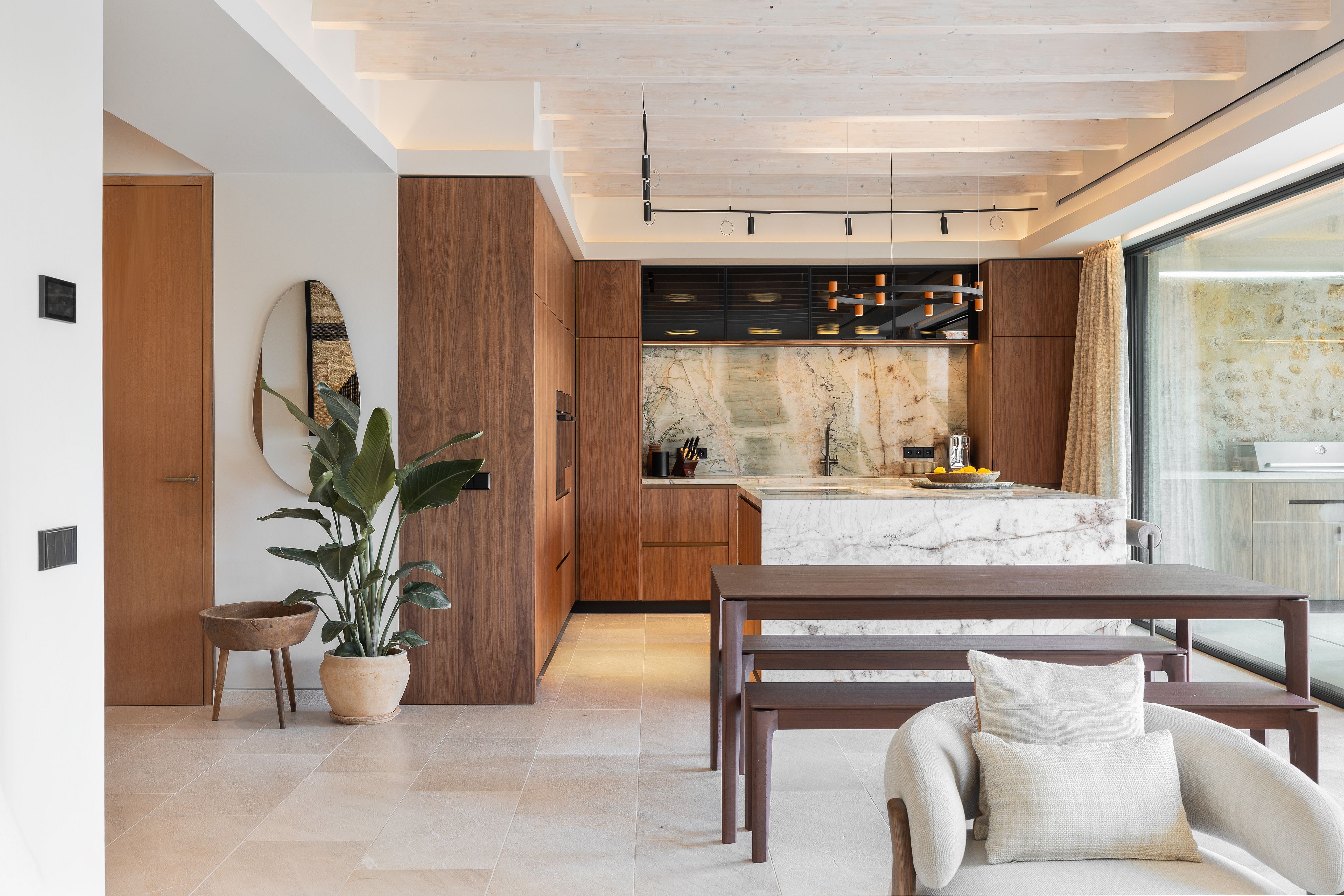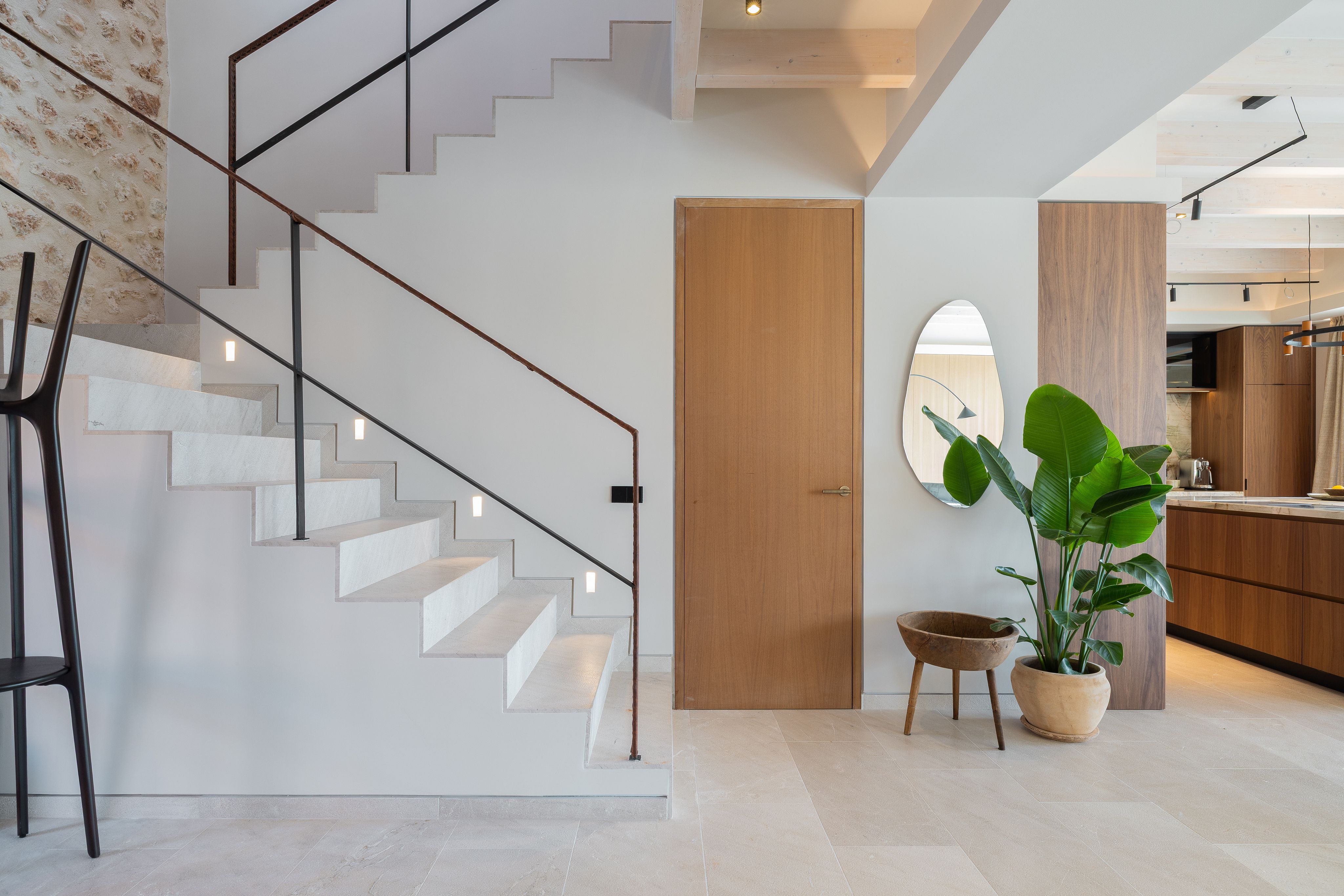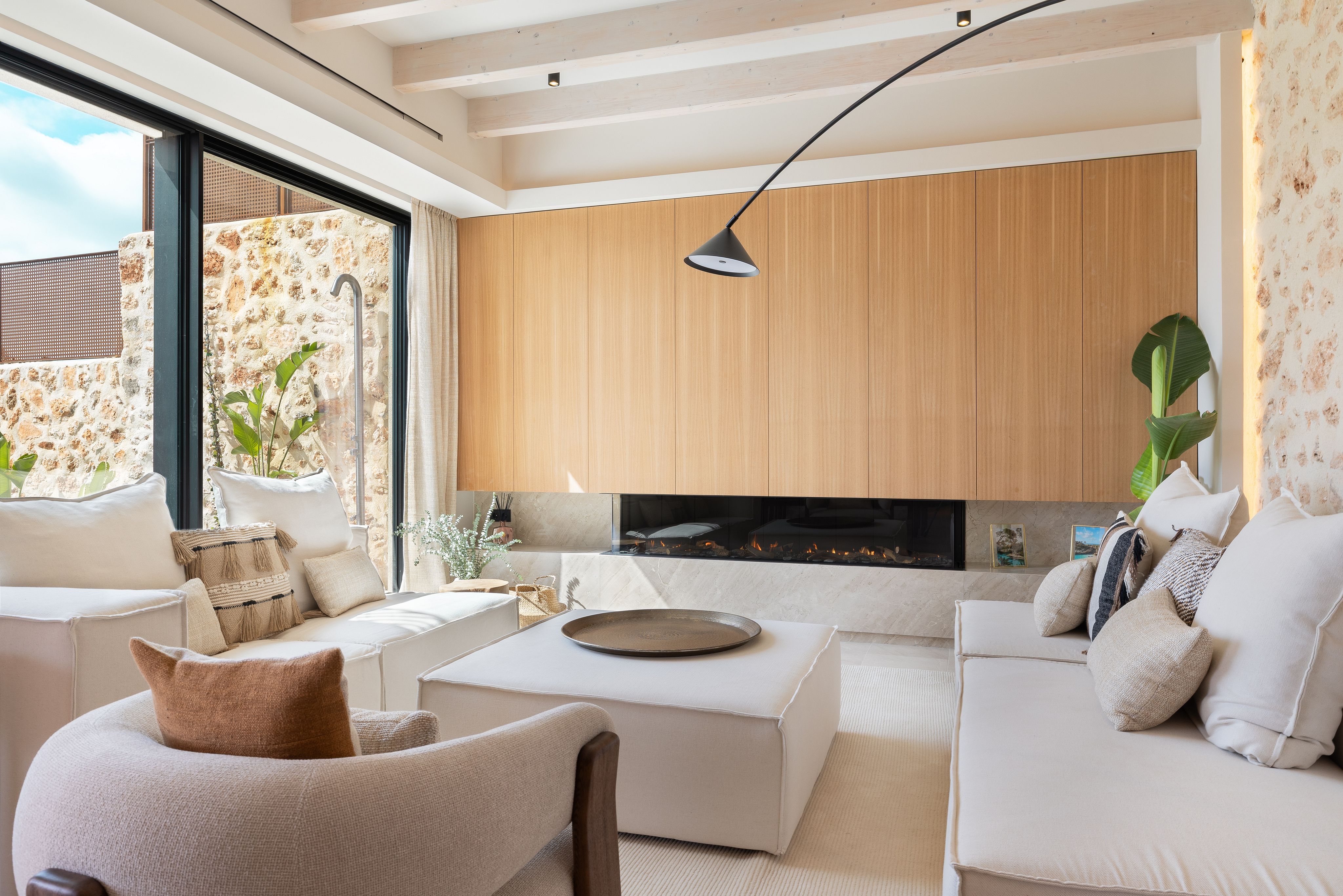 Just minutes from the center of Santa Maria del Camí, this ready-to-move-in villa blends traditional Mallorcan architecture with modern, elegant design. The property features rustic wooden beams, stone details, and high-quality flooring, and has been fully renovated and furnished, offering modern comforts such as central heating, air conditioning, and a complete water and electricity system.