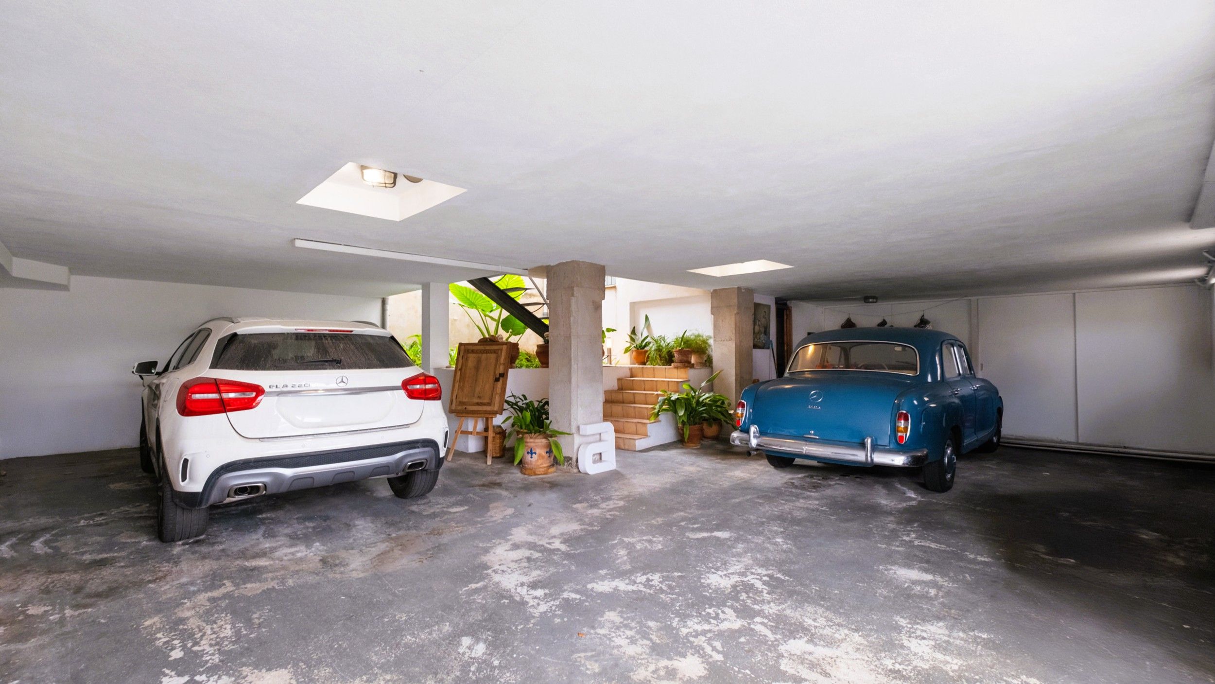 From the moment you enter through the spacious garage on the ground floor, the exceptional architecture is evident. A bright interior patio forms the heart of the home, elegantly connecting the different levels. The first floor features four spacious bedrooms and two stylish bathrooms. Thanks to its southwest orientation, all rooms are bathed in natural light and offer spectacular views of Esporles.