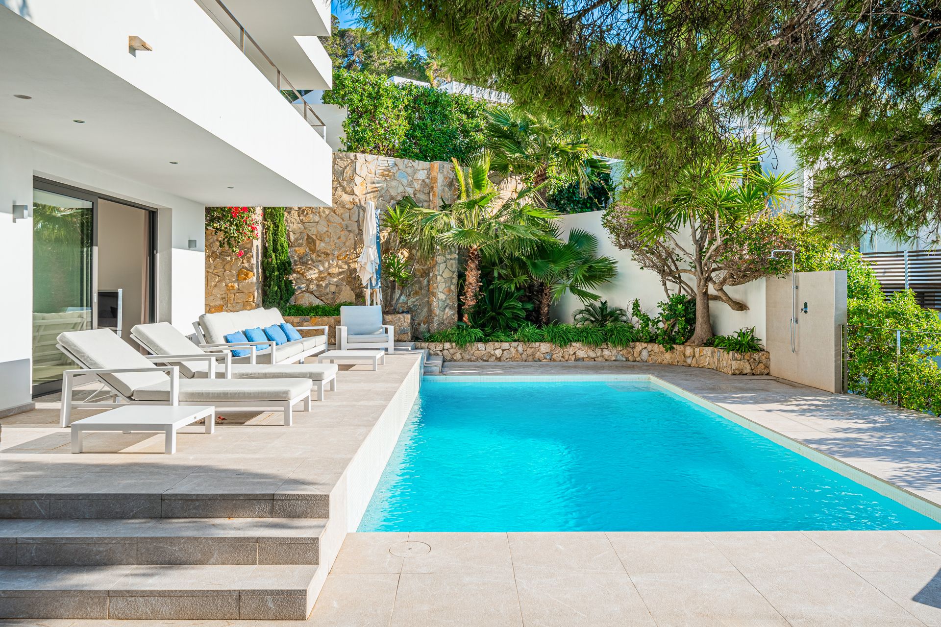 This extraordinary villa combines timeless elegance, state-of-the-art living comfort and a privileged location with spectacular views over the sea. Nestled in a quiet, sun-drenched setting, the property offers the utmost in tranquillity and privacy – ideal for those seeking a place of relaxation and enjoyment. The property was completely renovated to the highest standard in 2017 and is now in perfect condition – move in and feel at home is the motto here. High-quality materials, a well-thought-out room concept and state-of-the-art building services ensure a first-class living experience. The villa has a total of four spacious bedroom suites – three in the main house and a separate guest apartment that offers the highest level of comfort and independence. The spacious terraces and well-maintained outdoor area invite you to enjoy the incomparable view. Especially in the summer months, fantastic sunsets unfold here, making every evening a special experience. The famous harbour promenade of Port Andratx, with its numerous restaurants, shops and bars, is just a few minutes' drive away. Special features include: hot/cold air conditioning, alarm system, underfloor heating, 4 en-suite bathrooms, guest toilet, utility room, storage room, parking space and a private, heated pool of approx. 30m2.