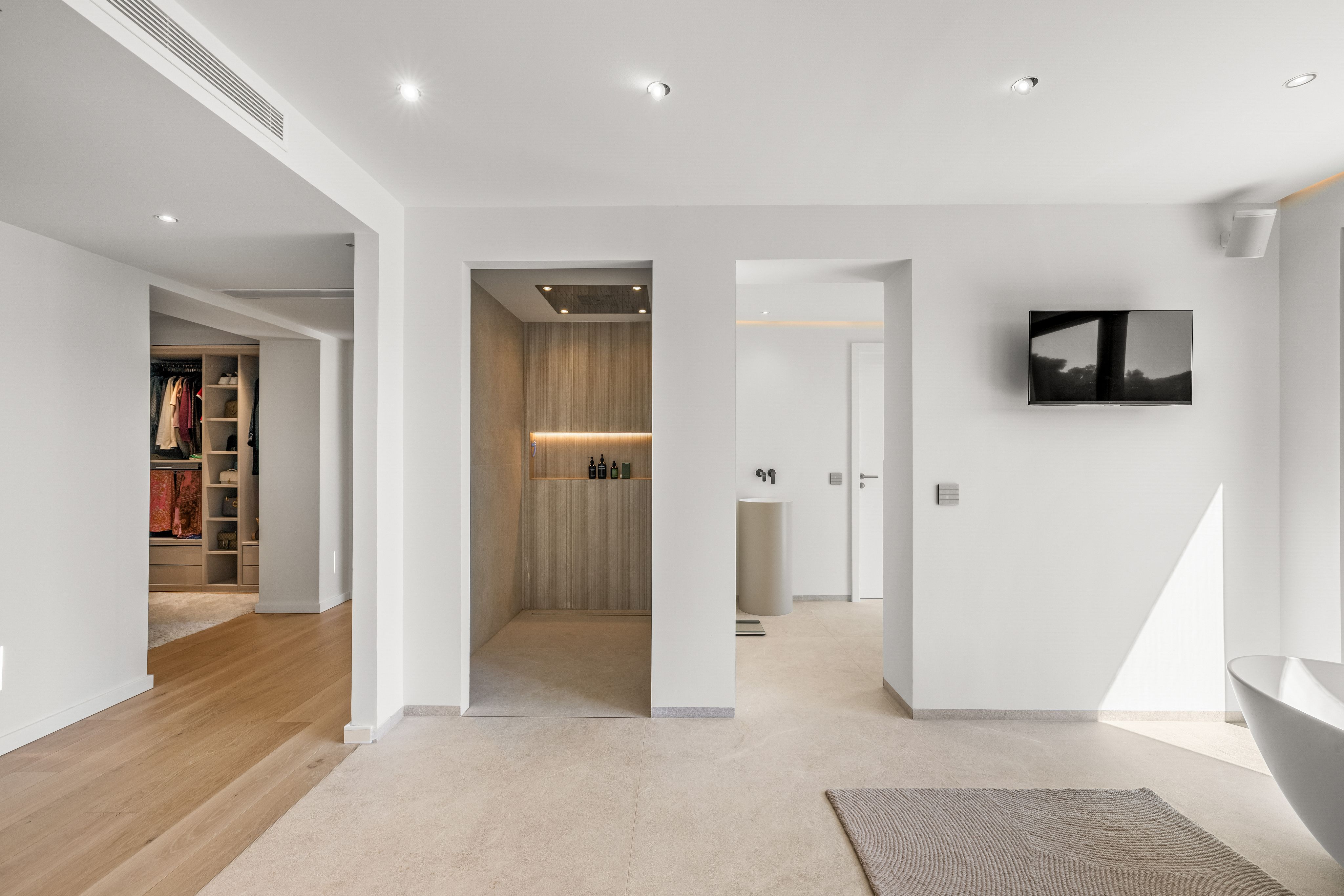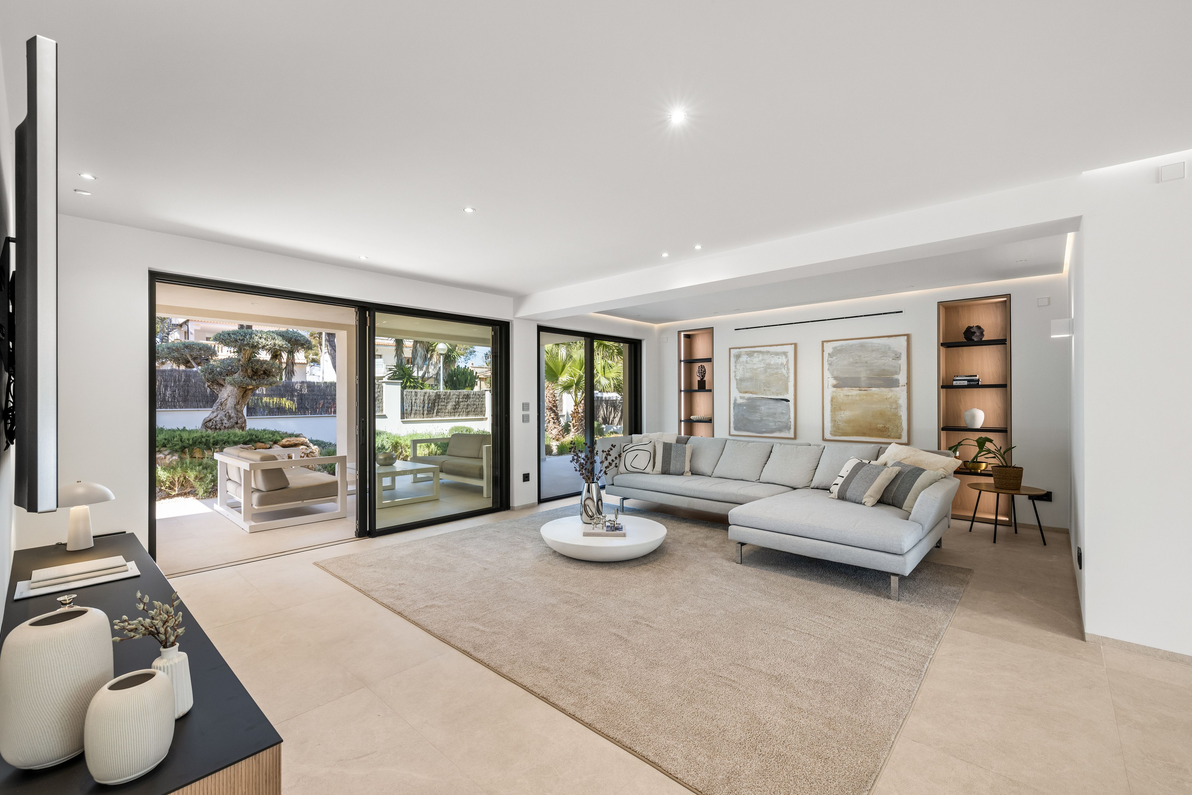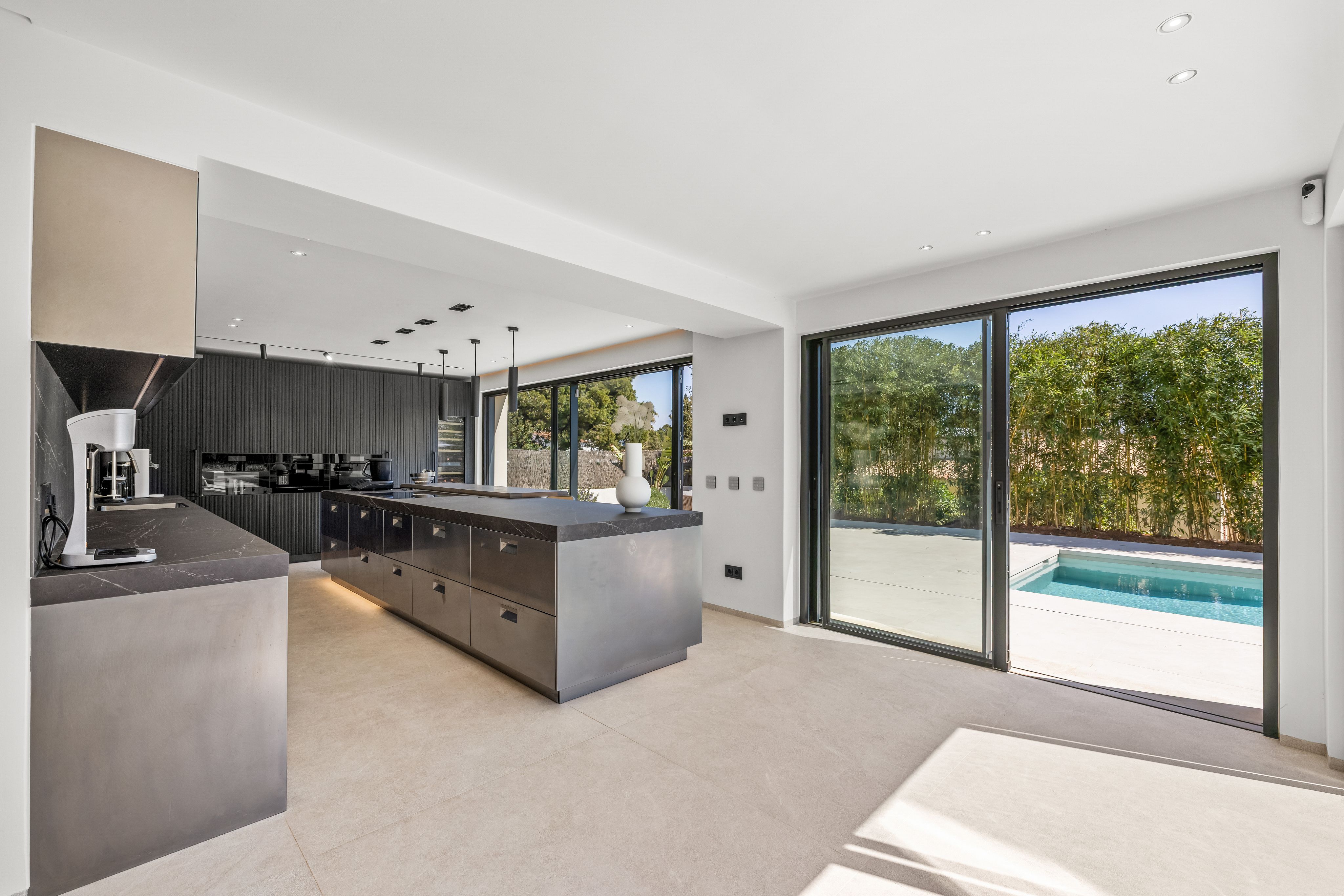 This detached, exclusive villa on a 1,000 m² plot in El Toro impressively combines luxury, comfort and privacy. The spacious property extends over two levels and offers a total built area of 400 m², complemented by generous terrace spaces. The ground floor features an open-plan living and dining area, a modern designer kitchen with a large island and integrated bar area, one bedroom with en-suite bathroom, a utility room, bodega, guest toilet, and a separate entrance area. The covered and open terraces invite you to relax and enjoy. On the upper floor there are four additional bedrooms, each with access to the large open terraces. The master area impresses with approx. 100 m², comprising two bedrooms, a spacious bathroom and a separate dressing room. The outdoor area includes a 34.71 m² swimming pool, inviting terraces, well-maintained lawns and exotic landscaping that ensures maximum privacy. Parking for up to four vehicles is also available. The garden and pool benefit from a sunny south-facing orientation throughout the day. The villa stands out due to its very high construction quality, premium features and a well-thought-out layout, making it ideal for families as well as regular guests. The location is particularly attractive: Just a few minutes away is the popular Port Adriano marina with restaurants, bars, boutiques, a water sports school and a sandy beach. A viewing of this exceptional villa is highly recommended. Contact us for further information or to schedule a private appointment.