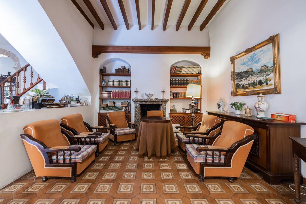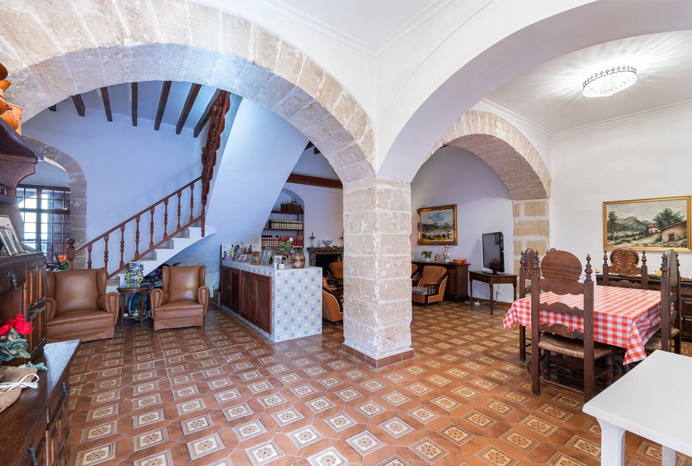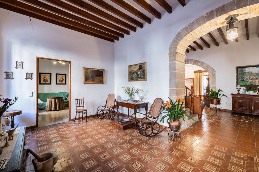 This beautiful property is located in the center of town. On the ground floor we find a large entrance hall with a living-dining room, two bedrooms and the kitchen. On the first floor there are five bedrooms, one of them with own bathroom, as well as another bathroom and a large living room with access to a terrace. The second floor offers a large space that allows free distribution. It preserves original elements such as wooden beams and stone arches.