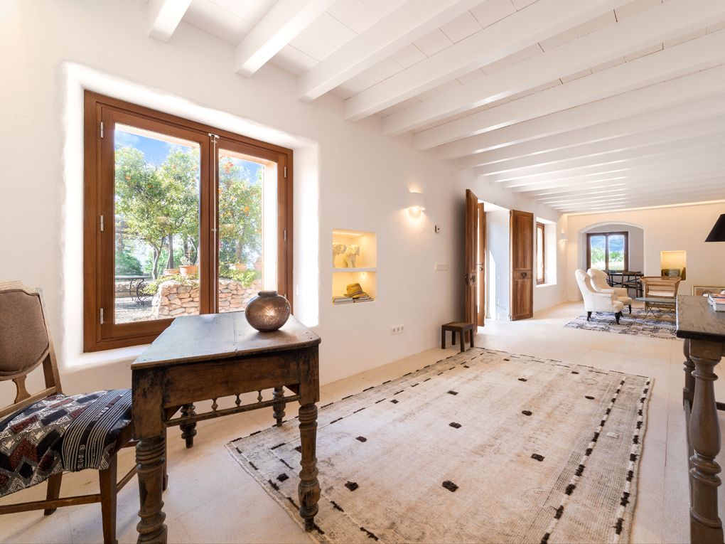 The village is set at the foot of the Sierra de Alfábia surrounded by the Sierra de Tramuntana mountain range. It has approx. 6,000 inhabitants and an extensive surface, standing as one of the 6th largest municipalities on the island. Bunyola also includes the villages of Palmanyola and Orient, and the impressive country estates known as Alfábia and Raixa. It boasts a marvelous natural area known as "Sa Comuna", property of the Town Council. Bunyola is very well connected by road and train, it preserves the old train station that connects Palma and Sóller. The town centre is dominated by San Mateo Church and the town square, where we can enjoy a good coffee and the good vibes of this peaceful area. It stands out for its tranquillity, its charming narrow streets, the architecture of its old stone houses, as well as its proximity and easy access to Palma. Bunyola provides a good selection of restaurants and coffee shops. It is about 25 minutes away from the airport, and 15 minutes from the centre of Palma and its beaches.