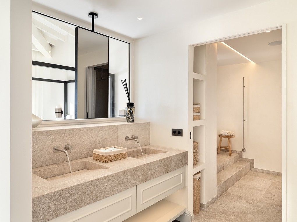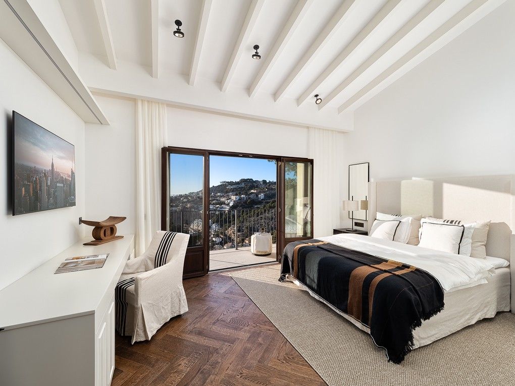 This exclusive villa in Port Andratx, one of the most sought-after residential areas in Mallorca, presents itself in a charming Scandinavian style following a comprehensive refurbishment. The combination of modern design and cosy ambience gives this property a unique atmosphere. The villa impresses as soon as you enter with its high-quality wooden parquet flooring and elegant stone flooring. The entire property is equipped with air-conditioning for warm summer days and underfloor heating from an efficient heat pump for the cooler months to ensure maximum living comfort. An advanced domotic system enables convenient control of the illumination, the heating and the security technology - all at the touch of a button. A modern elevator offers additional convenience and provides barrier-free access to all floors. The villa has four spacious bedrooms, each with its own luxurious bathroom. All rooms are arranged to offer breathtaking views of the sea, especially during the mesmerising sunsets. The ultra-modern kitchen is divided into two areas - the preparation kitchen and the main kitchen. Only first-class brands and materials have been used here to meet the highest standards. The open-plan design facilitates communicative interaction and creates an inviting atmosphere. The living area opens to a spacious terrace, ideal to spend relaxing hours outdoors. The villa has its own garage parking space and is located in the immediate vicinity of an exclusive beach club to enjoy the Mediterranean lifestyle to the fullest. Another highlight is the bodega with a view of the sea, an ideal place to enjoy special moments with friends. This property not only impresses with its first-class furnishings and the use of the best materials, but above all with its sought-after location in Port Andratx. This villa is more than just a home - it is an oasis of exclusivity and luxury in which Mediterranean flair and Scandinavian style combine to create a unique symbiosis.