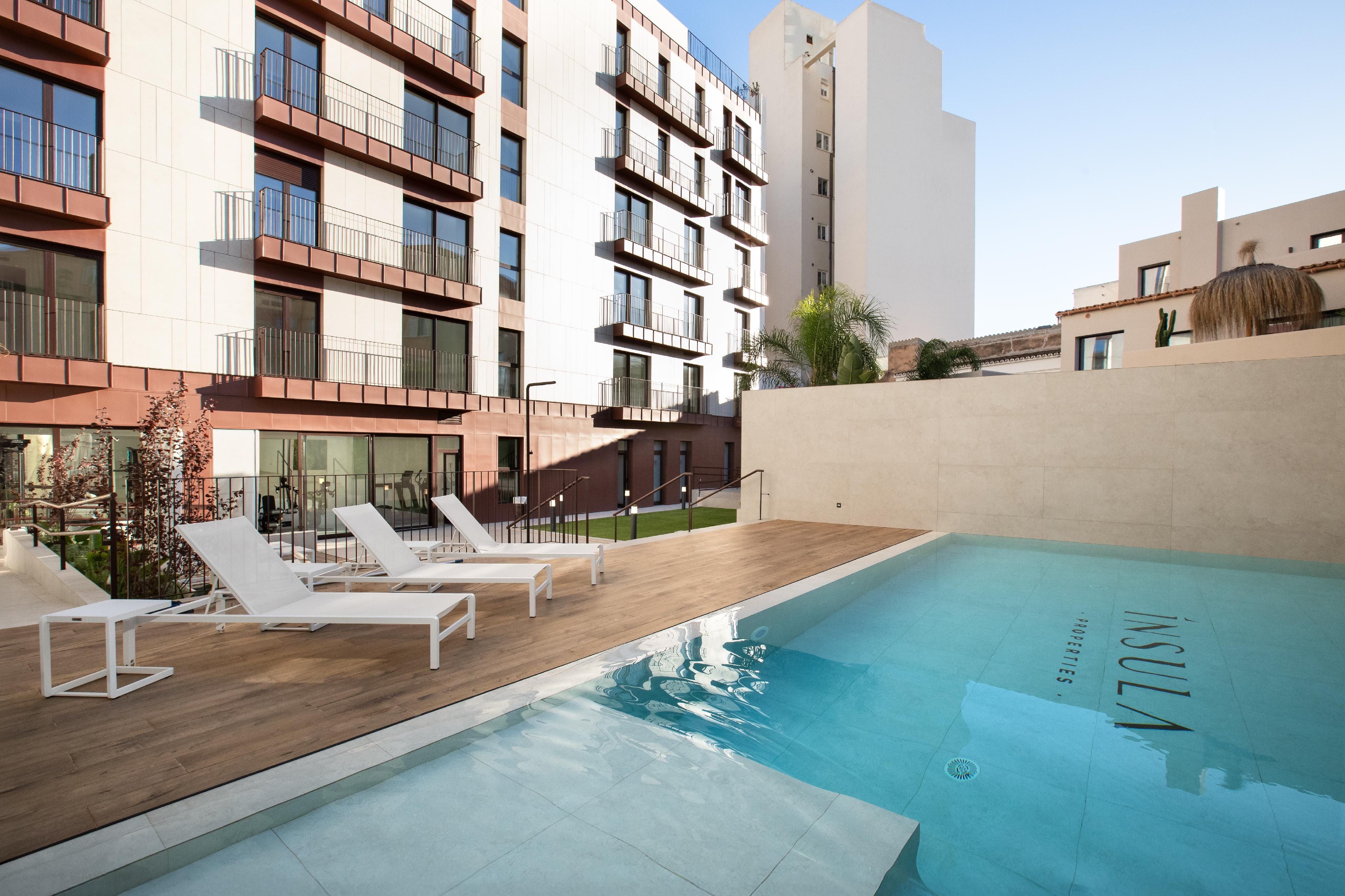 This modern new building complex with 25 high-quality apartments is located in Palma's trendy district of Santa Catalina. Not only is the well-known Santa Catalina Market nearby, but also numerous good restaurants, bars, cafes, and Palma's city center with its diverse shopping options. Additionally, within walking distance is the renowned Palma Sport and Tennis Club, offering a wide range of sports and wellness facilities. Despite its urban location, the complex provides residents with numerous amenities, making it an ideal living space for those who value comfort and leisure. It features a large underground parking garage with 40 spaces and 21 storage rooms, 2 elevators, a fitness room, and a beautiful outdoor area with a communal pool and sun terrace, where one can enjoy the Mallorcan sun until late evening.