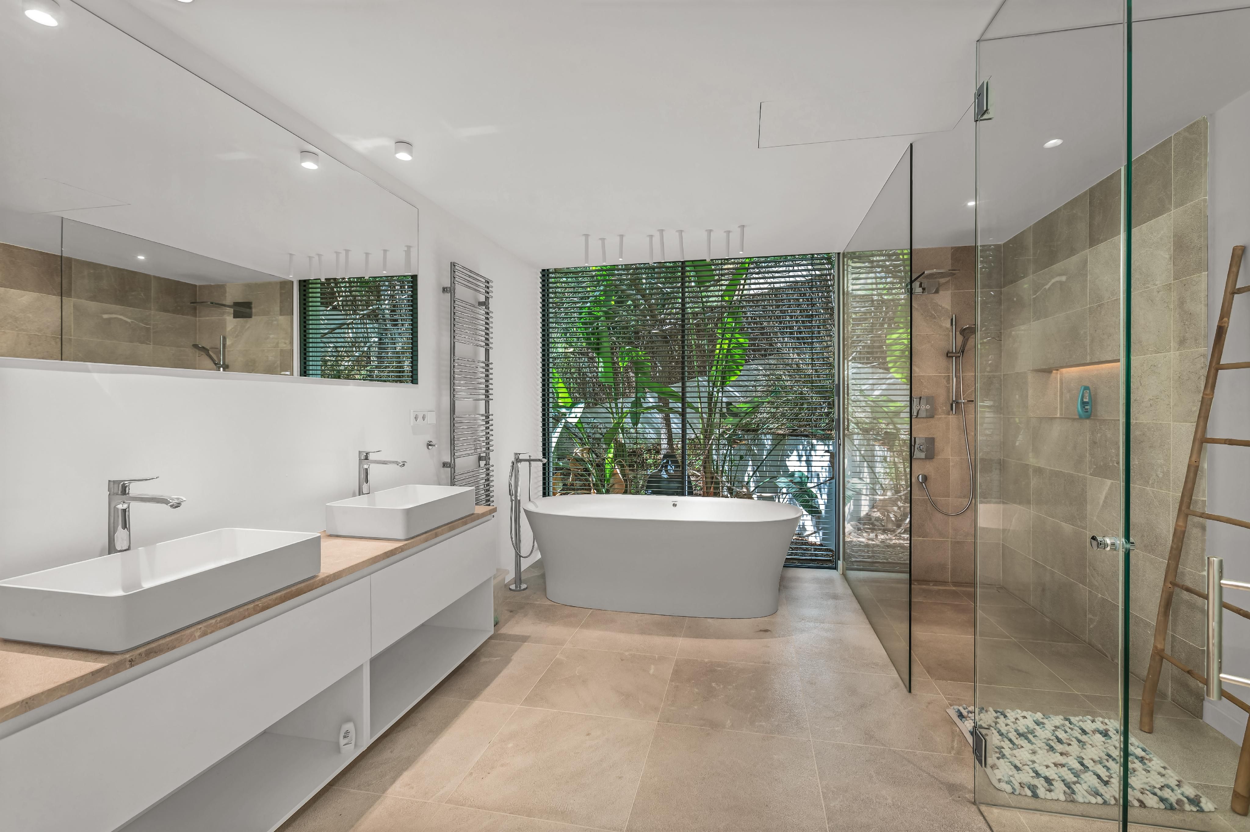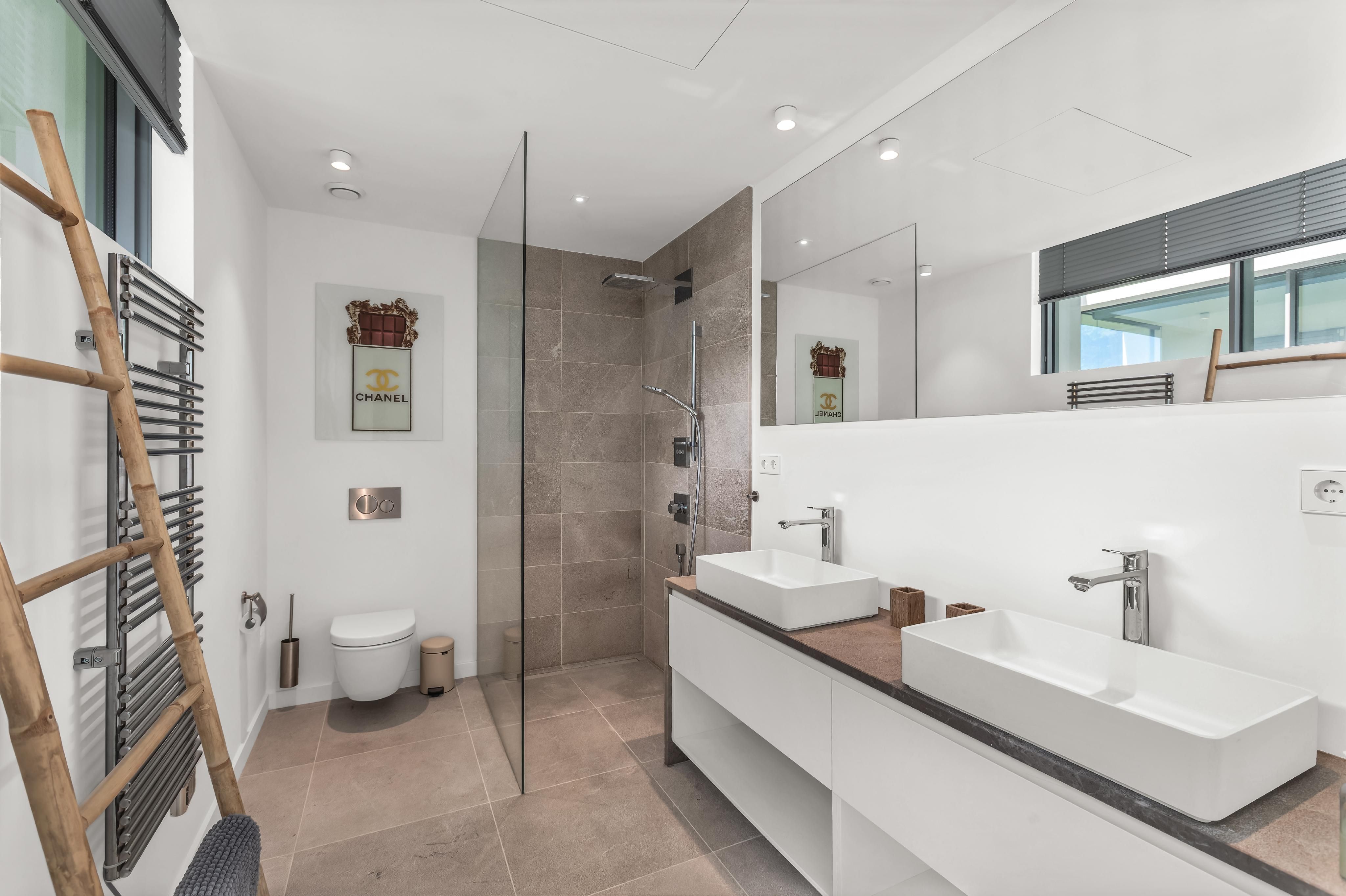 Type: House • Region: South West • Construction year: 2019 • Total surface: 670 ㎡ • Total rooms: 6 • Bedrooms: 5 • Bathrooms: 5 • Plot size: 1,157 ㎡ • Balconies: 1 • Parking: 8 • Terrace • Guest Apartment • Kitchen • Fireplace • Air Conditioning • Elevator • Furnished • Barrier-free access • Swimmingpool • Guest toilet • Senior oriented • Heating: Underfloor heating, Fully air-conditioned • Heating type: Heat Pump • Floor type: Stone