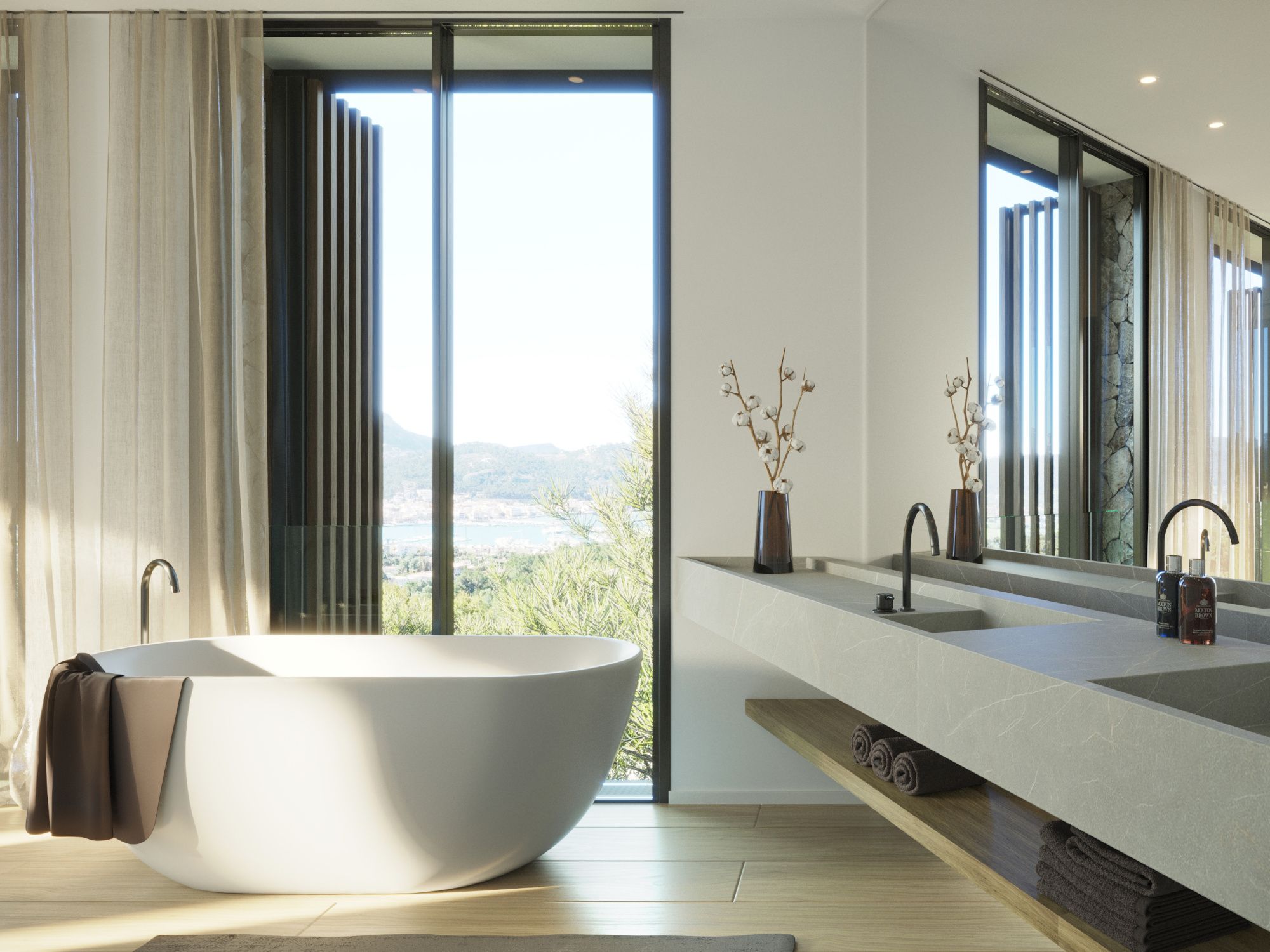 Above Port Andratx, with magnificent views of the idyllic harbour and the foothills of the Tramuntana mountains, this exclusive residential development is currently being built with 9 residences in a class of their own! Each one extends across an entire floor with an interior area of approximately 200 m² to 500 m² and, in addition to 1 to 4 bedrooms with en-suite bathrooms, features a gym with sauna, wine cellar, home theater, as well as other rooms that can serve different purposes. Furthermore, each unit stands out with spacious terraces, garden areas, and a private pool. The penthouse, called "The Villa", offers pure luxury on 500m² of interior space, divided over several floors connected by a private lift, plus a terrace, garden, roof terrace and 2 private pools. In addition to plenty of space, privacy and superb design, you can enjoy a magnificent view of the mountains, the harbour and the sea. Not only the penthouse but also the architecture of the entire project is unique! It combines distinguished organic shapes and a modern, futuristic design with the use of many natural materials that radiate warmth. The combination of concrete, wood & glass is absolutely outstanding. The large window fronts bring a lot of natural light into the living areas and create a perfect transition from inside to outside. All finishes, materials and furnishings have been carefully selected to meet the highest international standards. The exclusive equipment includes open kitchens with a cooking island and Gaggenau, Miele as well as Bora built-in appliances, Vola fittings, custom-made built-in wardrobes/walk-in wardrobes, underfloor heating, air conditioning, and much more. In addition, each unit comes with 2-3 garage parking spaces. This project is an architectural jewel that offers a distinctly high level of living comfort!
