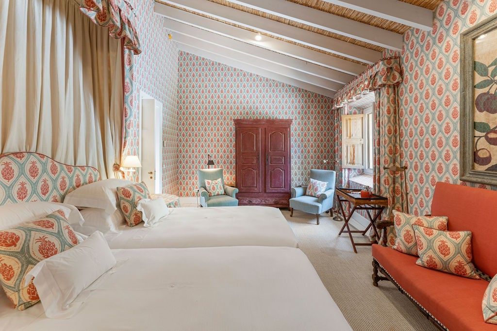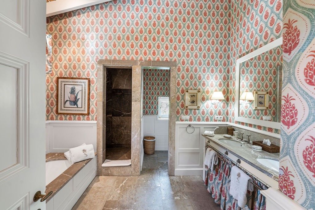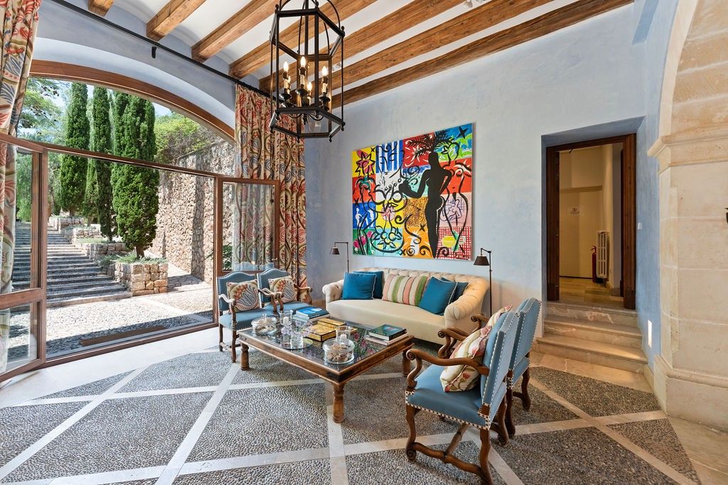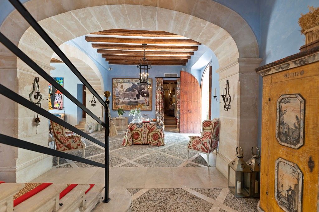 On the southern foothills of the mighty Tramuntana Mountains, set above the romantic village of Esporles, this Majorcan mansion takes elegance and grandeur to new heights. The impressive interior designed by Luis Bustamante, a Madrid-born design maestro, welcomes the island’s flora and fauna into the home, with vibrant motifs from nature adorning the walls and ceilings.