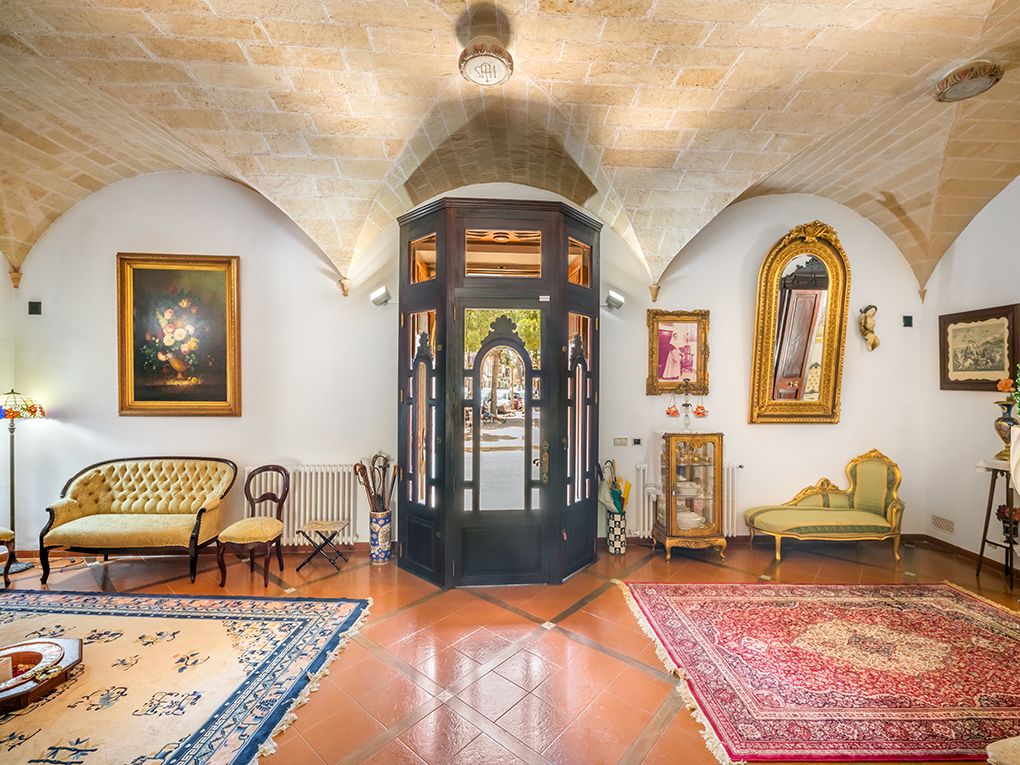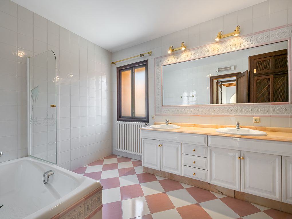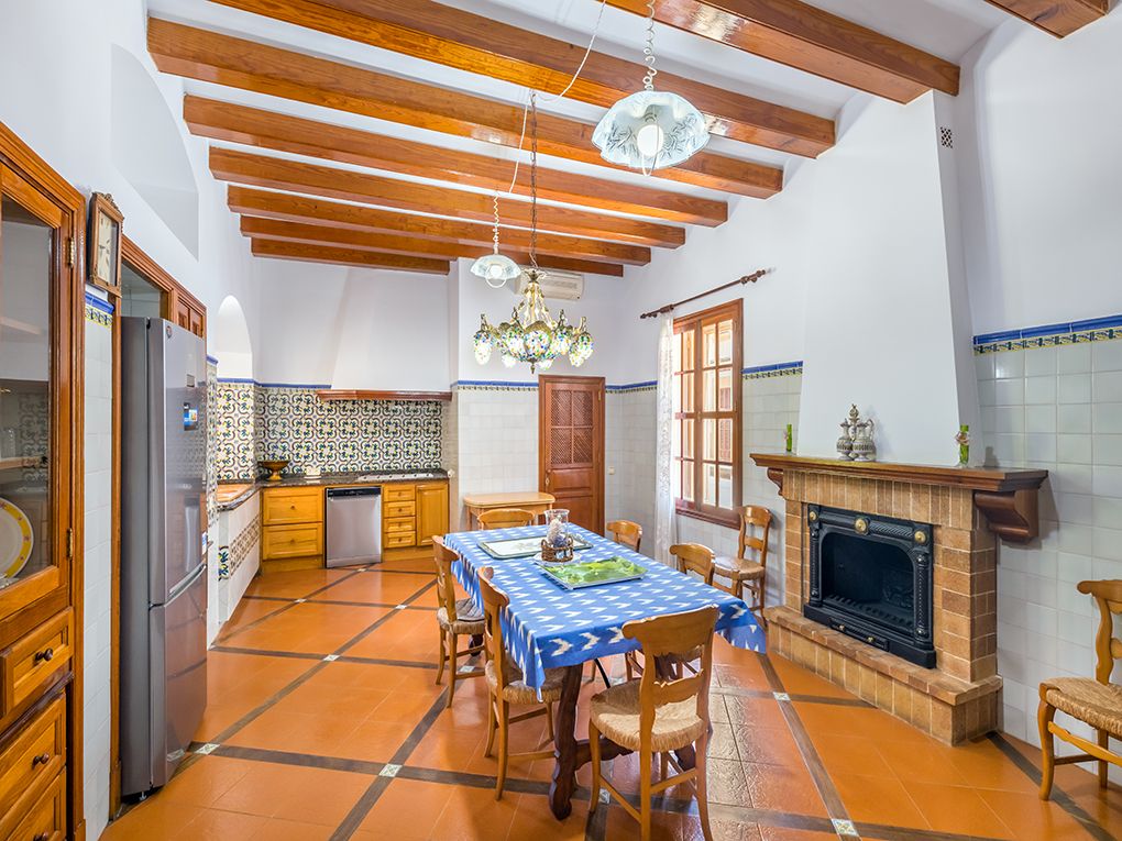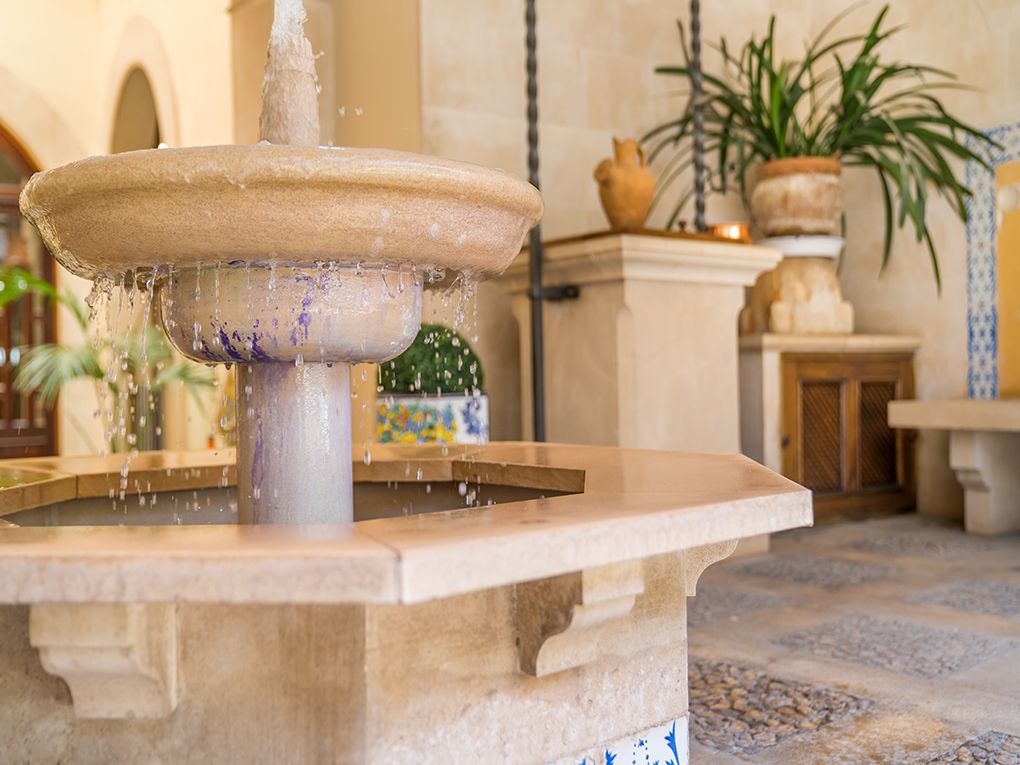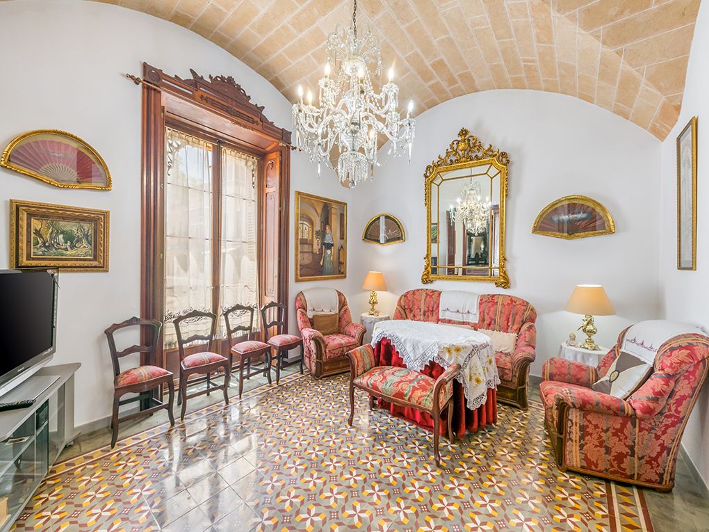 This unique town palace is located in the center of Campos, right on the market square. It extends over three stately floors with typically high ceilings and offers great potential. Upon entering, you will find a spacious entrance hall, from which you have access to the dining room, a kitchen, an office, and two bedrooms with en suite bathrooms. A small patio with water fountain and a large backyard with dining area completes this floor. On the second floor, a spacious reception room impresses with many antique style elements, the bedrooms with well-preserved Mallorcan tiles and the bathrooms recall the brilliance of bygone times. From almost all bedrooms you have access to a huge terrace overlooking the beautiful backyard. The unused second floor as well as the Mediterranean patio leave numerous possibilities for design. From the roof terrace you can enjoy a magnificent panoramic view over the rooftops of Campos. A garage and a large wine cellar complete this property. This sleeping jewel is waiting to be brought back to life with new glamour. In the center of Campos you will find various cafes, restaurants, boutiques and the weekly market. The special feature of this property is that this estate is sold with an adjoining building, which can still be renovated.