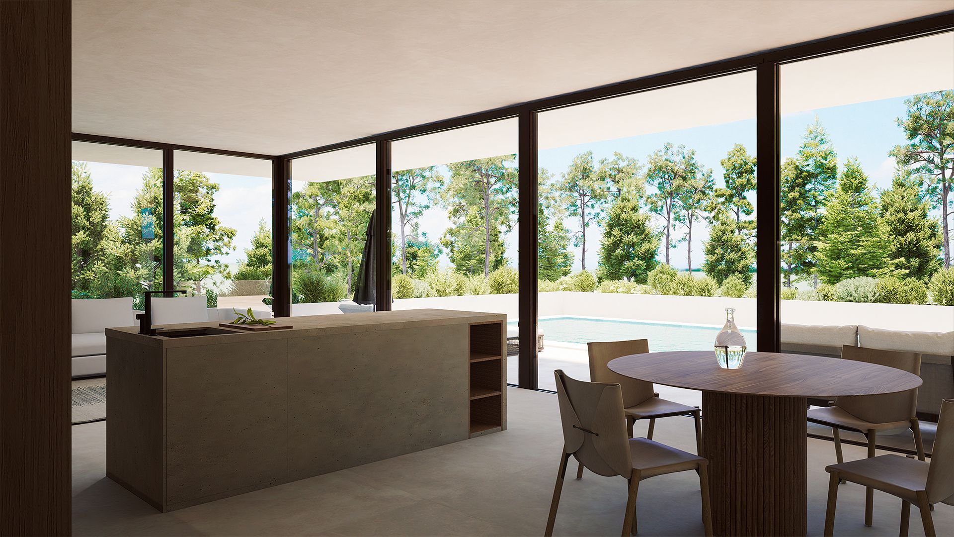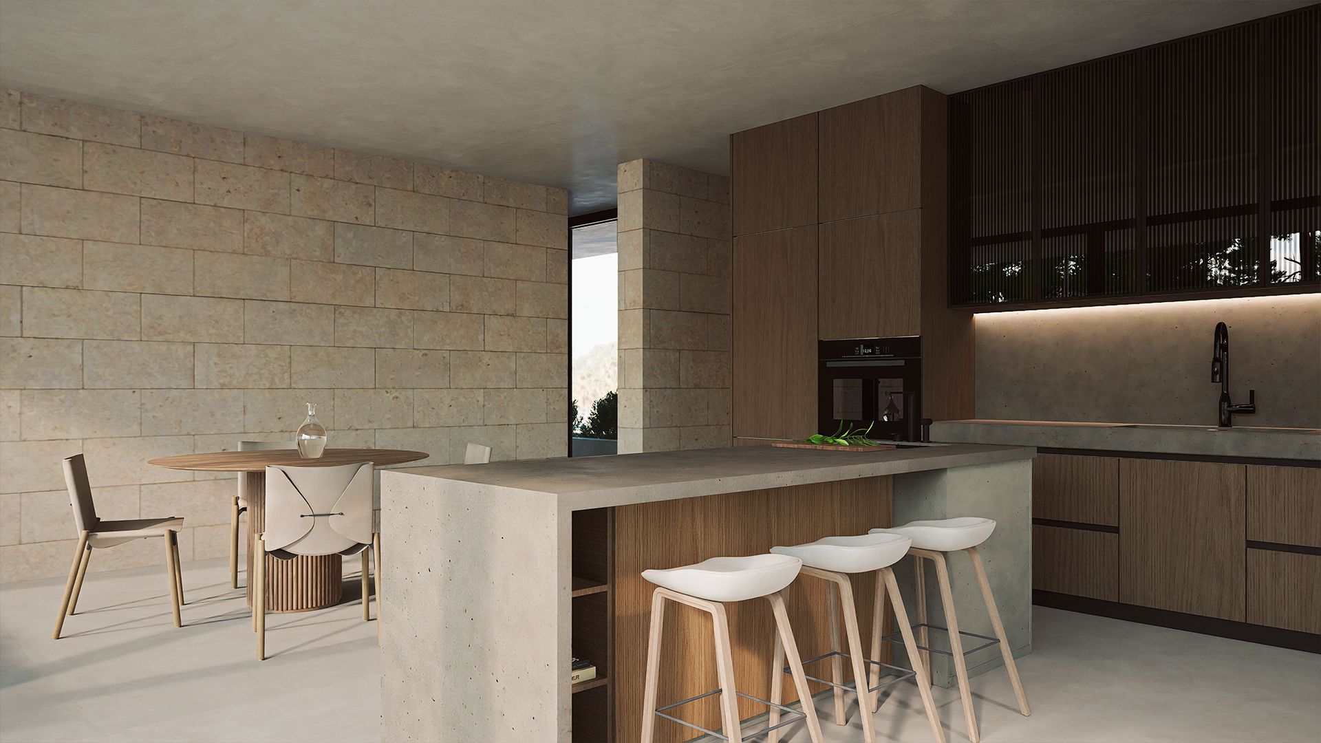 Designed in a minimalist Mediterranean style, these villas will blend comfort, privacy, and cutting-edge technology. High-quality materials such as lime paint, mares stone, polished concrete, acacia wood, and steel cladding will be used to create a natural, timeless atmosphere.