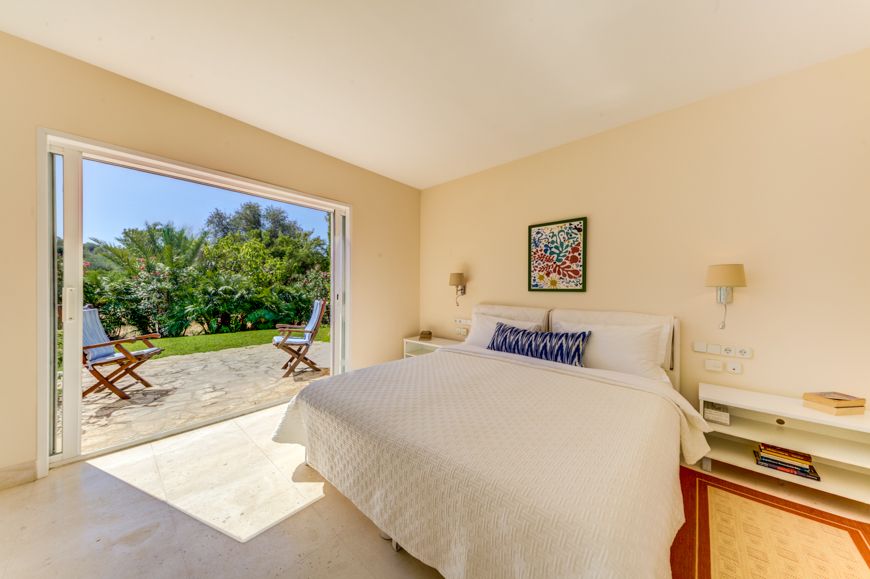 An extraordinary villa nestled at the foot of Bon Aire, just minutes from the stunning beaches of Sant Joan and Sant Pere. Surrounded by lush nature, it offers complete privacy and serenity in an idyllic Mediterranean setting.