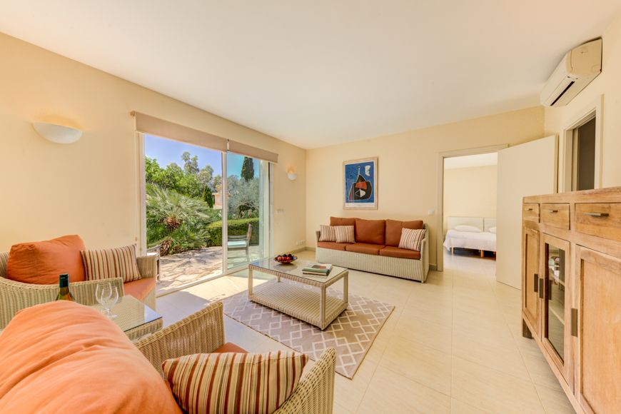 Independent Guest House: The charming guest house offers two bedrooms (each with shower), a kitchenette, and a living room with sofa bed leading to a private terrace. An additional en-suite bedroom with separate access ensures extra privacy.